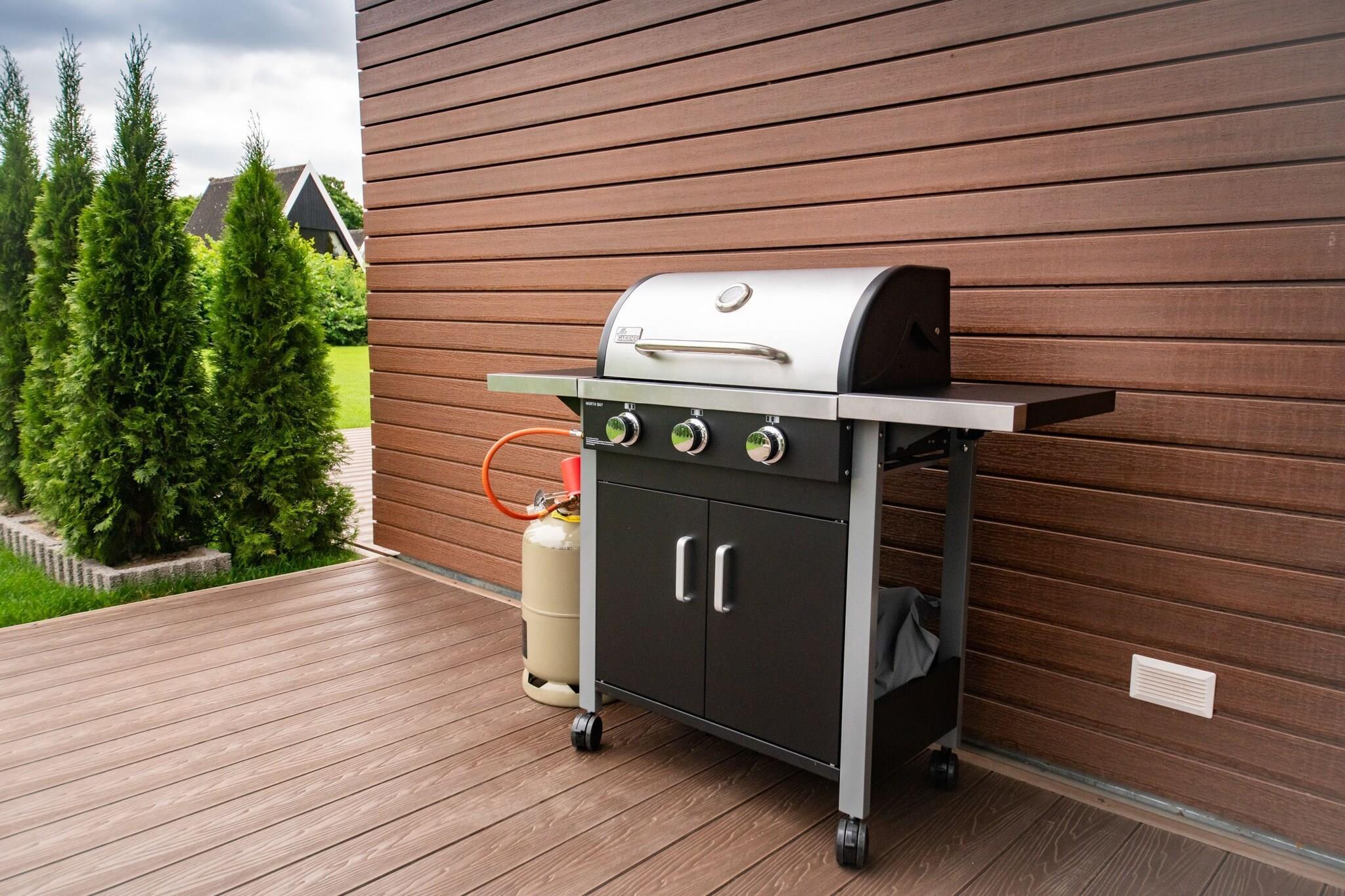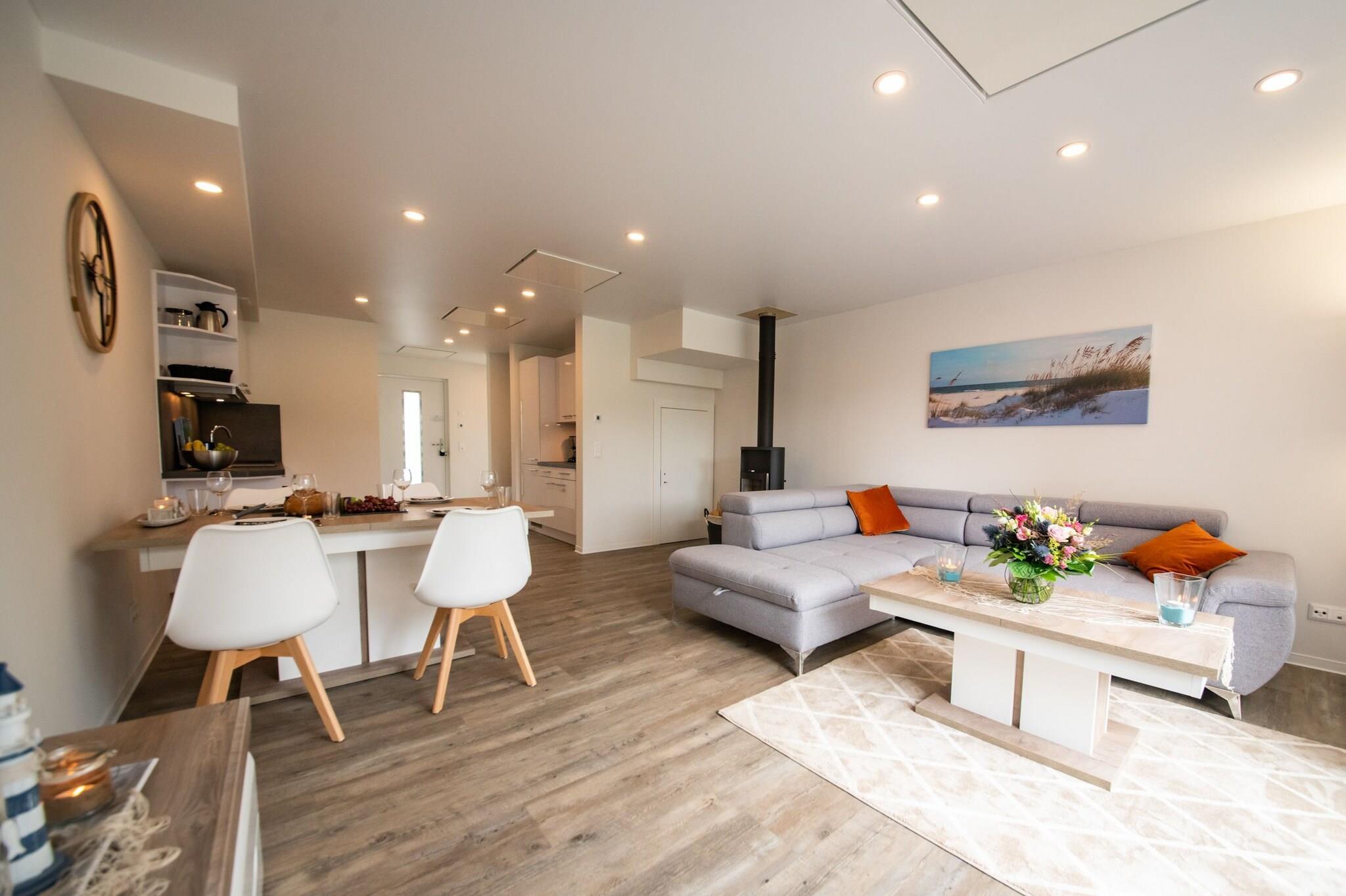 Stueetage: (åbent køkken(kogeplade(Komfur med fire kogeplader, glaskeramisk), elkedel, brødrister, kaffemaskine, ovn, mikrobølgeovn, opvaskemaskine , køleskab, Blender), stue / spisestue(dobbeltsovesofa, Fjernsyn, spisebord, pejs, stereoanlæg), toilet(håndvask, toilet)) På 1. etage: (soveværelse(dobbeltseng(160 x 200 cm), Fjernsyn), badeværelse(Spabad, bruser, sauna, håndvask, toilet, vaskemaskine, føntørrer)) Indendørs legerum, varme, terrasse, havemøbler, parkering, fitnessapparater(deles med andre gæster), Vaskeripakke inkl.