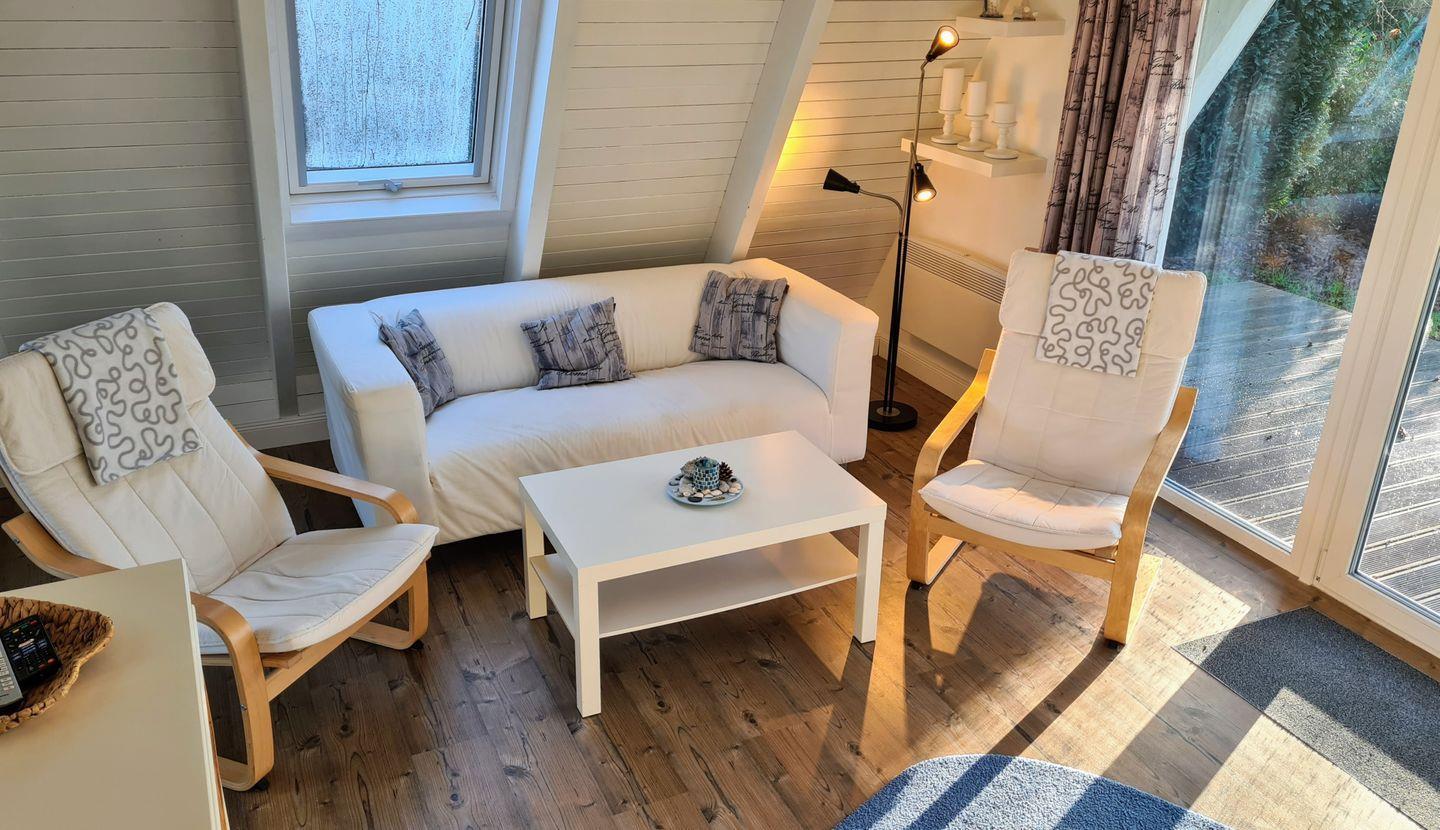 Vom Wohnbereich aus führt eine Treppe in die obere Etage. Hier erwartet Sie ein kleiner Bereich, um sich mit einem guten Buch zurückzuziehen und die beiden Schlafzimmer, eines mit Doppelbett und eines mit zwei Einzelbetten. Ein Bettchen für unsere kleinen Gäste bis 2,5 Jahre kann bei Bedarf aufgestellt werden.