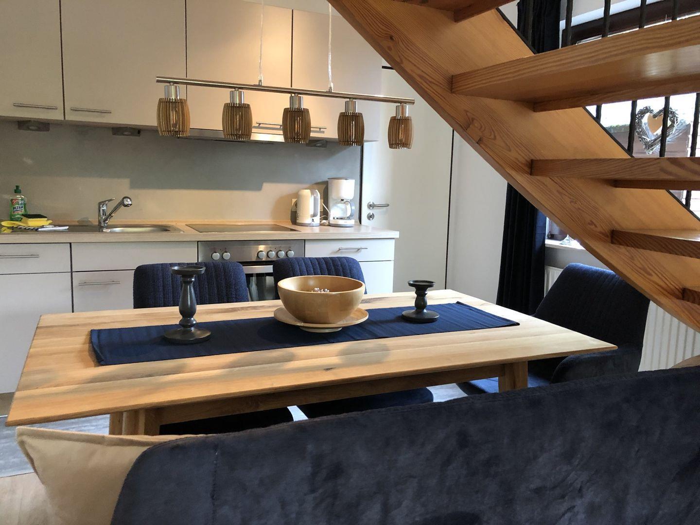 Die voll ausgestattete Küche lädt dazu ein, kulinarische Köstlichkeiten zu zaubern. Hier finden Sie alles, was Sie brauchen: vom Kühlschrank über den Backofen und die Spülmaschine bis hin zur Kaffeemaschine. Kochbegeisterte werden die umfangreiche Ausstattung mit Geschirr, Besteck und Küchenutensilien zu schätzen wissen.