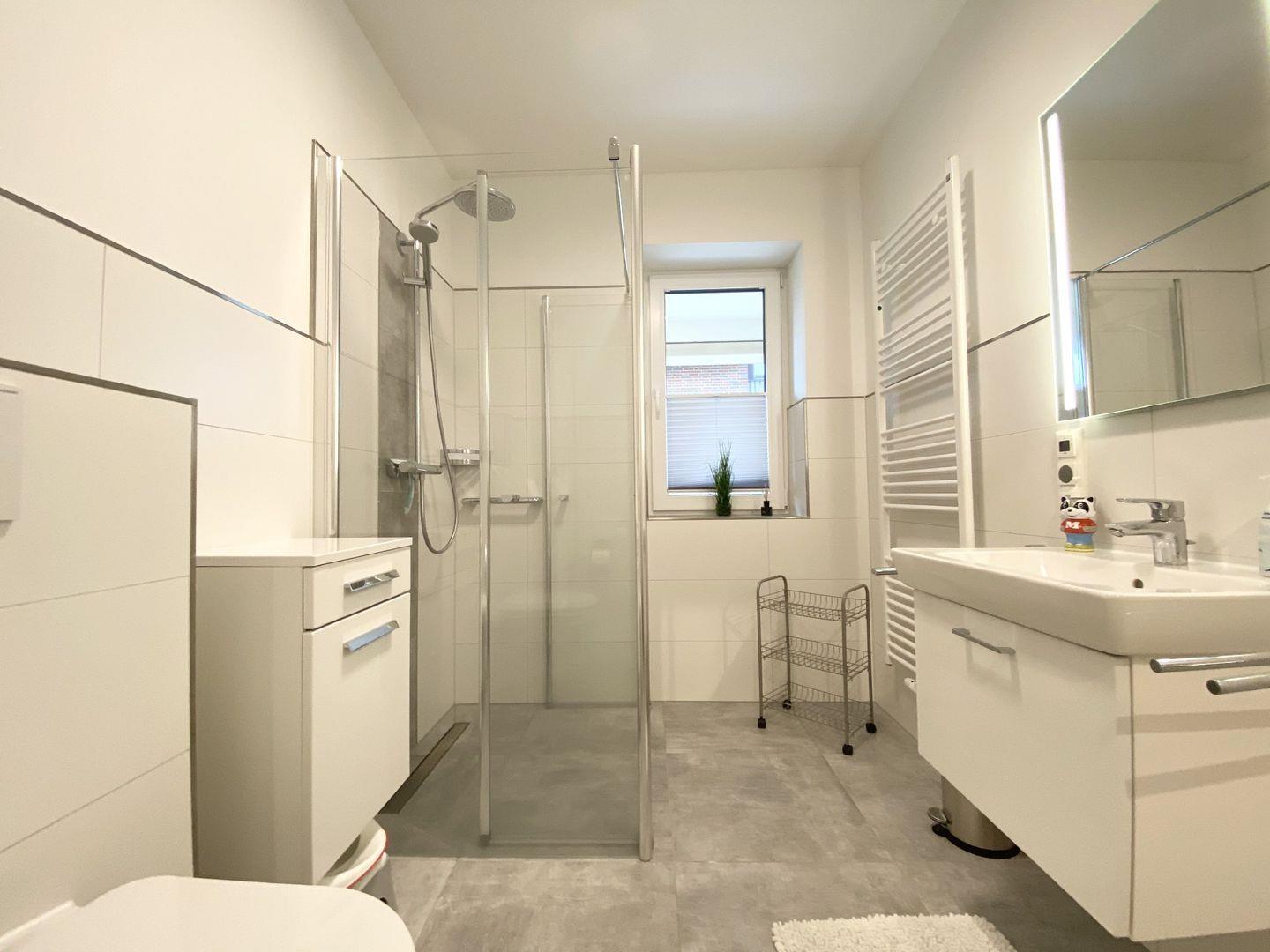 Die Wohnung verfügt über zwei gemütliche Schlafzimmer, die zum Entspannen einladen. Hier können Sie nach einem aufregenden Tag an der Nordsee neue Energie tanken. Ein modernes Badezimmer mit Dusche sorgt für den nötigen Komfort. Dies ist der ideale Ort, um sich nach einem Tag am Strand oder beim Wandern frisch zu machen.