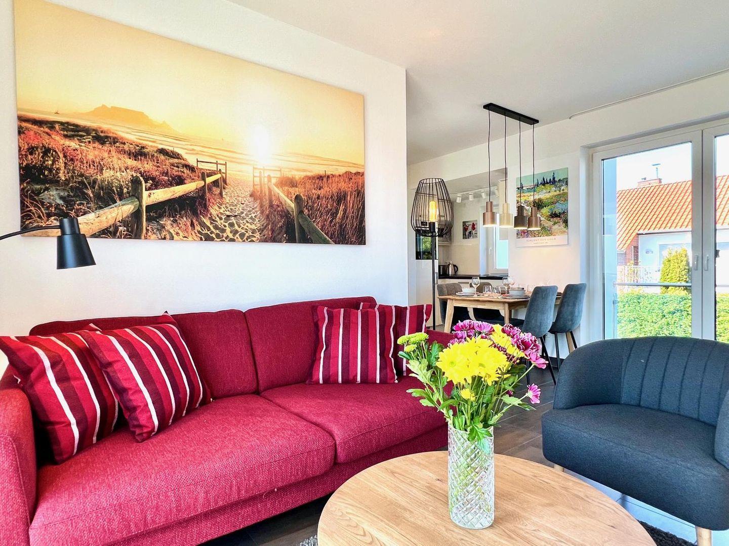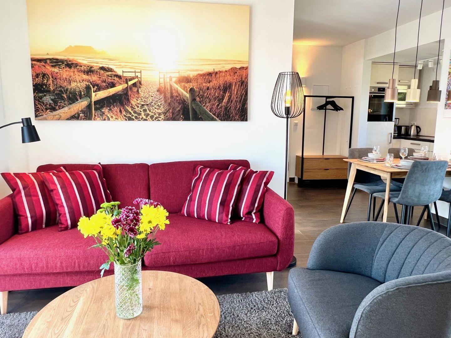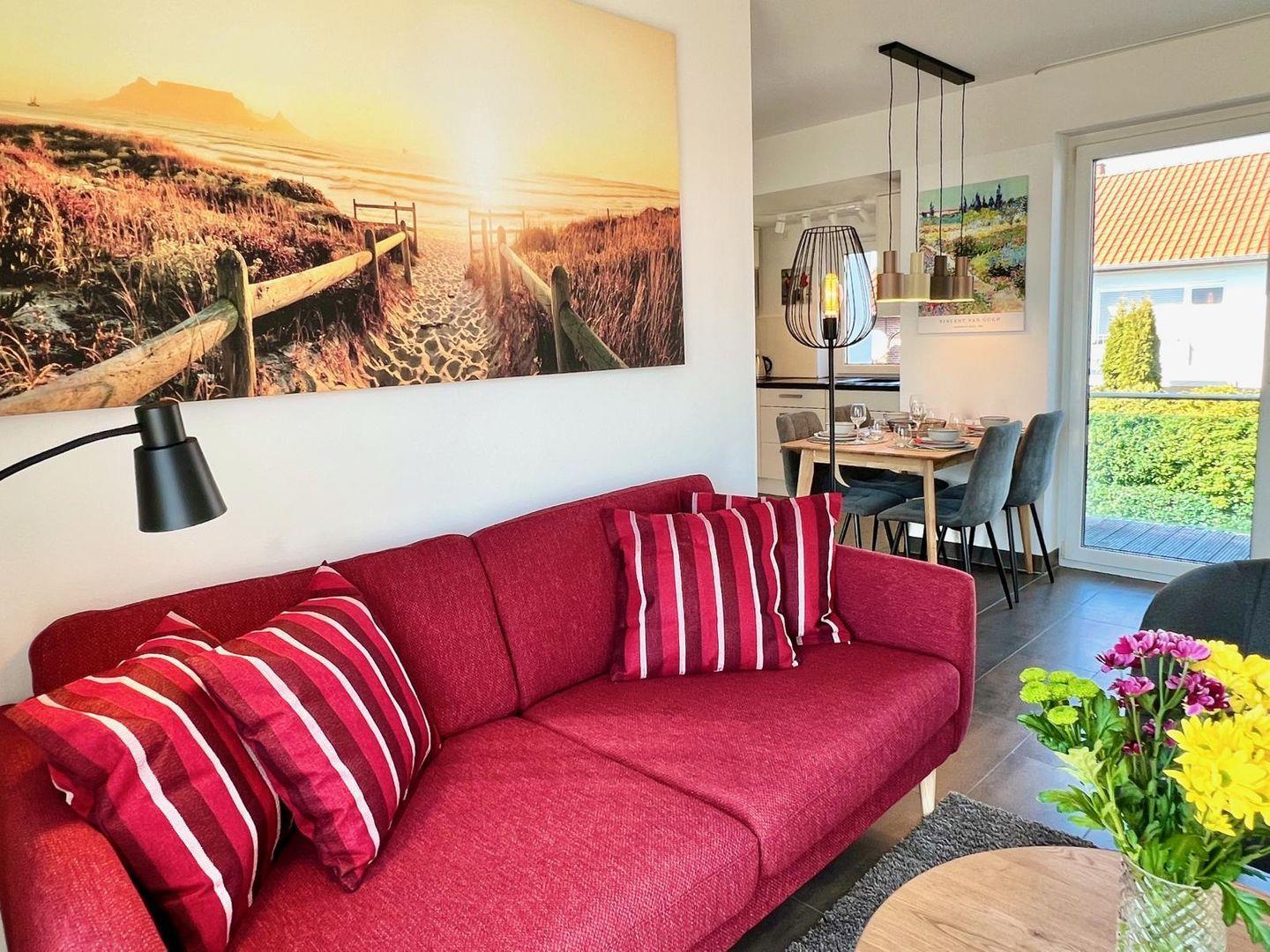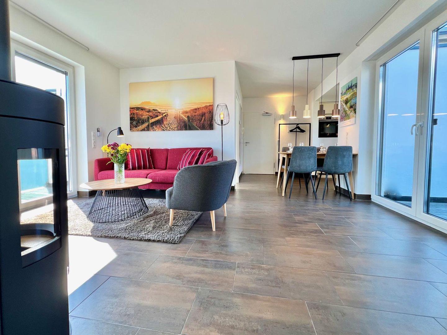 Herzlich Willkommen im Apartment "friesland living". Diese Unterkunft bietet Platz für bis zu 4 Personen und verfügt über 2 Schlafzimmer, einem modernen Badezimmer mit Sauna und einer offene Küche zum Wohnzimmer, die mit hochwertigen Geräten wie einem Cerankochfeld und einer Spülmaschine ausgestattet ist. Der Balkon lädt zum Entspannen ein und der Kamin rundet die Gemütlichkeit in der kühleren Jahreszeit ab. Die Nähe zum Strand macht dieses Apartment ideal für Familien und aktive Urlauber.
