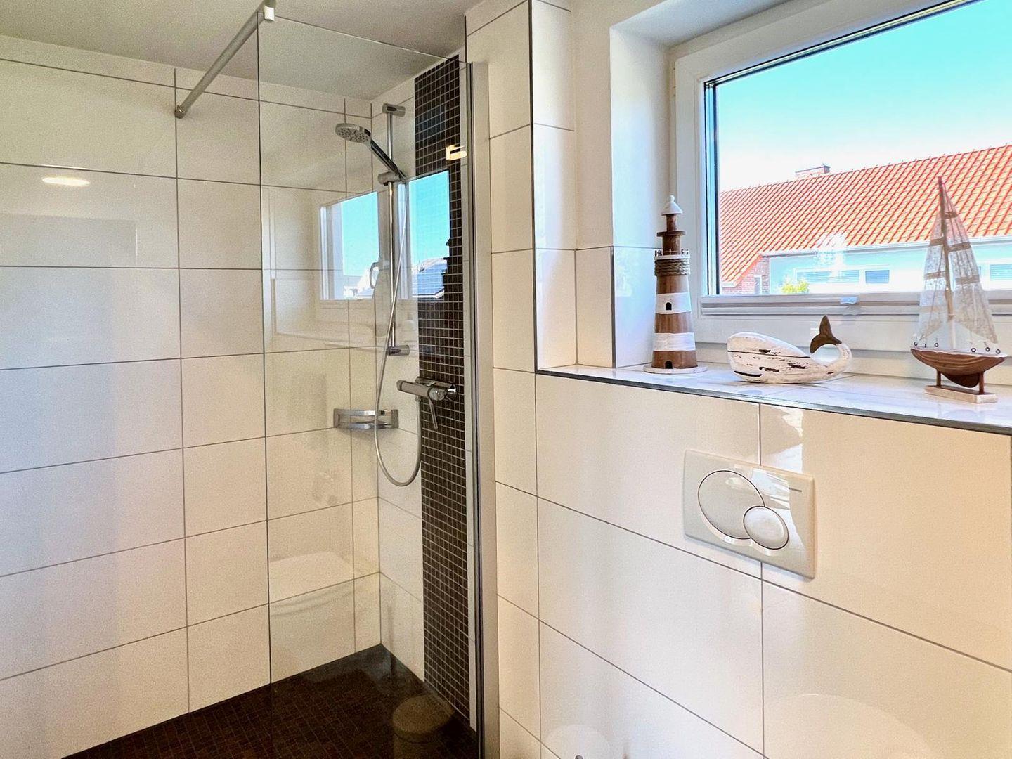 Das Apartment verfügt über ein modernes Badezimmer mit Sauna, bodengleicher Dusche, Waschbecken und WC. Ein Haartrockner und Bettwäsche sind für Sie bereitgestellt. Zusätzlich sorgt die Fußbodenheizung in der gesamten Wohnung für ein angenehmes Wohnklima, auch an kühleren Tagen.