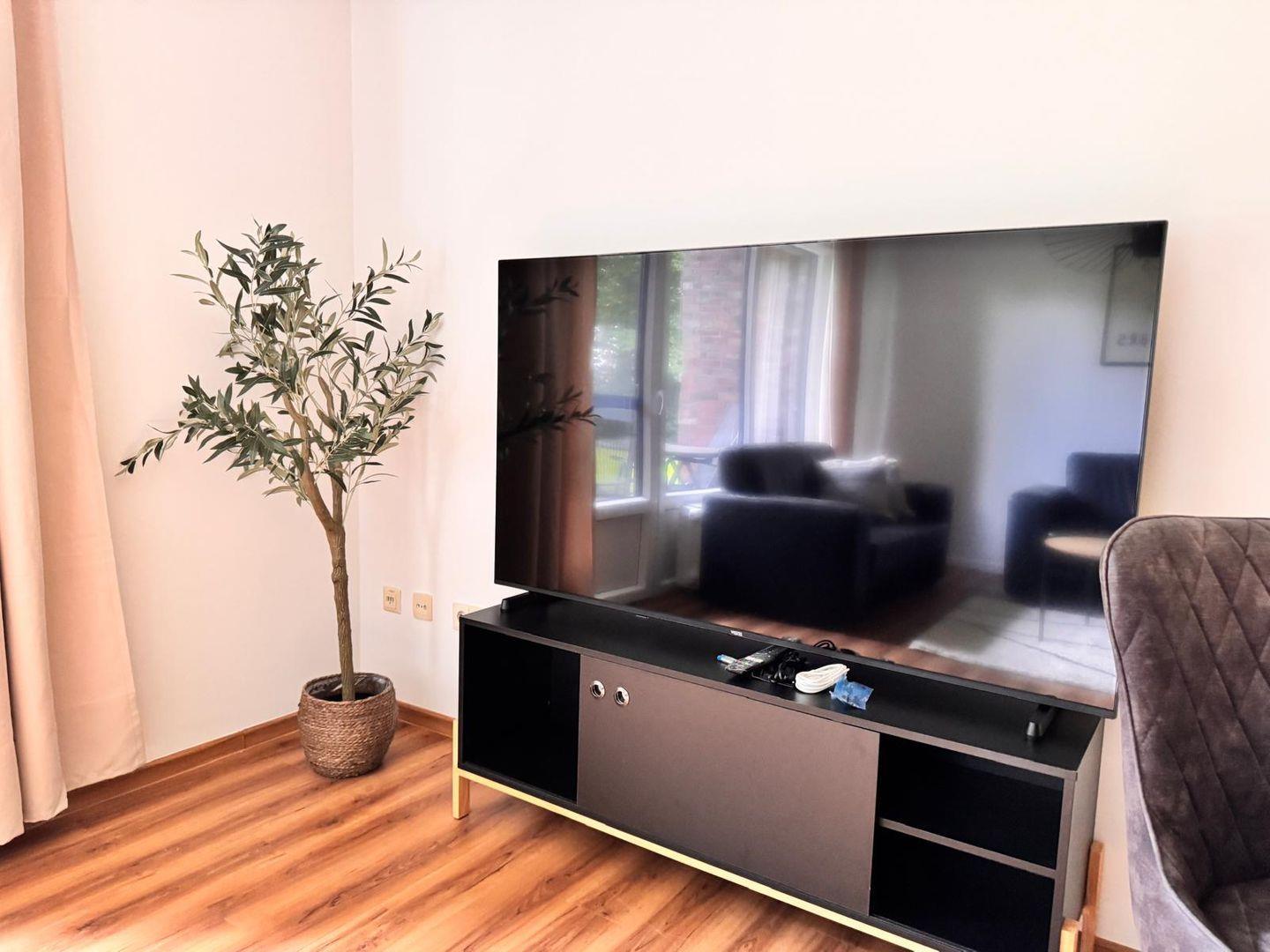 Der wohnliche Bereich verfügt über zwei bequeme Sofa aus Leder, einen TV und kostenlosen WLAN-Zugang, sodass gemütliche Abende und Unterhaltung garantiert sind. Der Laminatboden im Wohnraum sorgt nicht nur für ein gepflegtes Ambiente, sondern erleichtert auch die Reinigung, insbesondere wenn Sie mit Kind oder Haustier reisen.