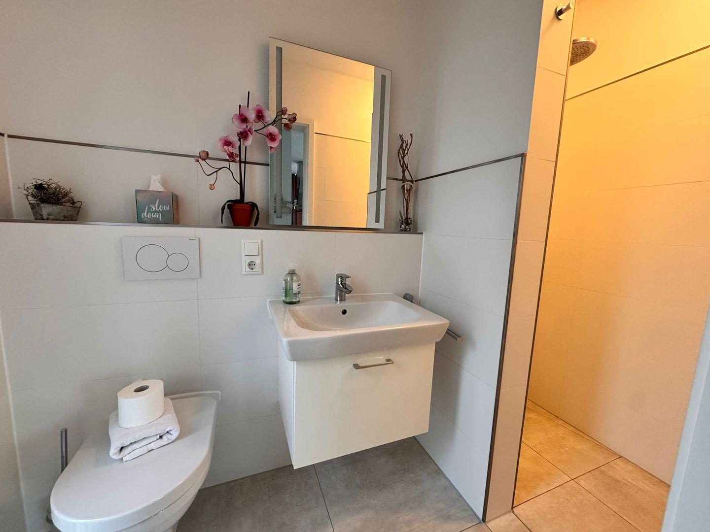 Die offene Küche ist modern und vollständig ausgestattet, damit Sie sich auch im Urlaub kulinarisch entfalten können. Zur Ausstattung zählen ein Ceranherd, Backofen, Kühlschrank mit Gefrierfach, Mikrowelle, Spülmaschine, Kaffeemaschine, Senseo-Espressomaschine, Wasserkocher, Toaster sowie alle benötigten Küchenutensilien, Geschirr und Besteck. Für einen angenehmen Aufenthalt sorgen auch eine Waschmaschine und ein Trockner zur Eigennutzung, außerdem stehen Ihnen Bügeleisen, Bügelbrett und Wäscheständer zur Verfügung.