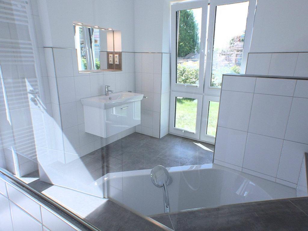 Bad und Sanitär: zwei Bäder mit jeweils bodentiefen, barrierefreien Regenduschen mit Handbrause, Waschtisch mit Spiegel, Föhn, Kosmetikspiegel, WC, Duschhocker, Handtuchheizung sowie einer großen Eckbadewanne (im Badezimmer Ost)