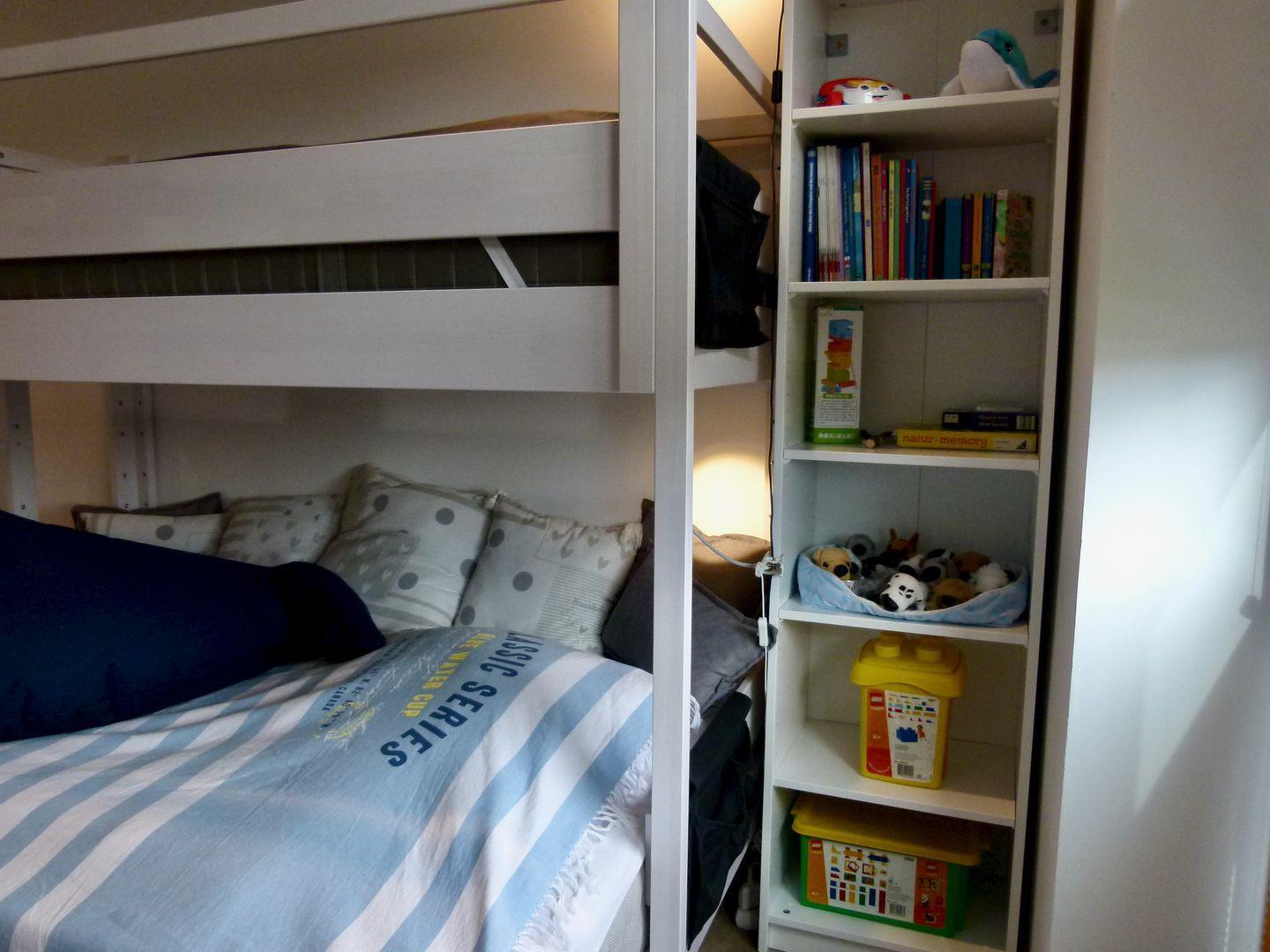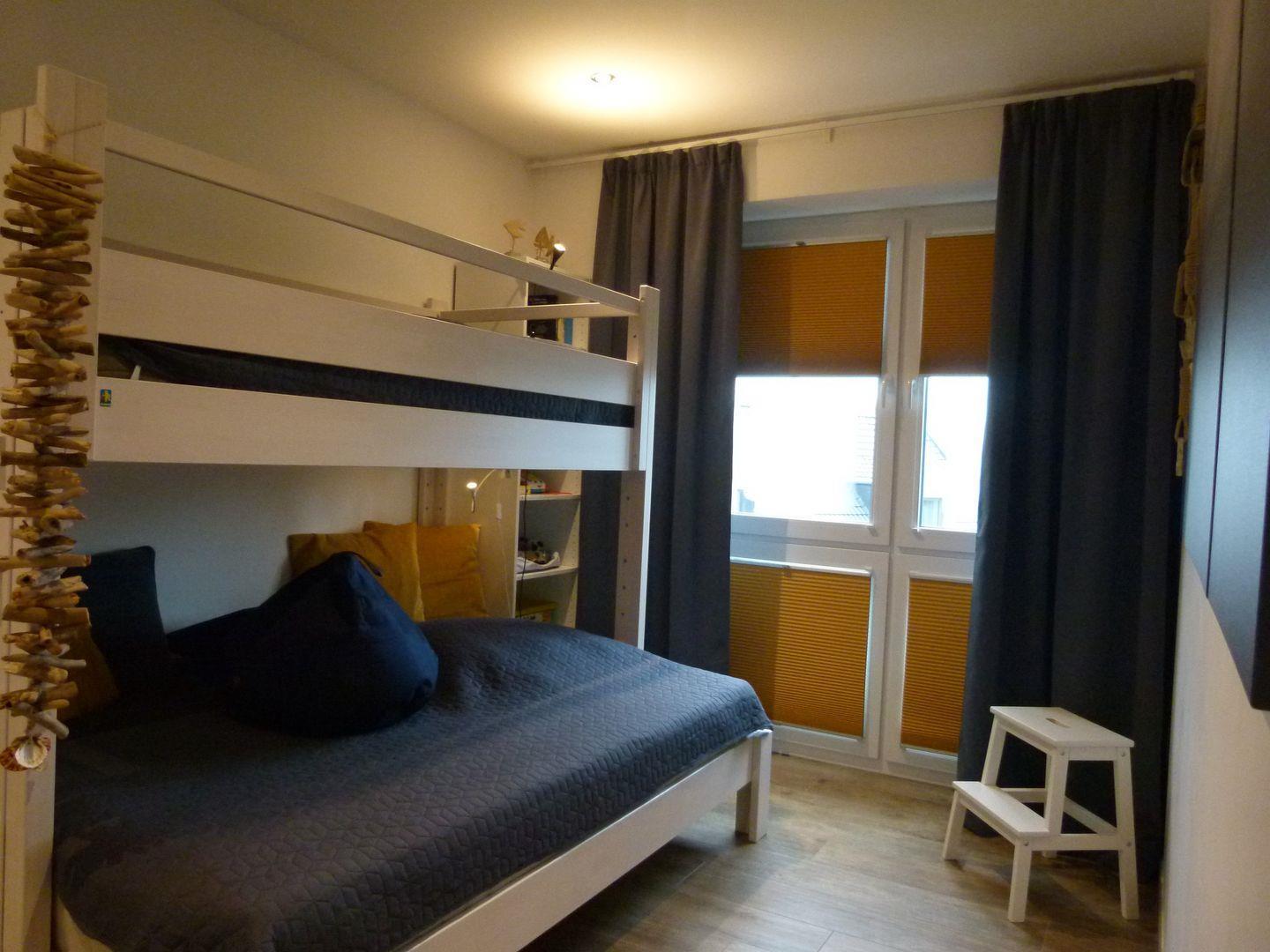Schlafzimmer 3: 1 Stockbett (Maße: 90 x 200 cm, 120 x 200 cm), Kleiderschrank, Spielsachen