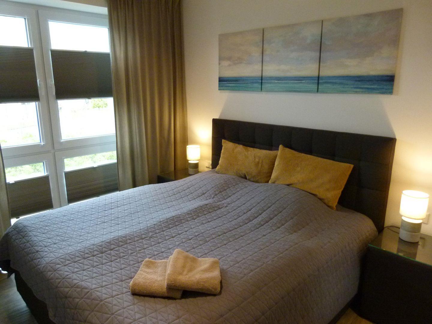 Schlafzimmer 1: Doppel-Boxspringbett (Maße: 180 x 200 cm),Nachttische, Kleiderschrank