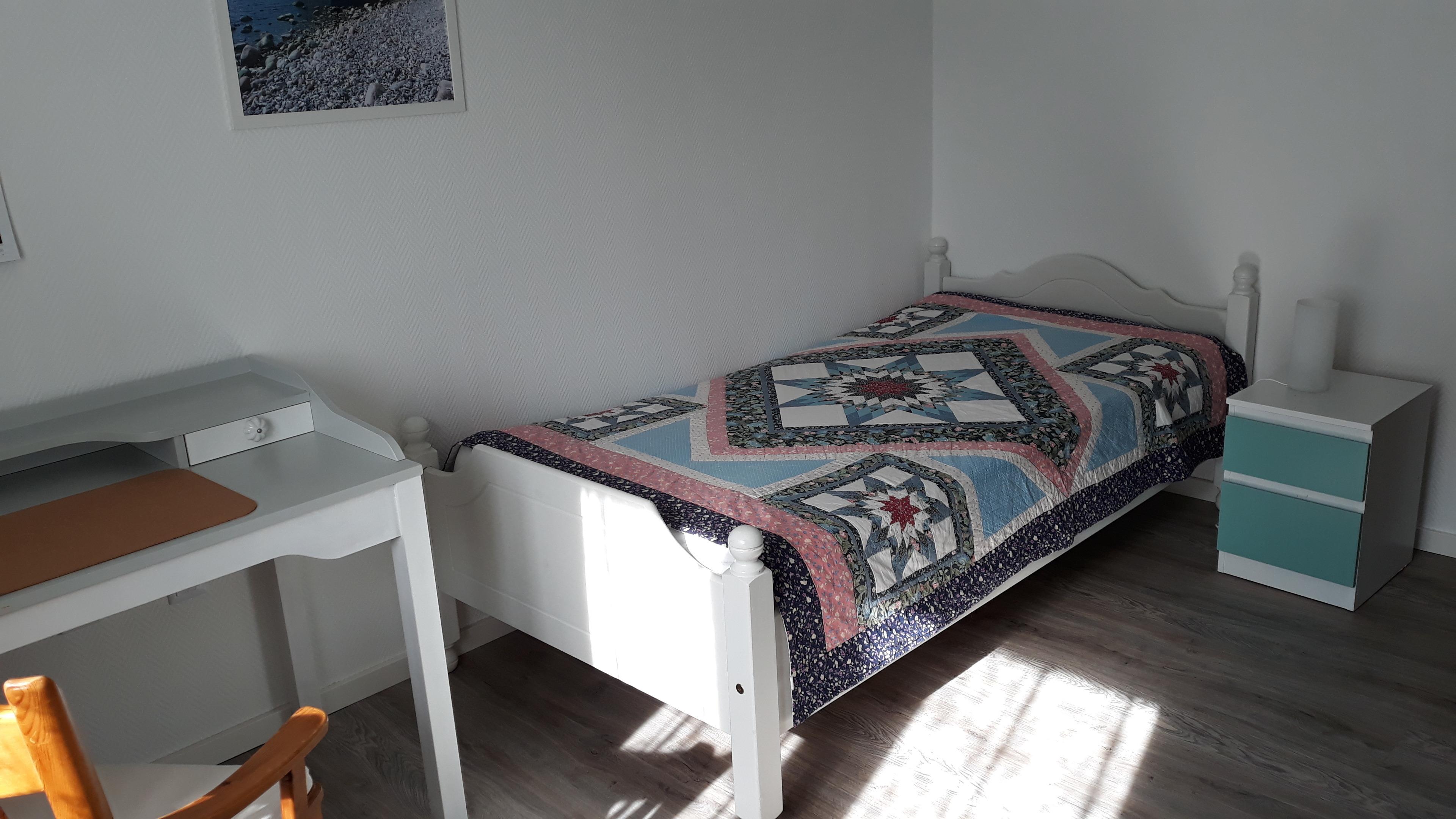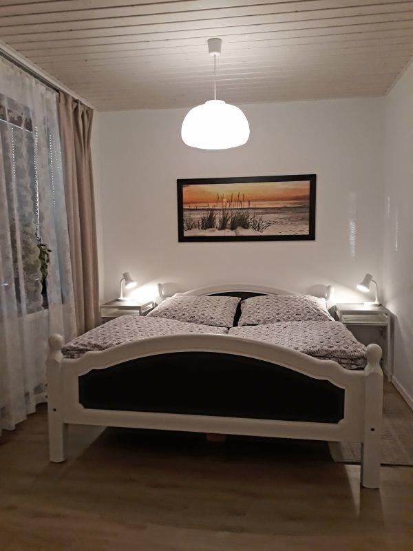 Die Ferienwohnung ist modern und liebevoll eingerichtet, außerdem ruhig gelegen und ebenerdig. Sie hat einen separaten Eingang. Die Küche ist gut ausgestattet. Es gibt zwei Schlafräume. In einem steht ein Doppelbett, im anderen ein Einzelbett sowie Schreibtisch. Das Wohnzimmer ist lichtdurchflutet, mit einem Esstisch und einer gemütlichen Sofaecke ausgestattet. Über das Wohnzimmer gelangen Sie auf die Südterrasse. Auf dieser befinden sich u.a. Sitzgelegenheiten und Markise. Im Bad gibt es eine Badewanne, Dusche sowie angenehme Fußbodenheizung und Handtuchheizung. Es gibt in der Ferienwohnung eine Waschmaschine. Im Carport finden Sie eine Wallbox, die Sie zum Aufladen Ihres E-Autos verwenden dürfen.