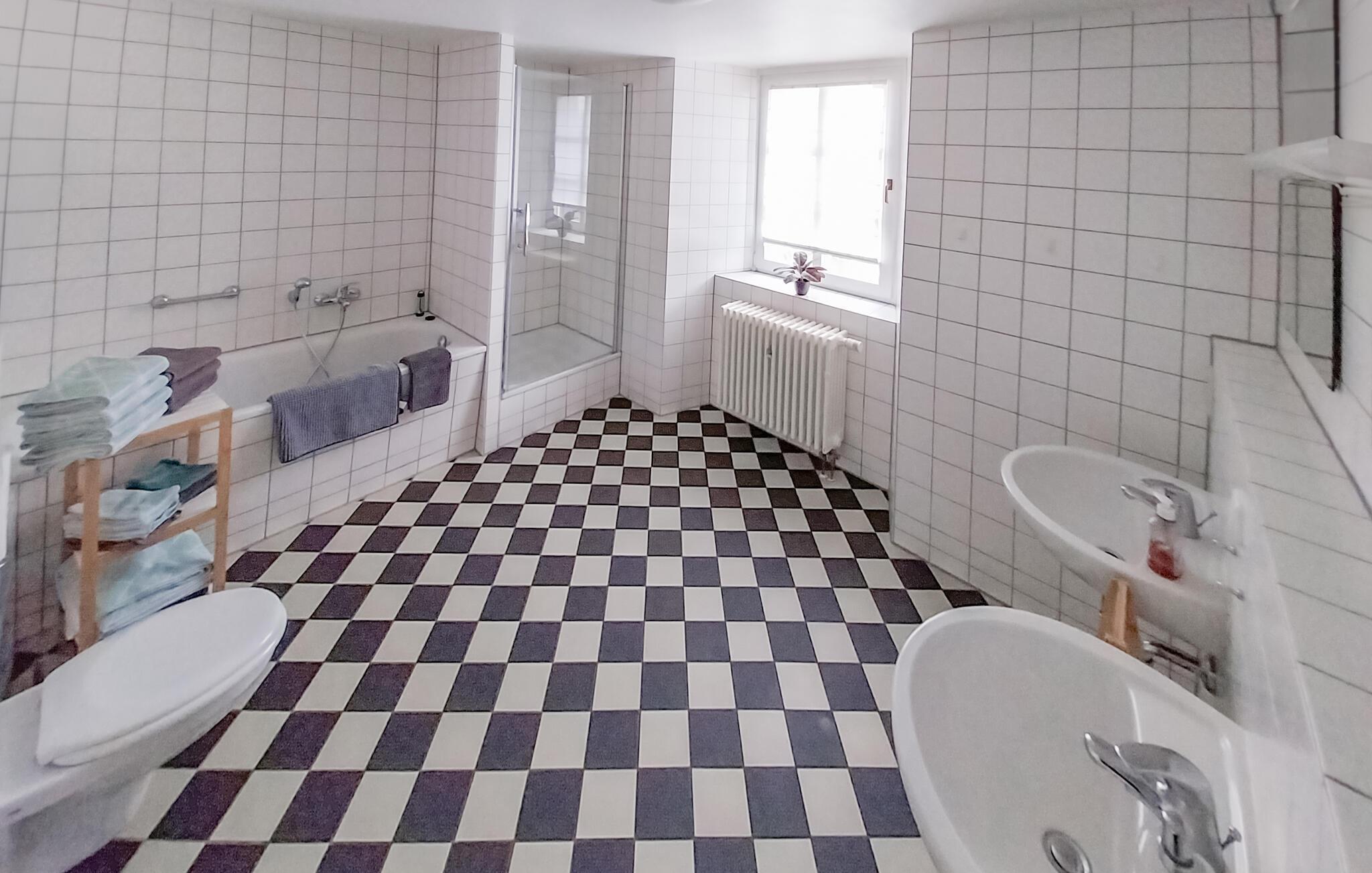 Badeværelse (nr. 1) - WC. Varmt og koldt vand. Bruser og badekar