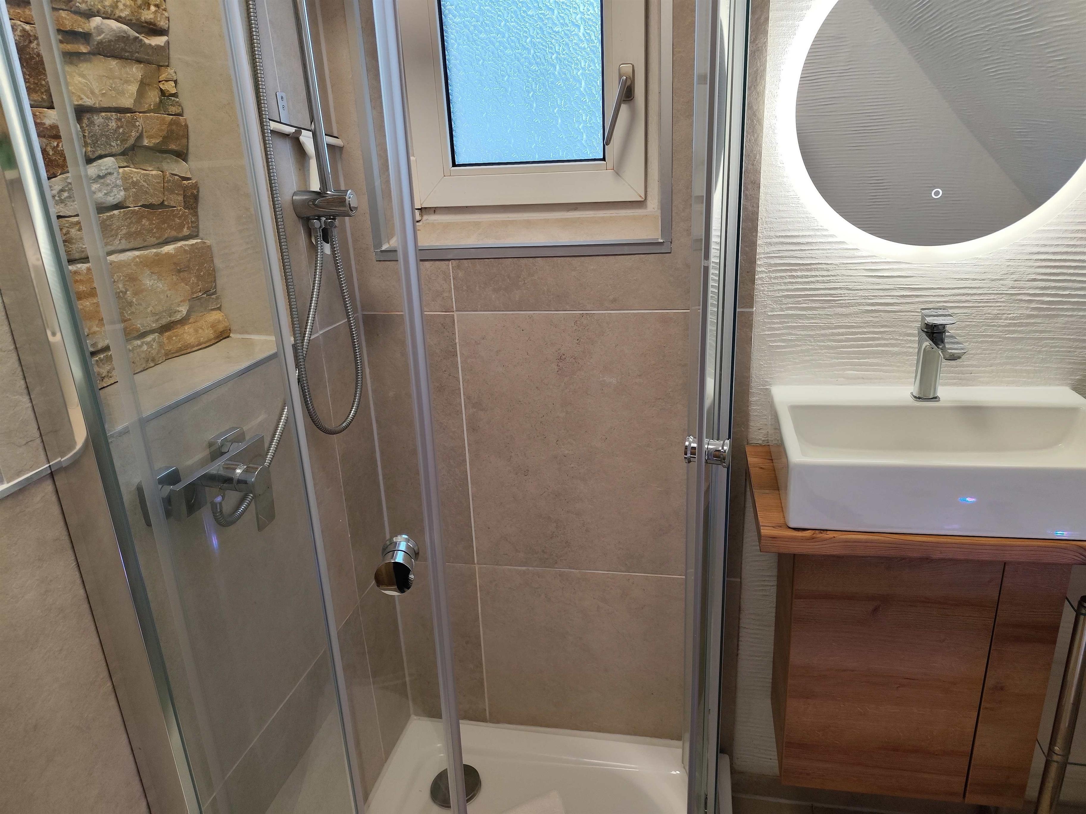 Am Außenbereich des Hauses ist liebevoll und aufwendig ein Zierkiesbereich angelegt worden. Mit Springbrunnen und einem kleinen Wasserfall. Das Haus und die Außenalagen sind am Abend und nachts sehr attraktiv in einem Farbenspiel mit LED Strahlern angestrahlt.