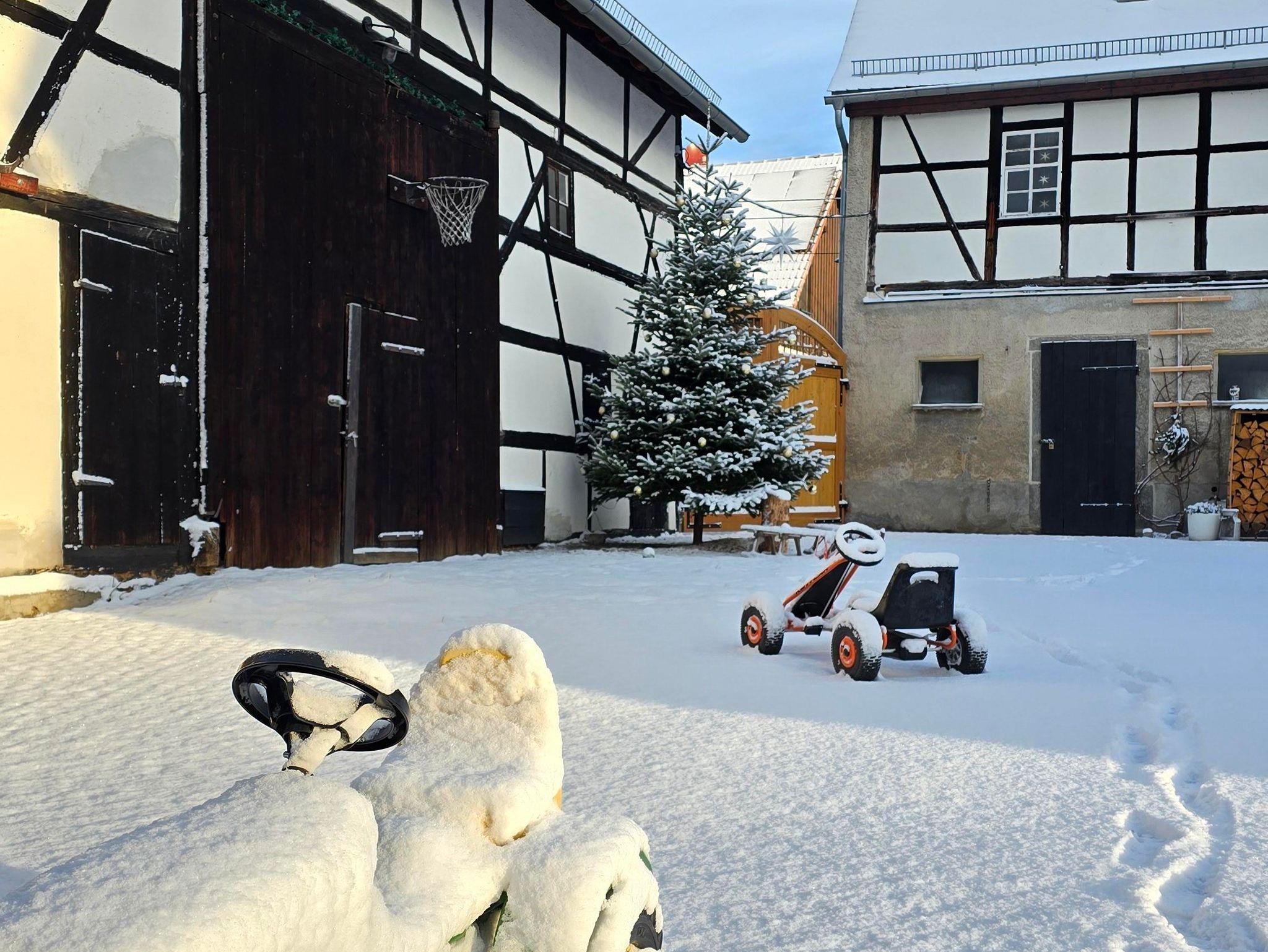 Unser Denkmalhof aus dem Jahre 1872 liegt in schöner erholsamer und ruhiger Lage inmitten von Wiesen und Feldern.