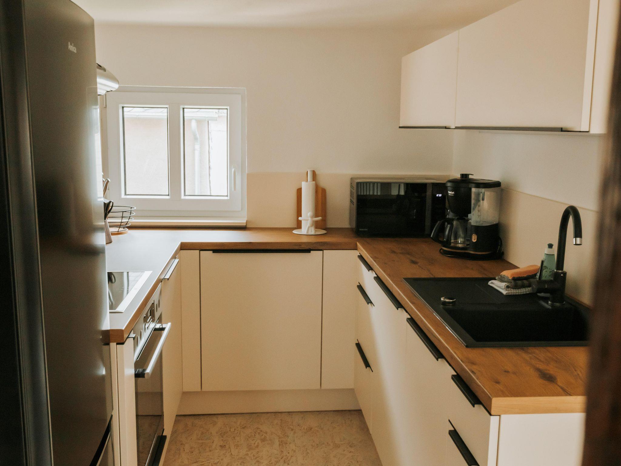 Die Küche ist hochwertig ausgestattet und lässt keine Wünsche offen: ausreichend Geschirr, ein Kühlschrank mit Tiefkühlkombination, Geschirrspüler, Ofen und Mikrowelle, Toaster, Sandwichmaker, Eierkocher und sehr gute Messer stehen Ihnen zur Verfügung.