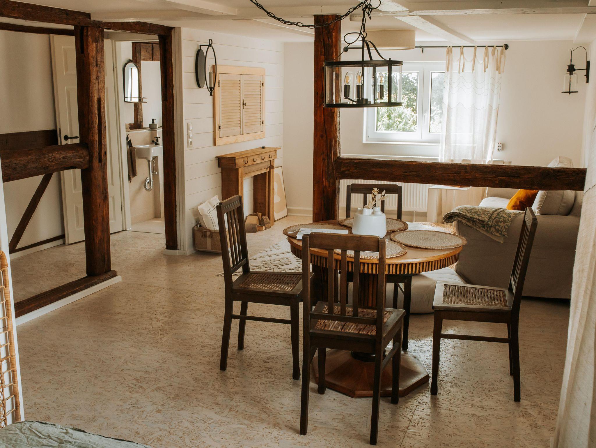 Unsere Ferienwohnung, die im Juli dieses Jahres fertiggestellt wurde, kombiniert moderne Annehmlichkeiten mit charmanten alten Fachwerkelementen. Sie bietet Platz für bis zu 4 Personen und ein zusätzliches Babybett.