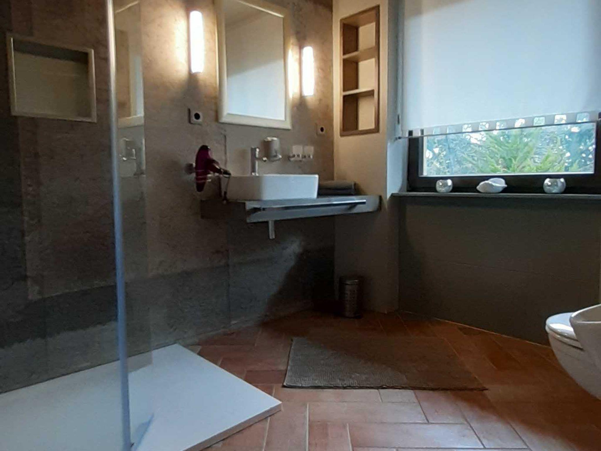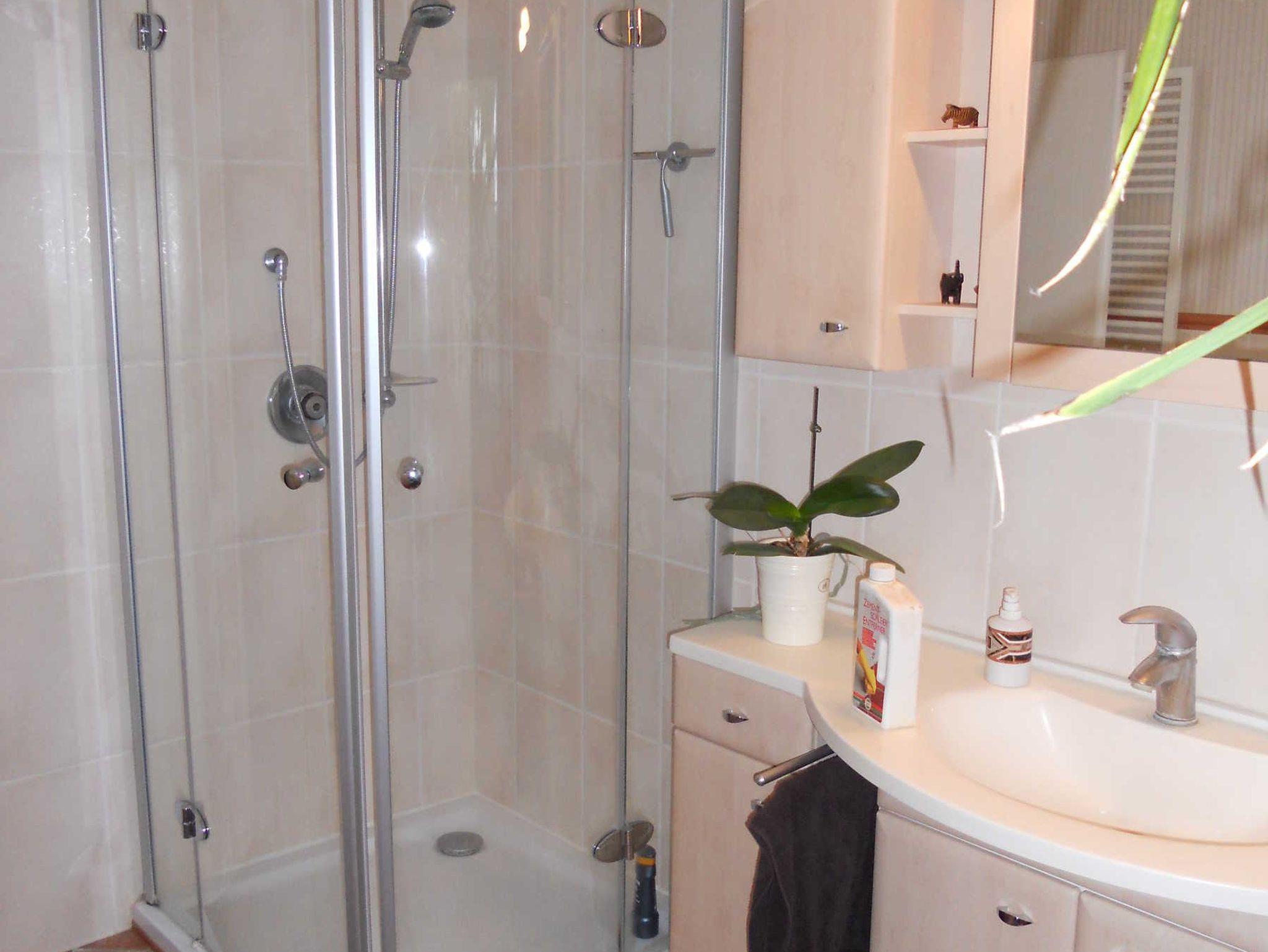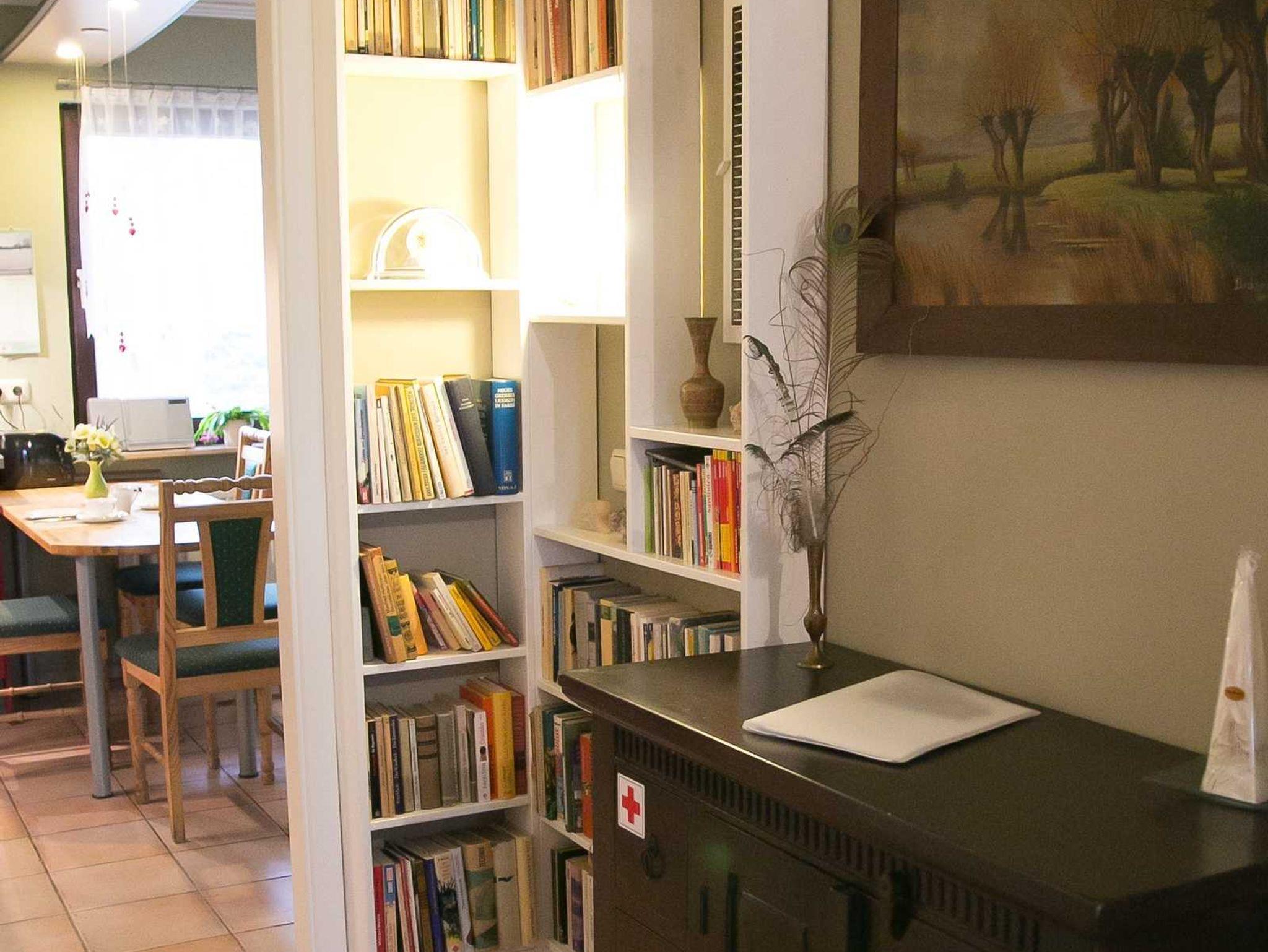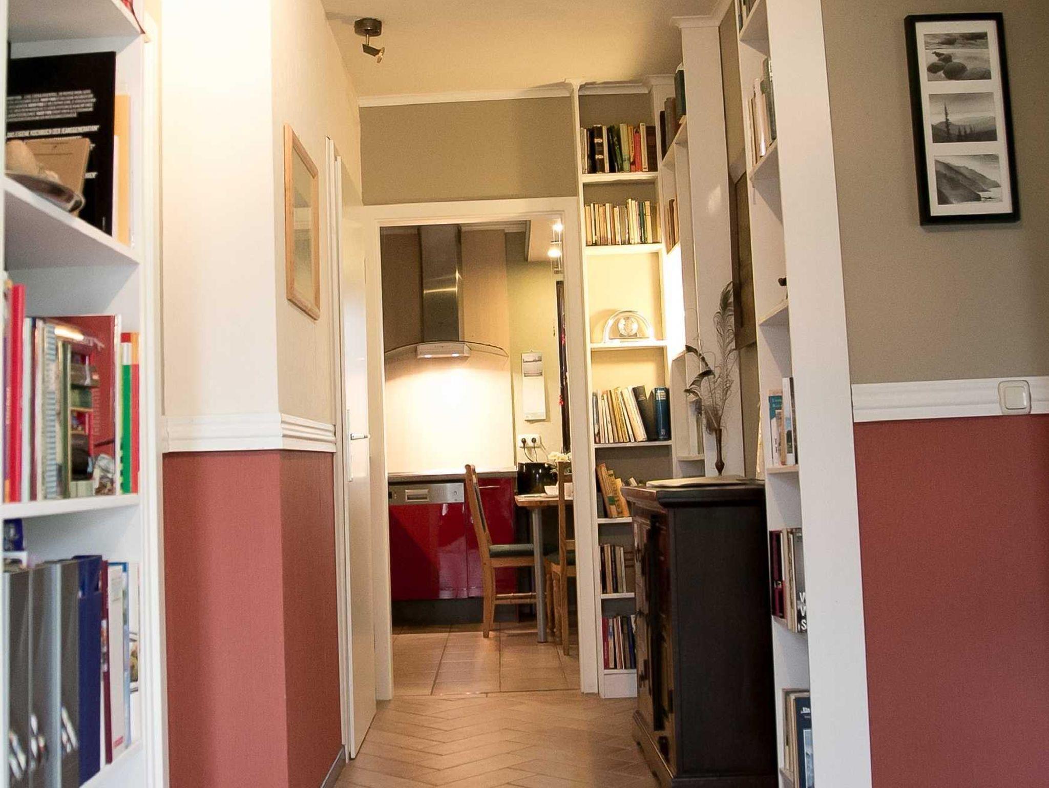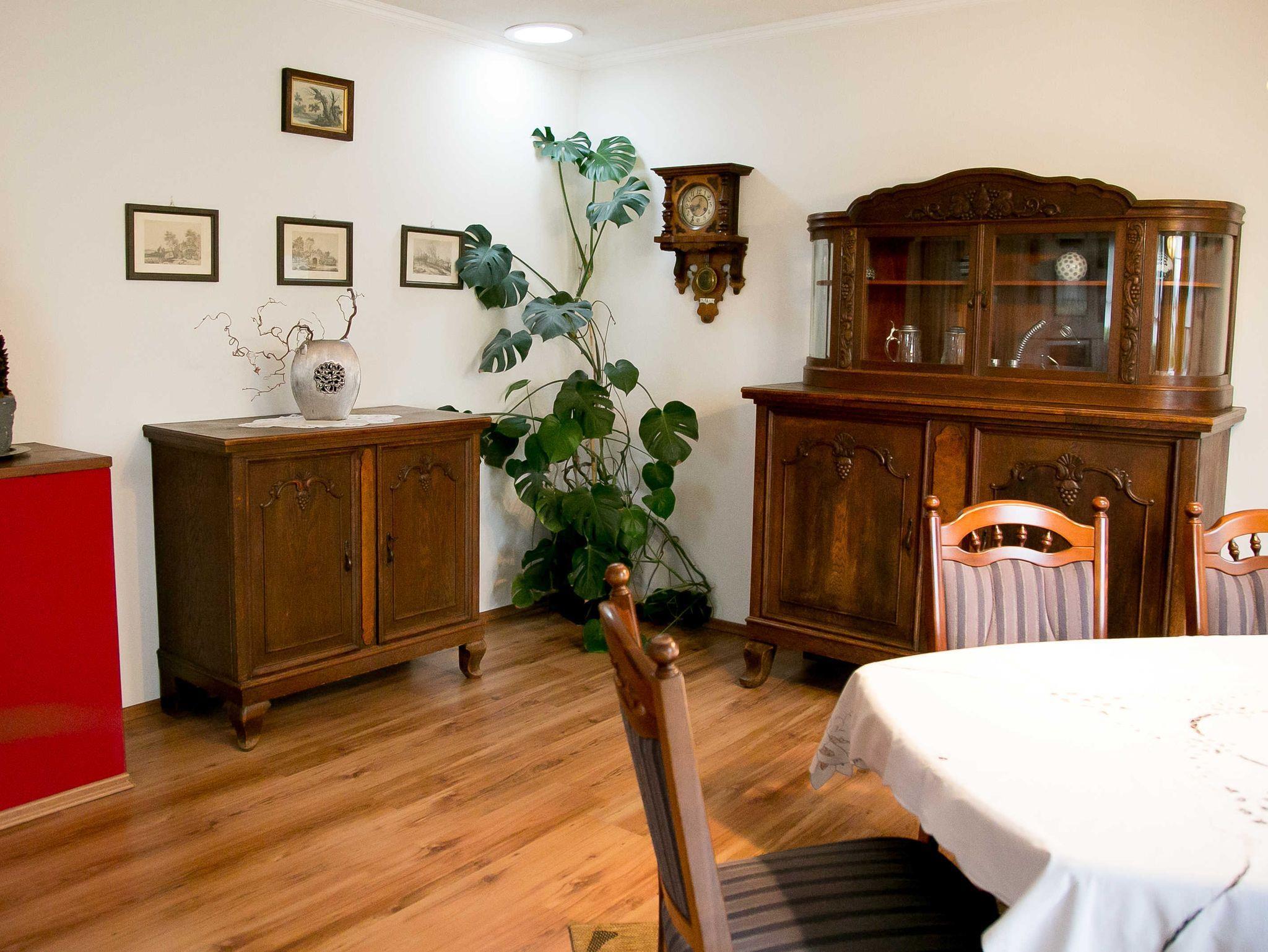 Sehr geschmackvolle Ferienwohnung im Erdgeschoss mit einer umfassenden Ausstattung für maximal 4 Personen bei ausschließlicher Nutzung dieser Wohnung. In der Wohnung überzeugen neben schönen Möbeln, ein direkten Zugang zur Terrasse viele Details wie Bilder und Bücher sowie ein Kamin. Diese Ferienwohnung besteht aus einem Wohnzimmer, einem Schlafzimmer, Küche und Bad sowie einer geräumigen Diele mit einer Bibliothek. Bücher und Spiele laden zum Relaxen und unterhaltsamen Zusammensein ein. Das Wohnzimmer besitzt eine hochwertige Ausstattung mit Sitzecke, TV und Kamin. Das Ambiente runden passende Bilder ab. Ein großer Esstisch für 14 Personen lädt zum gemütlichen Beisammensein ein. Bei Bedarf können im Wohnzimmer bis zu 25 Personen an Tischen Platz finden. Es bietet somit Platz für kleinere Familienfeiern. Von hier aus gibt es einen direkten Zugang zu einer Terrasse und dem Garten, der allen Gästen zur Verfügung steht. Neben dem Doppelbett im Schlafzimmer bietet eine Schlafcouch Übernachtungsmöglichkeit für zwei zusätzliche Gäste. Ein Babybett kann aufgestellt werden. Die Küche im Erdgeschoss beinhaltet eine Einbauküche, Geschirrspüler, Herd mit Ceranfeld, einen Tisch für 4 Personen und einen Backofen sowie eine Mikrowelle und natürlich umfangreiche Ausstattung an Geschirr und Küchenutensilien. Das ansprechende Bad mit Fenster ist mit einer altengerechten Dusche, WC, Urinal und Badmöbeln für ihre Utensilien ausgestattet. Da es im Objekt keinen allgemeinen Aufenthalts- oder Frühstücksraum gibt, wäre es günstig, wenn die Gäste vorrangig eine eigene Frühstücksversorgung übernehmen. In den vollausgestatteten Küchen sind immer Kaffee, Tee, Kondensmilch und selbstgemachte Marmelade vorhanden. Gern übernehme ich nach Absprache einen entsprechenden Einkaufsservice, um fehlende Dinge entsprechend Ihrer Wünsche bereit zu stellen. Auf dem Grundstück befinden sich zwei Terrassen, die durch die Gäste genutzt werden können. Zum Garten gehören ein Laubenhaus und eine Feuerstelle. Ein kleiner Teich mit einer Holzbrücke schafft Zugang zum romantischen Laubenhäuschen, das auch bei schlechterem Wetter für 4-6 Personen Platz bietet. Der Garten ist für alle Gäste nutzbar. Den Gästen stehen insgesamt zwei Parkplätze in der Doppelgarage sowie ein Stellplatz auf dem Grundstück zur Verfügung. Weitere, kostenfreie öffentliche Parkplätze befinden sich in 50 m Entfernung.
