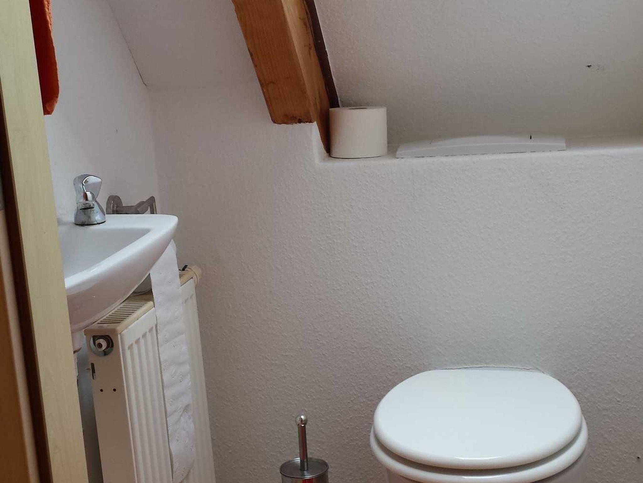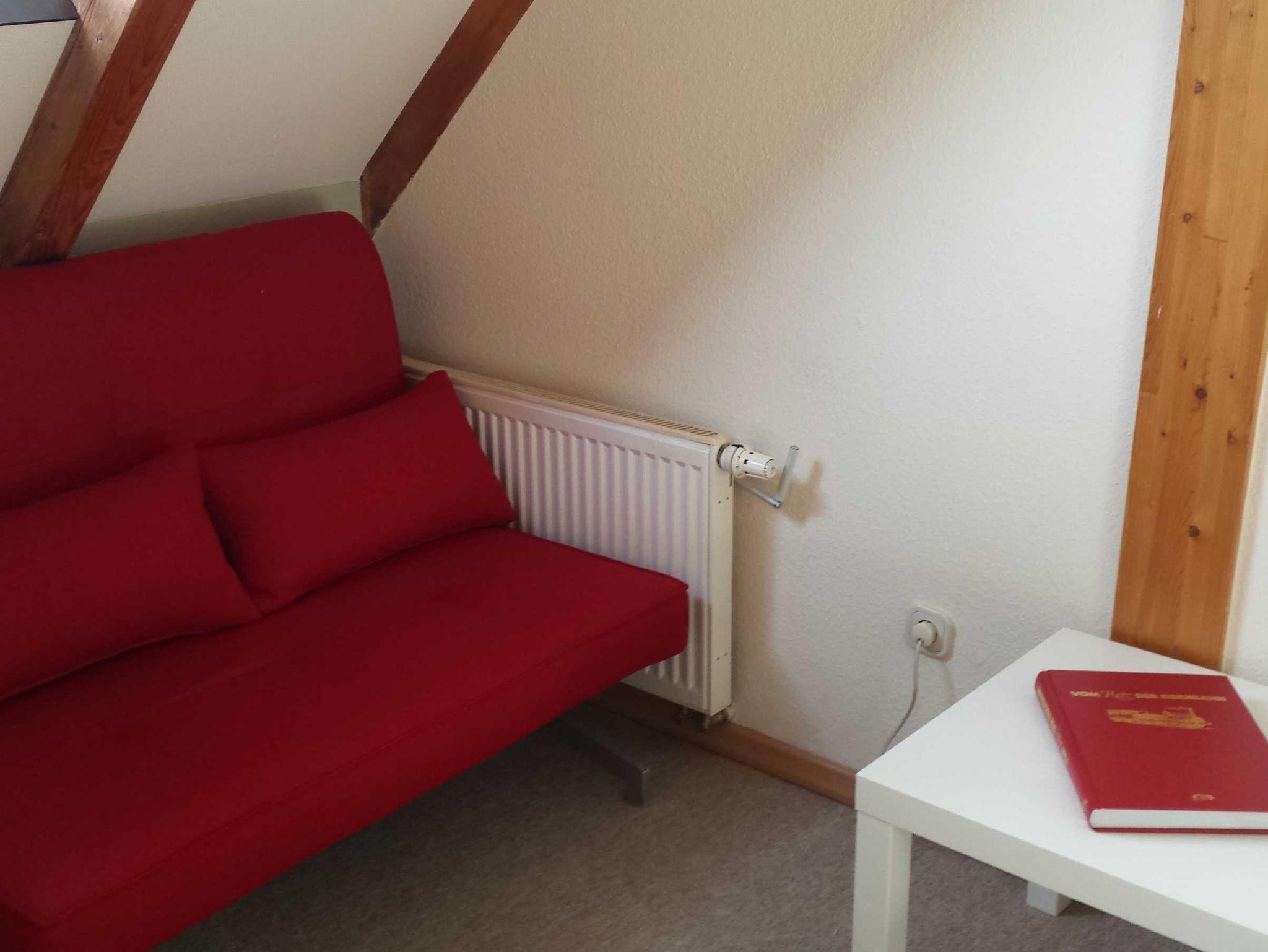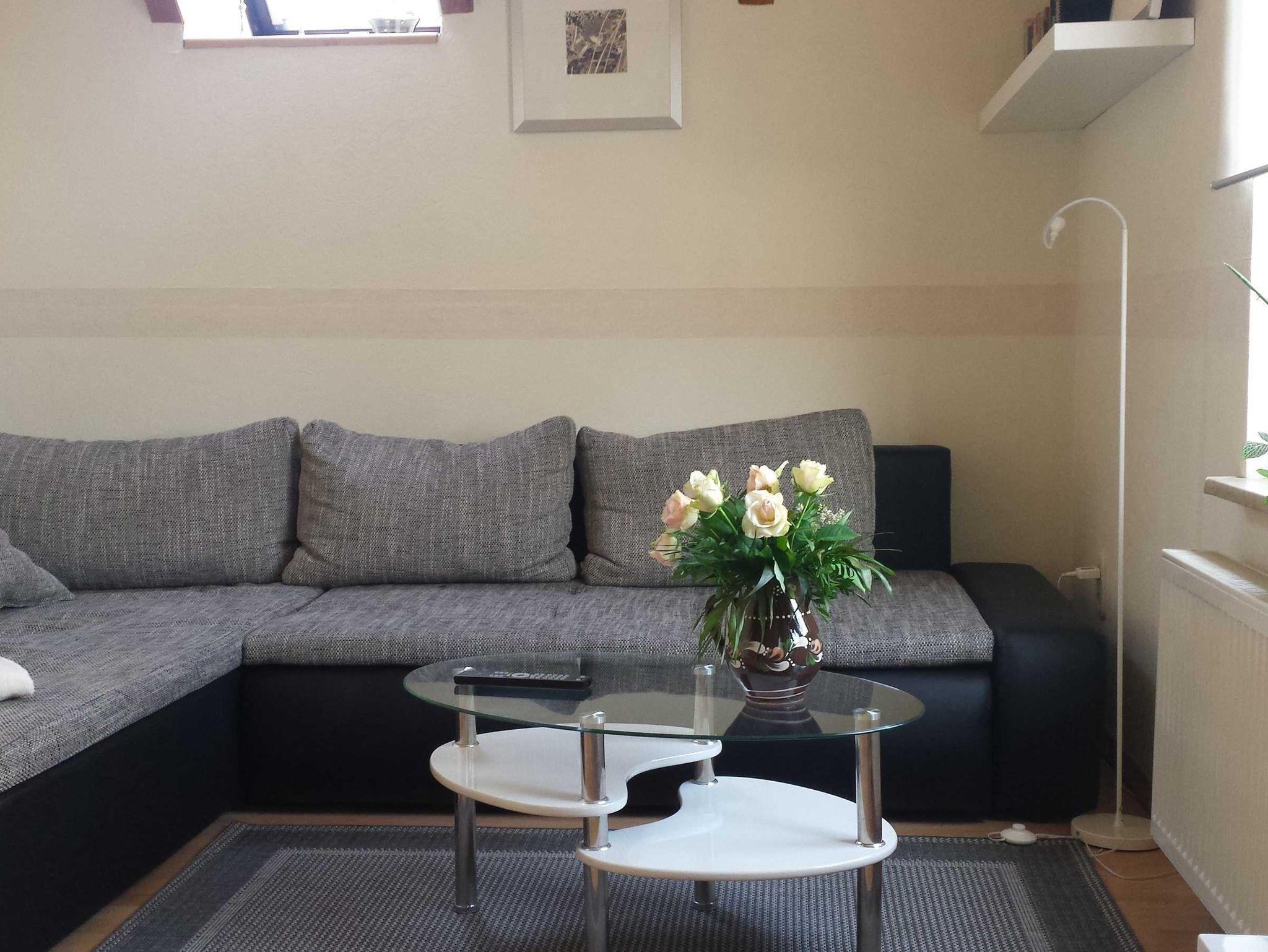 Die erste Etage der Wohnung verfügt über ein geräumiges, komfortabel eingerichtetes Wohnzimmer mit einer Doppelbettcouch, TV und einem Esstisch für 6 Personen, eine voll ausgestattete Küche mit einem Tisch für 2 Personen und ein Badezimmer. Auf der zweiten Etage gibt es ein Schlafzimmer mit Doppelbett und Einbauschrank, ein Einzelzimmer mit zusätzlichem Schlafsofa und ein Gäste-WC. Da es im Objekt keinen allgemeinen Aufenthalts- oder Frühstücksraum gibt, wäre es günstig, wenn die Gäste vorrangig eine eigene Frühstücksversorgung übernehmen. In den vollausgestatteten Küchen sind immer Kaffee, Tee, Kondensmilch und selbstgemachte Marmelade vorhanden. Gern übernehme ich nach Absprache einen entsprechenden Einkaufsservice, um fehlende Dinge entsprechend Ihrer Wünsche bereit zu stellen.
