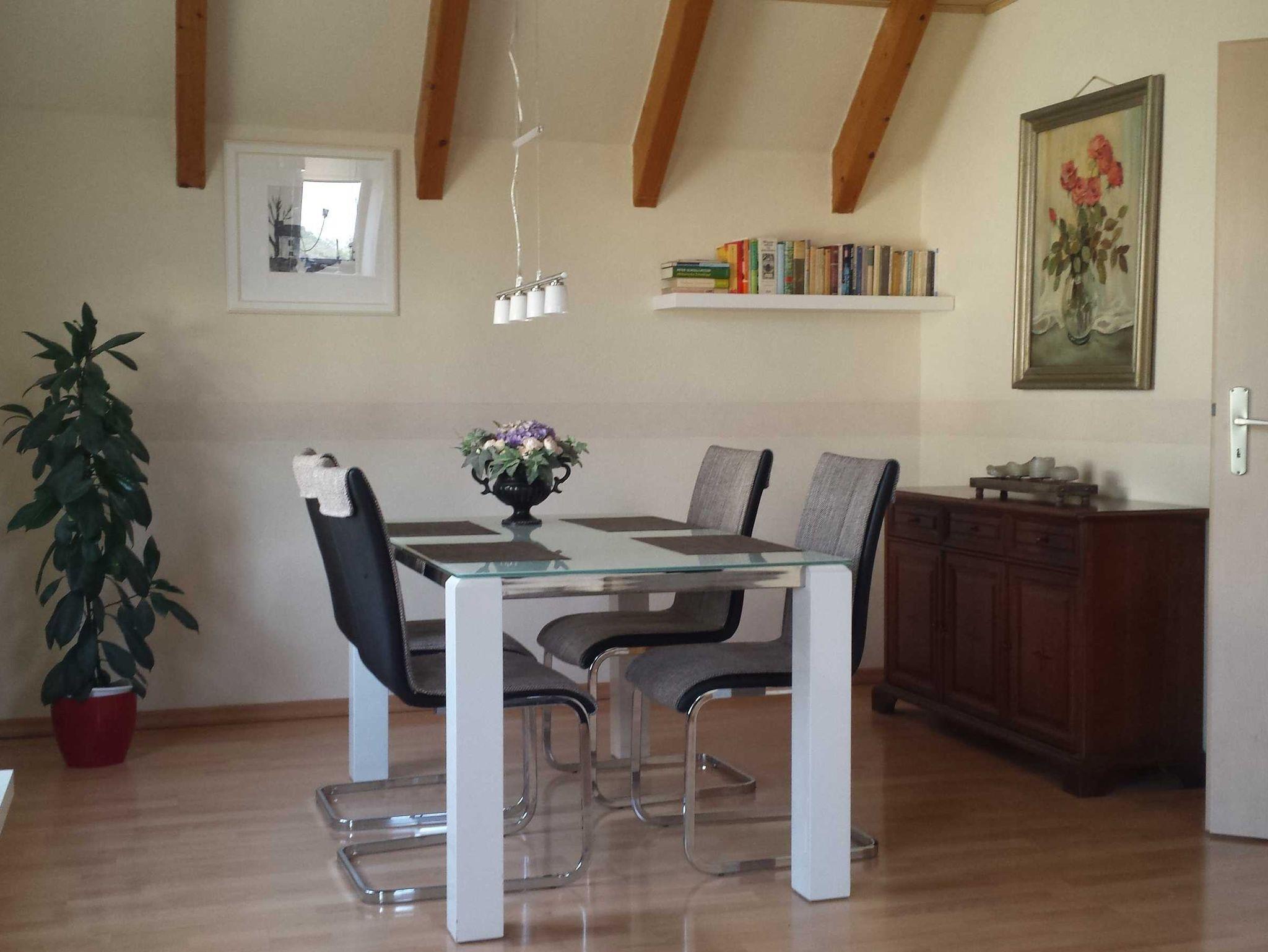 Die modern und geschmackvoll eingerichtete Ferienwohnung für bis zu 6 Personen befindet sich im Anbau über der Doppelgarage. Die Wohnung ersteckt sich über 2 Etagen und ist für Personen mit eingeschränkter Mobilität nicht geeignet.