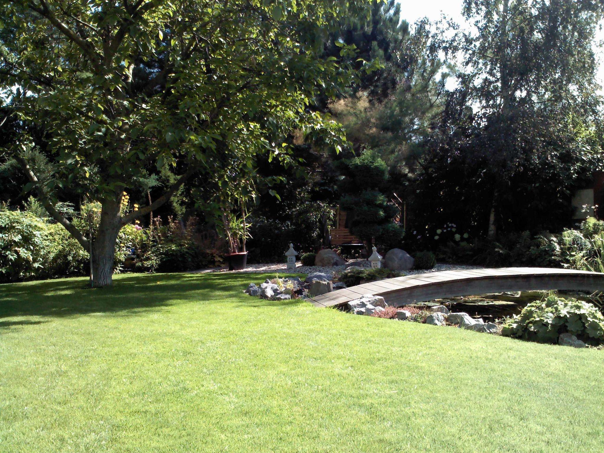 Auf dem Grundstück befinden sich zwei Terrassen, die durch die Gäste genutzt werden können. Zum Garten gehören ein Laubenhaus und eine Feuerstelle. Ein kleiner Teich mit einer Holzbrücke schafft Zugang zum romantischen Laubenhäuschen, das auch bei schlechterem Wetter für 4-6 Personen Platz bietet. Der Garten ist für alle Gäste nutzbar. Allen Gästen des Hauses stehen insgesamt zwei Parkplätze in der Doppelgarage sowie ein Stellplatz auf dem Grundstück zur Verfügung. Weitere, kostenfreie öffentliche Parkplätze befinden sich in 50 m Entfernung.