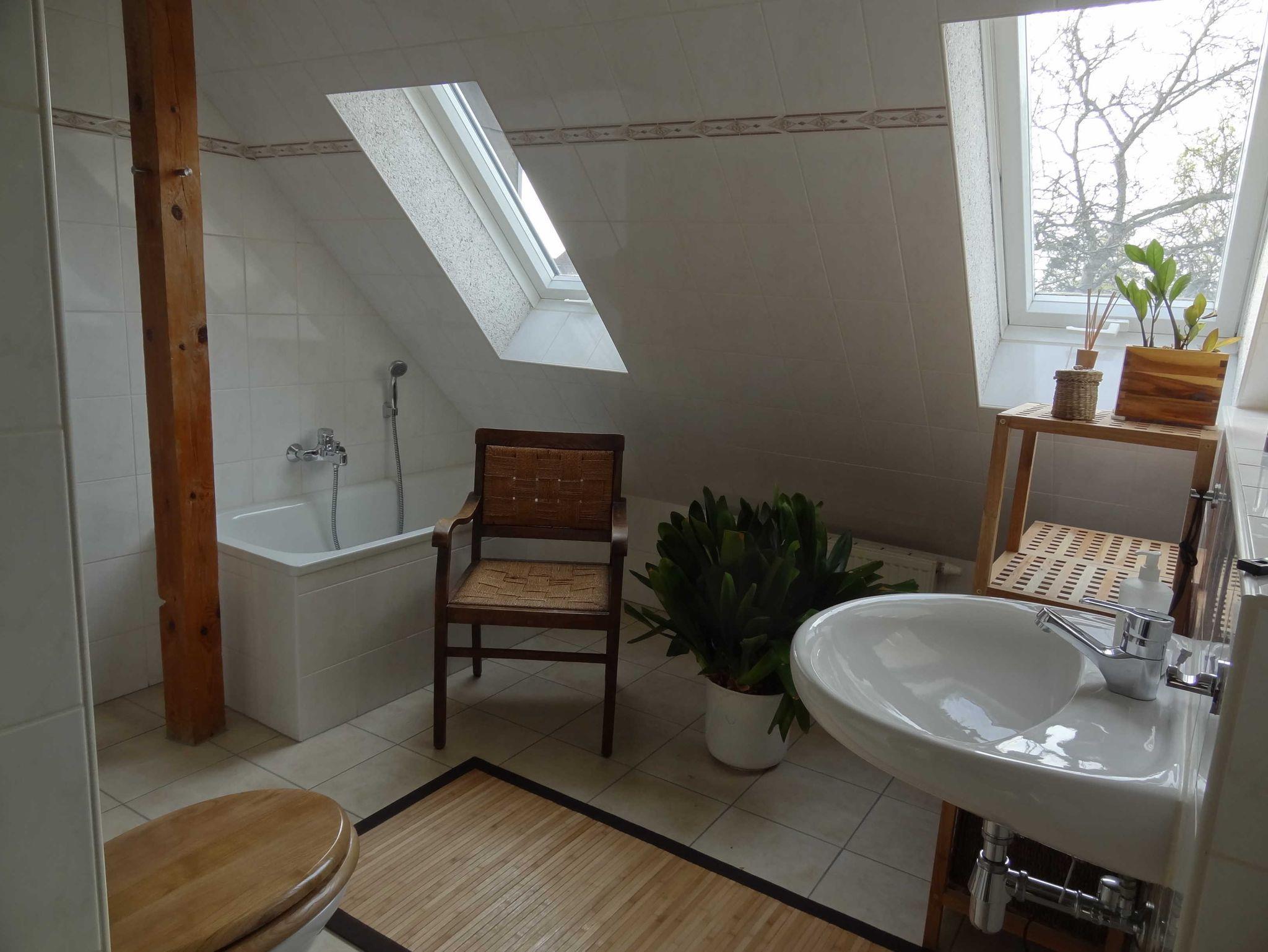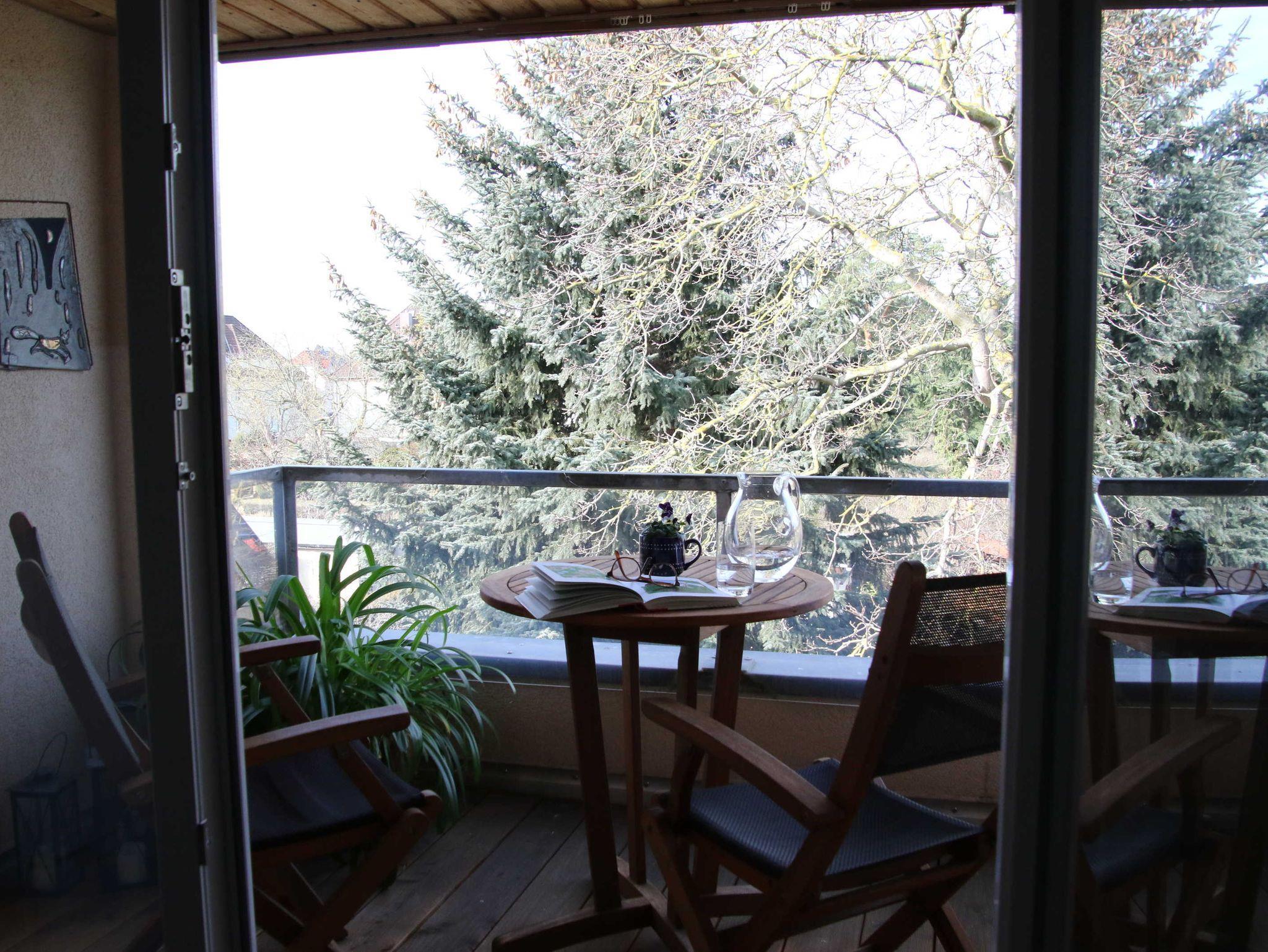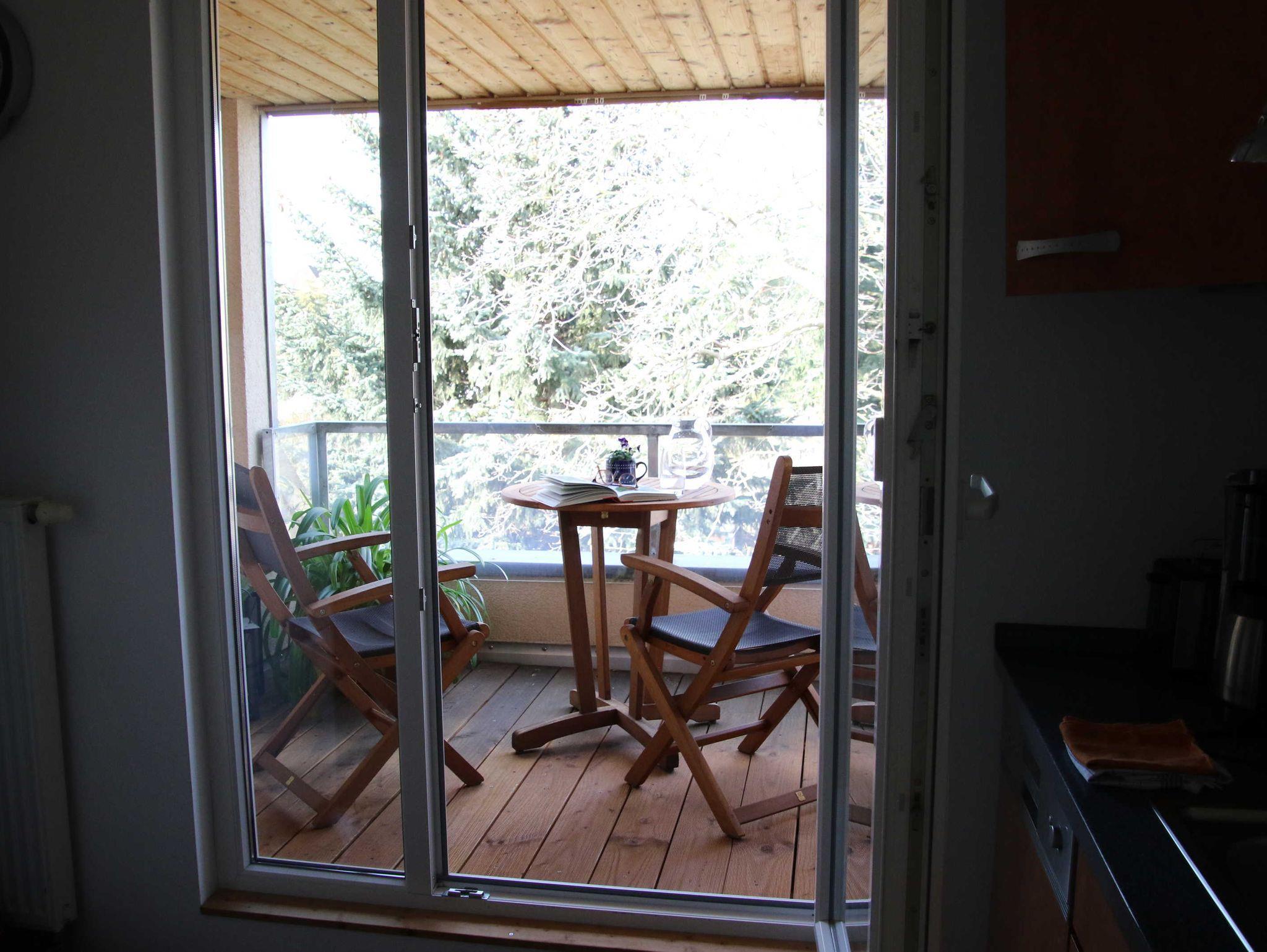 Trotz alledem eine völlig ruhige, sehr gemütliche und helle Wohnung mit herrlichem, sich im Grünen verlierenden Blick von der südwestlich gelegenen Loggia.