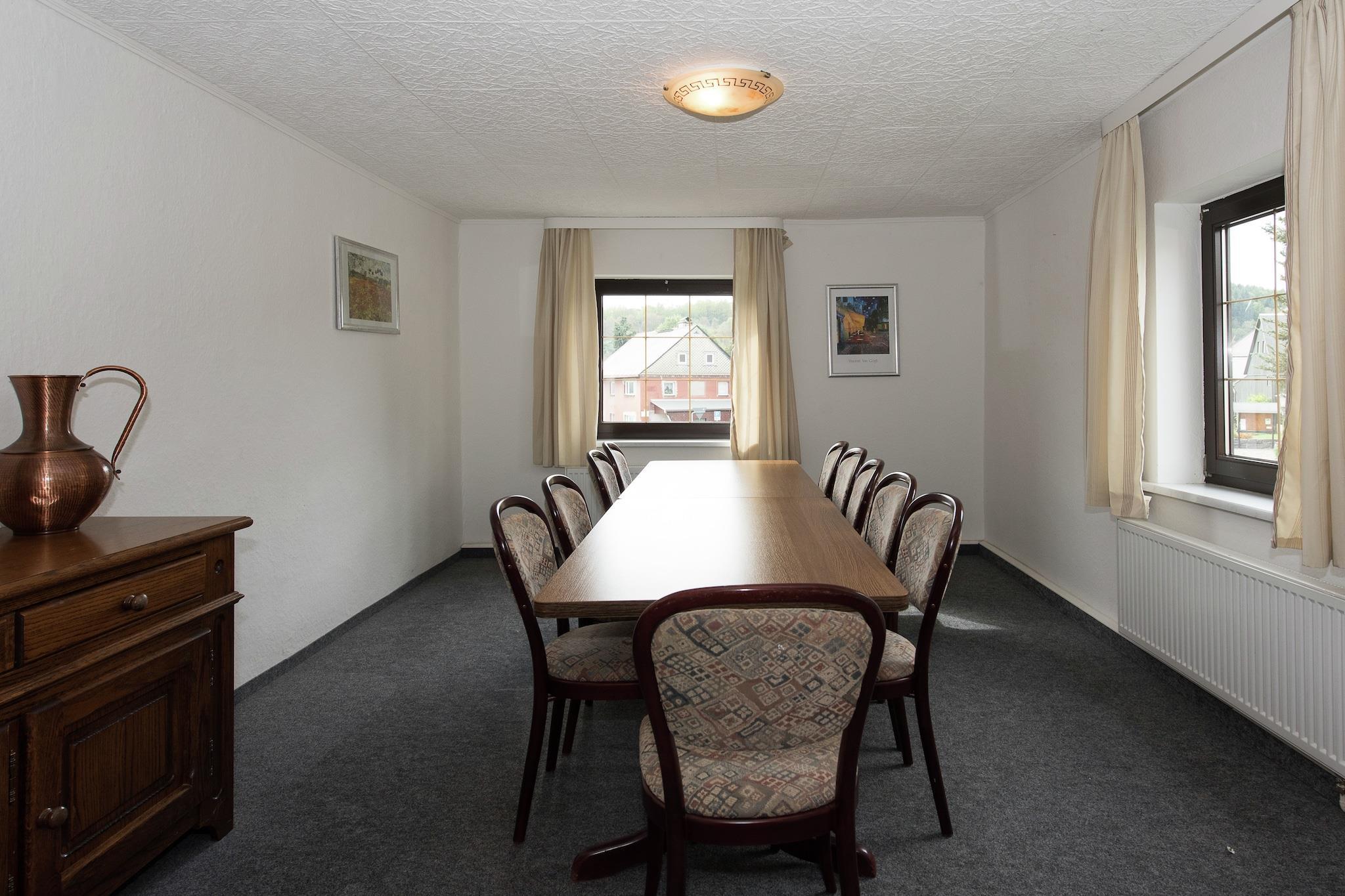 Gemt i hjertet af Ertsbjergene tilbyder dette luksuriøse feriehus med 14 soveværelser et rummeligt tilflugtssted for op til 22 gæster - ideel til genforeninger eller store familiesammenkomster. Det er omgivet af frodige grønne områder og har en legeplads, en grill til aftengrill og rigelig parkering for nemheds skyld. Regionen er berømt for sin traditionelle trækunst og naturskønne skønhed. Kun 5 km væk kan gæsterne nyde skilifte og langrendsløjper om vinteren eller udforske nærliggende søer og skove om sommeren. Med restauranter på 1 km og byens centrum - inklusive supermarkeder og natteliv - på 5 km, er alt hvad du behøver inden for rækkevidde. Indenfor har hvert soveværelse et en-suite badeværelse, mens fælles rum inkluderer en bar, billard og en hyggelig stue. Børn vil elske spilcomputeren og gennemtænkte faciliteter såsom en høj stol og børneseng. Kæledyr er også velkomne (ekstra gebyr), hvilket gør dette tilflugtssted lige så inkluderende, som det er overbærende.