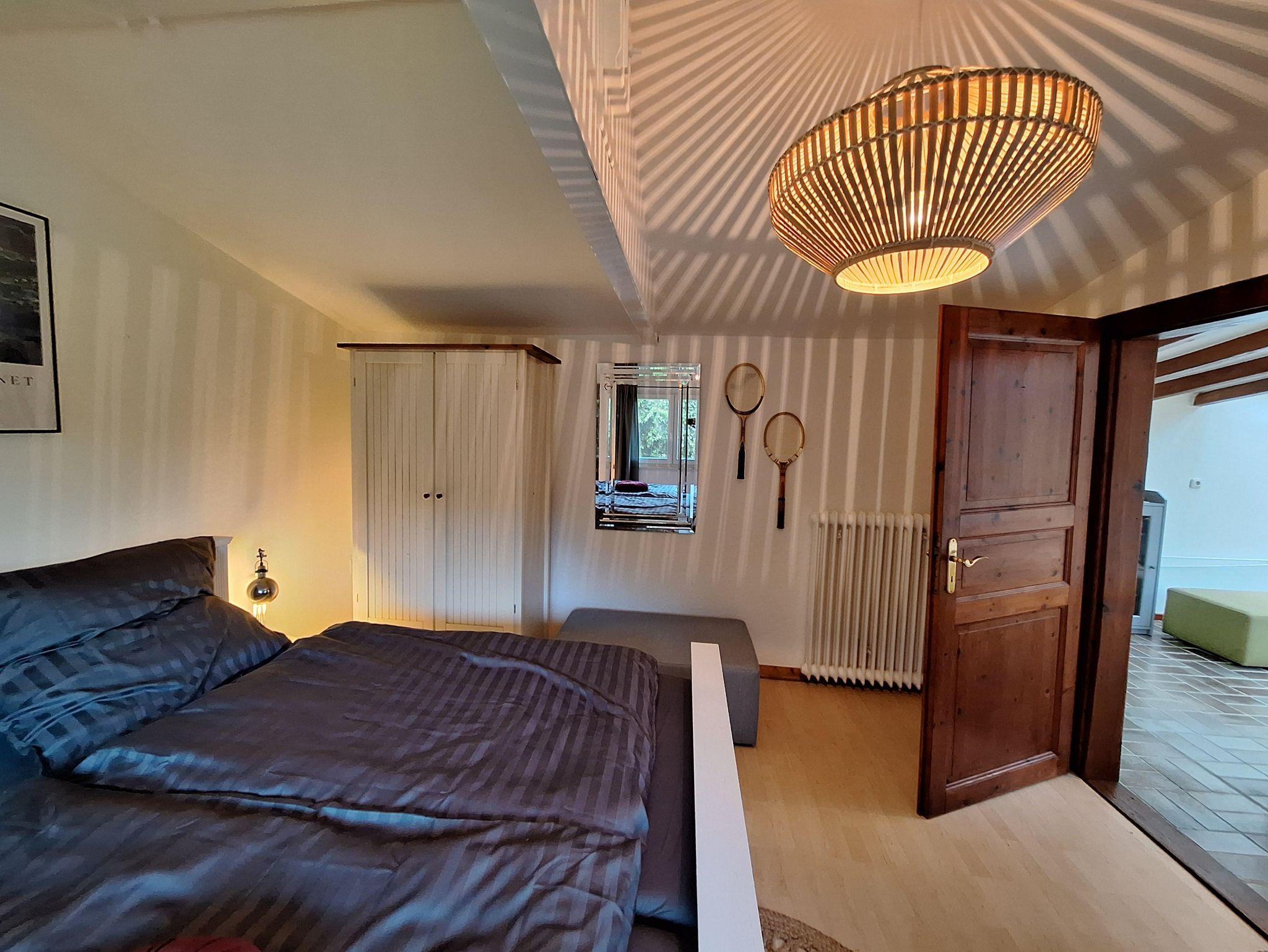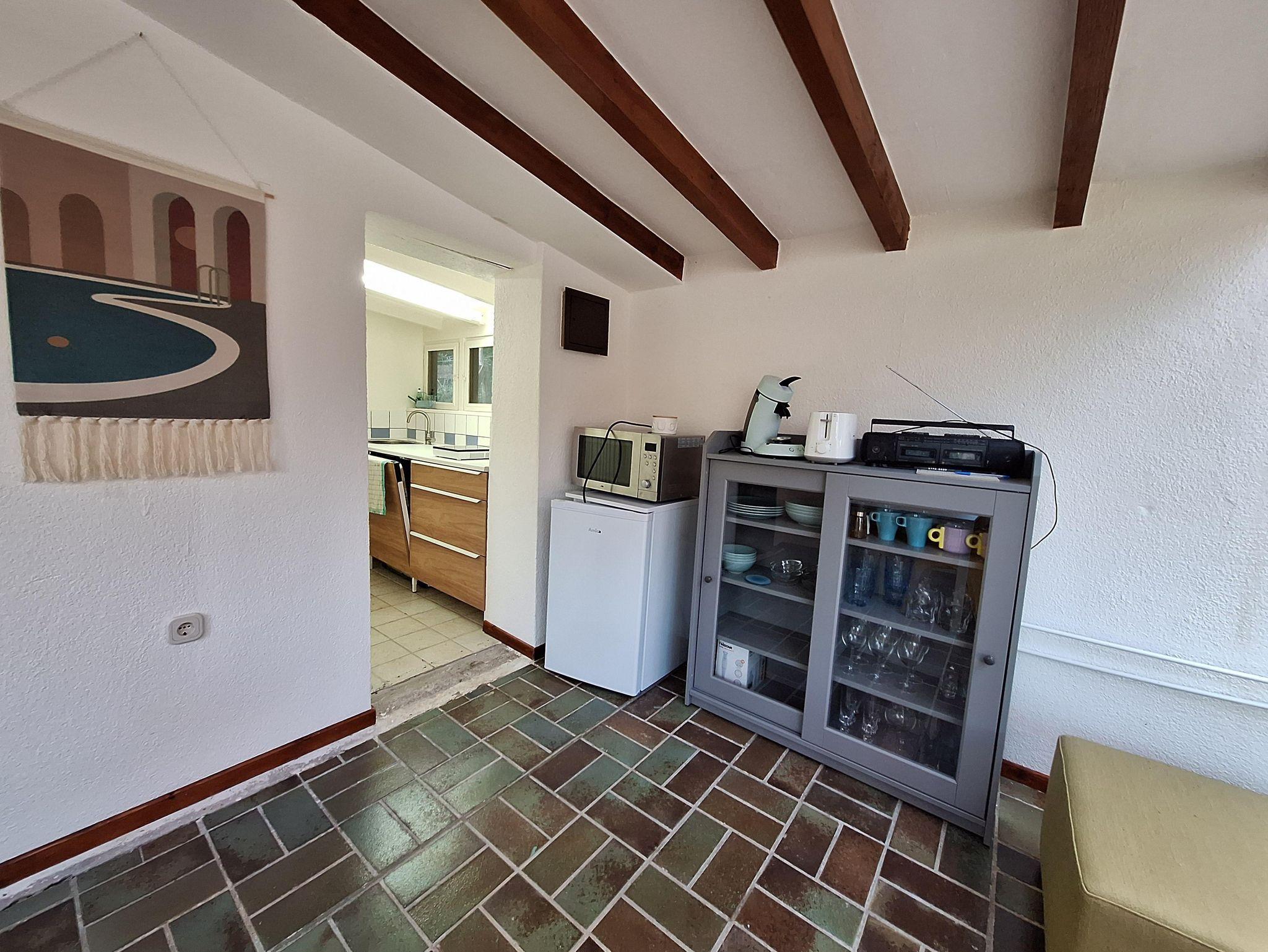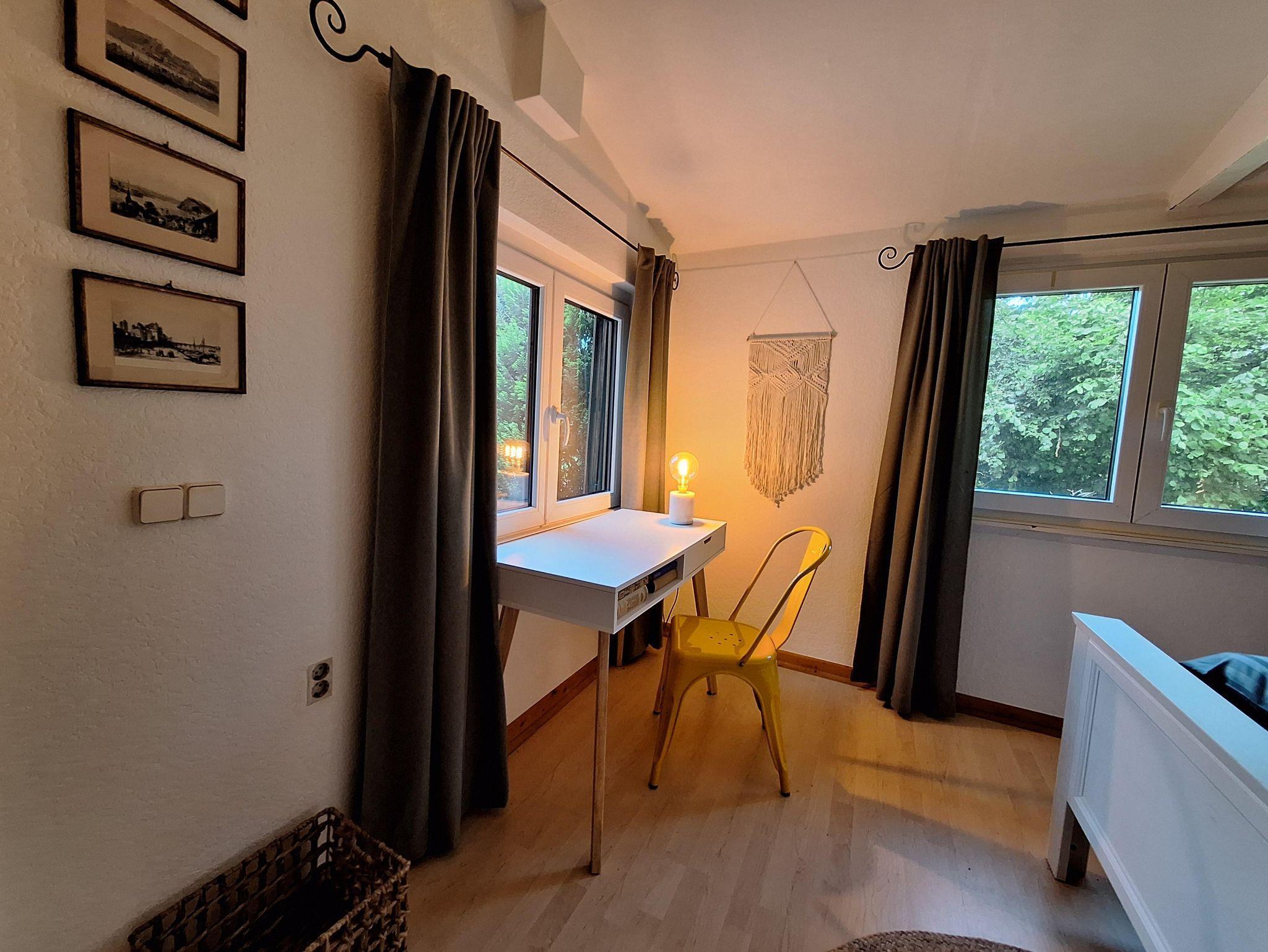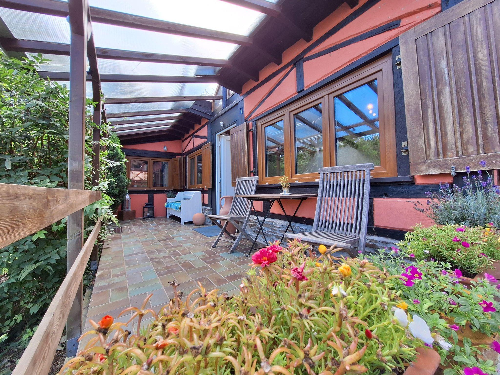 Das Chalet ist mit einem hellen Wohnzimmer mit gemütlicher Sitzgarnitur, SAT-TV, Radiorecorder, Spiele sowie dem direkten Zugang zum Garten eingerichtet und hat einen separaten Eingang. Im Wohnbereich befindet sich die Schlafmöglichkeit für die 3. & 4. Person. Die Küchenzeile ist gut ausgestattet unter anderem mit Kühlschrank, 2-Platten-Ceranfeld, Geschirrspüler, Senseo-Kaffeemaschine, Toaster, Wasserkocher, Mikrowelle. Zudem verfügt es über einen separaten Schlafbereich mit einem Doppelbett (1.80m x 2,00m). Vom Essplatz aus genießen Sie schon beim Frühstück einen herrlichen Ausblick ins Grüne. Der Gartenbereich mit Teich, und überdachter Veranda machen Ihren Aufenthalt am Tage und auch abends zu einem naturnahen entspannenden Erlebnis. Von verschiedenen Sitzplätzen aus erschließt sich ihnen immer wieder eine andere Perspektive ins Grüne.