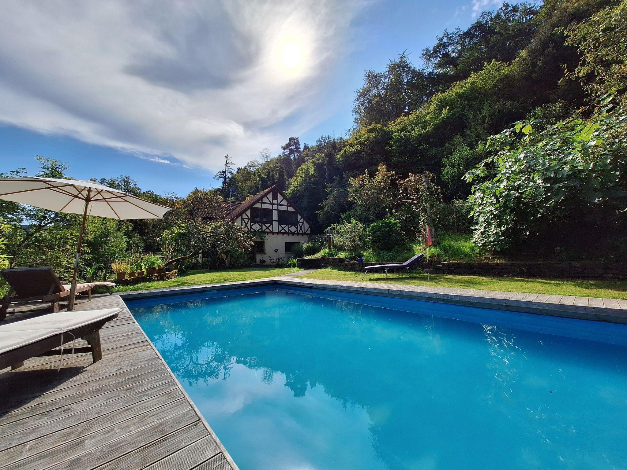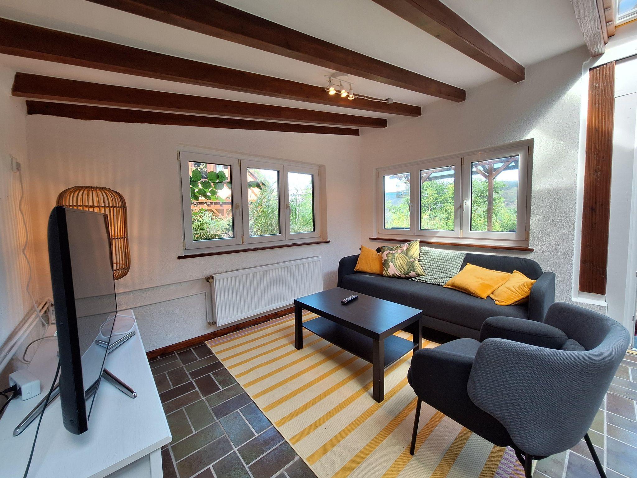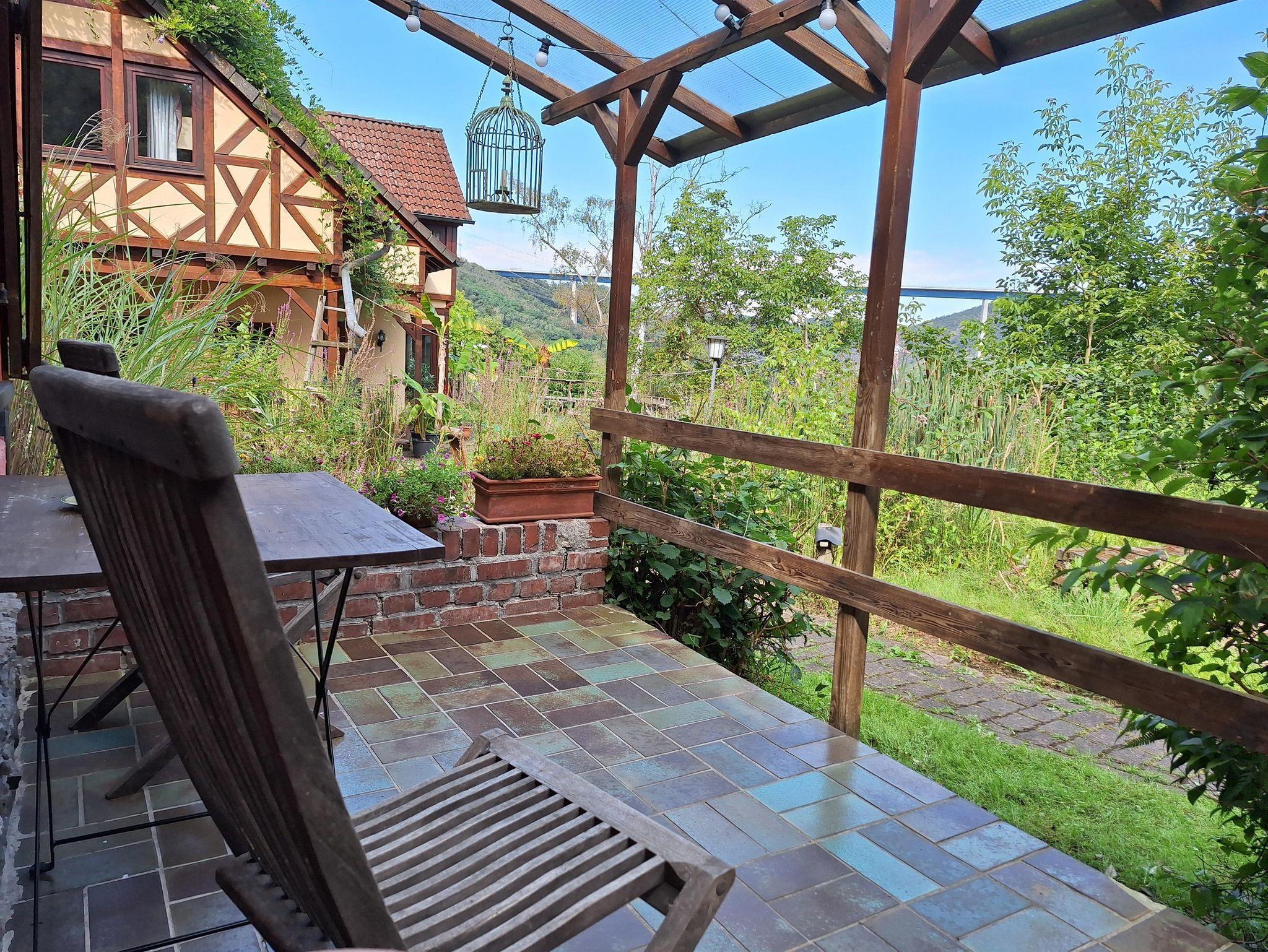 Gemütliches Chalet mit großem Grundstück am Ortsrand der Moselgemeinde Dieblich mit traumhaftem Ausblick auf die gegenüberliegenden Weinberge von Winningen und die Mosel. Es liegt an einer nicht asphaltierten Auffahrt, die an einem etwas weiter gelegenen Haus endet. Das charmante Haus strahlt eine gemütliche Atmosphäre aus, mit seiner natürlichen Optik und dem warmen, einladenden Ambiente. Ein Ort, in Mitten unberührter Natur, an dem man dem hektischen Alltag entfliehen und zur Ruhe kommen kann, umgeben von Frieden und Harmonie. Das gepflegte und gut ausgestattete Chalet verfügt über ein Schlafzimmer mit Doppelbett, ein Wohnraum, eine gut ausgestatteten Küchenzeile sowie ein kleines Badezimmer mit Dusche. Auf der überdachten Veranda mit Sitzmöglichkeiten, im Garten oder direkt am Pool (zur Gemeinschaftsnutzung) mit Moselblick kann man tief durchatmen und die Natur genießen.
