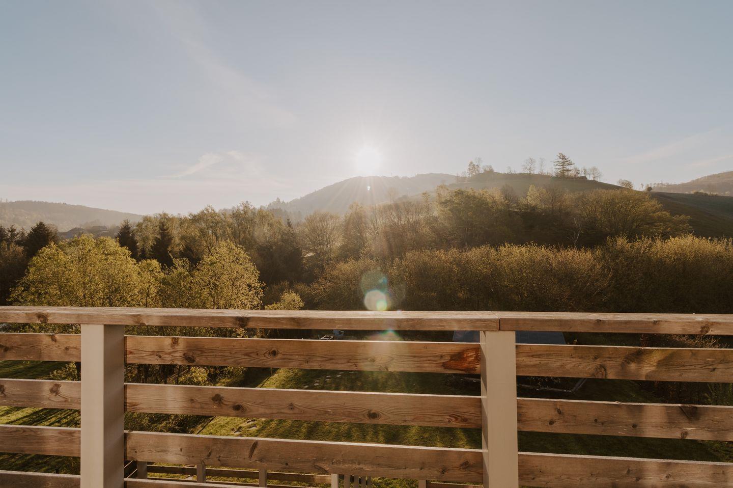 Vom großen Balkon genießt du einen wunderbaren Blick ins Grüne – perfekt für ein Frühstück an der frischen Luft oder entspannte Grillabende mit dem Elektrogrill. Der große Garten mit Lagerfeuerstelle darf gemeinschaftlich von allen Gästen genutzt werden und bietet viel Platz für kleine Abenteurer und gesellige Stunden.