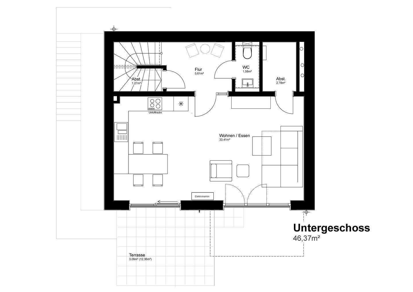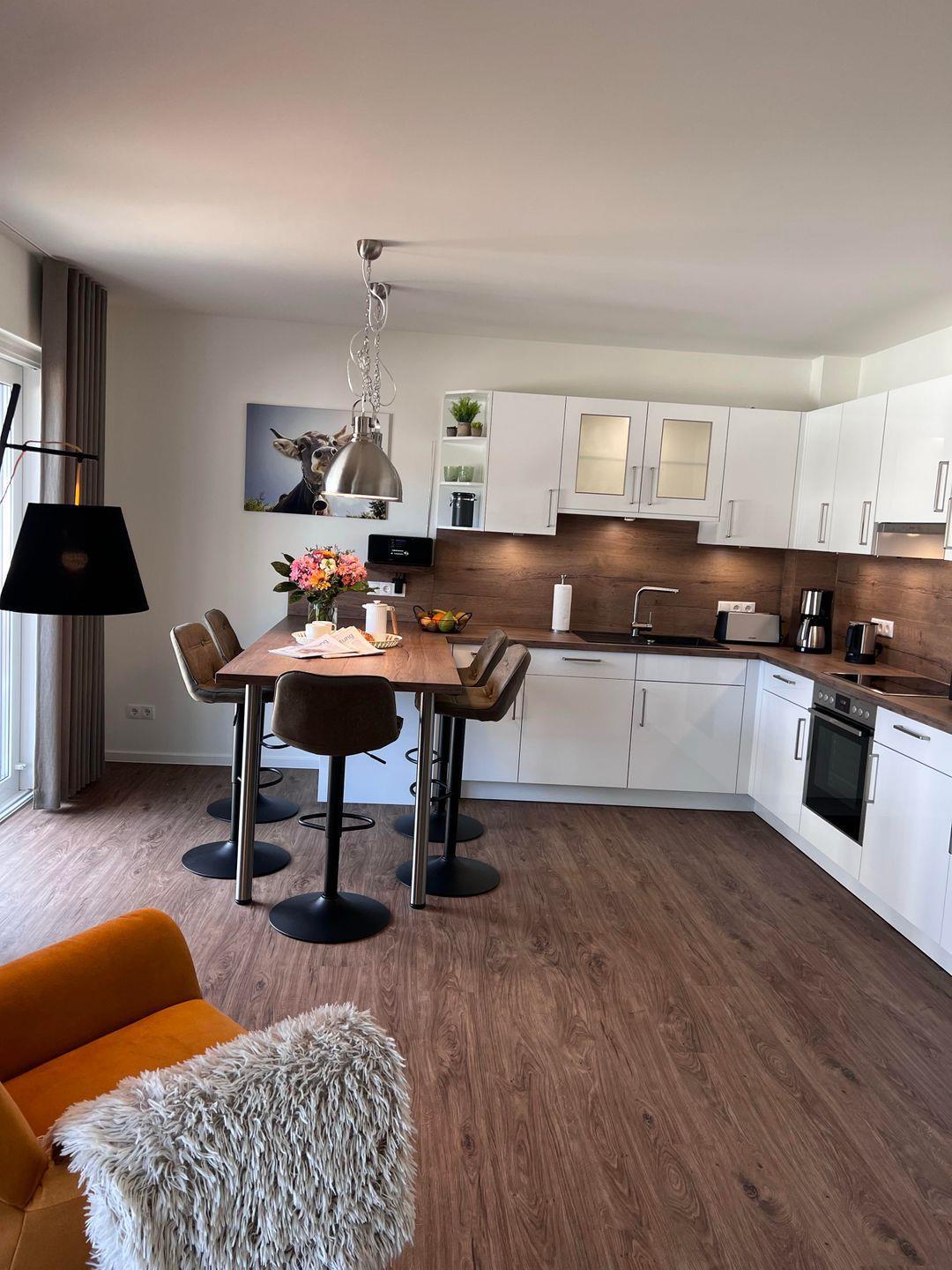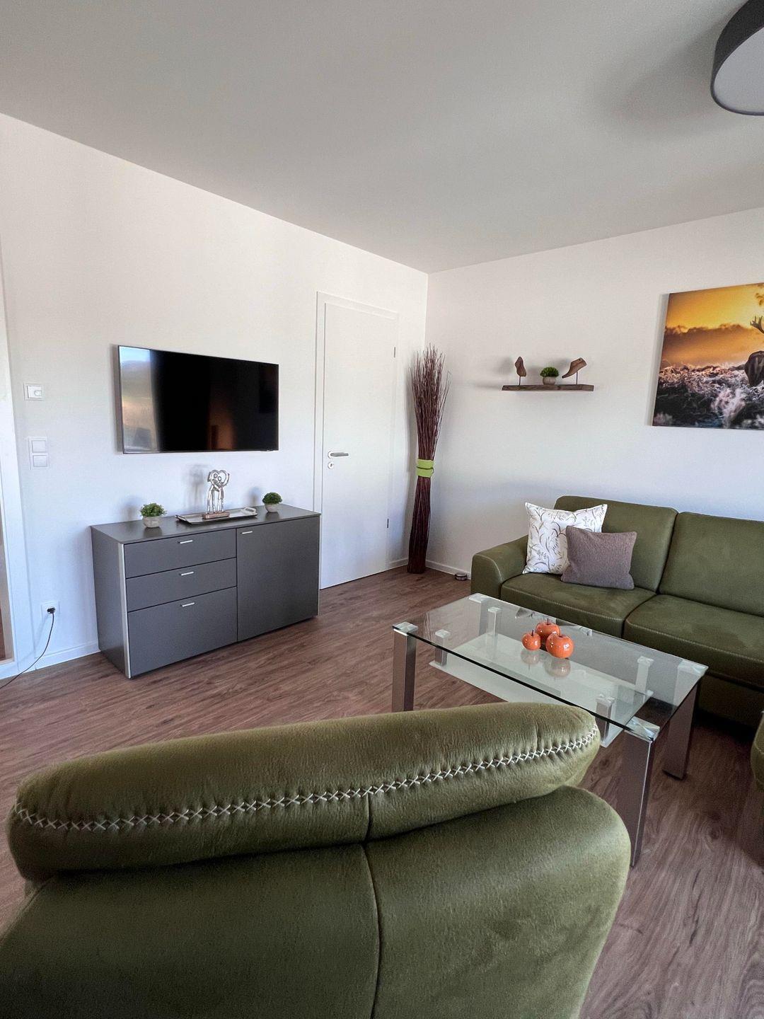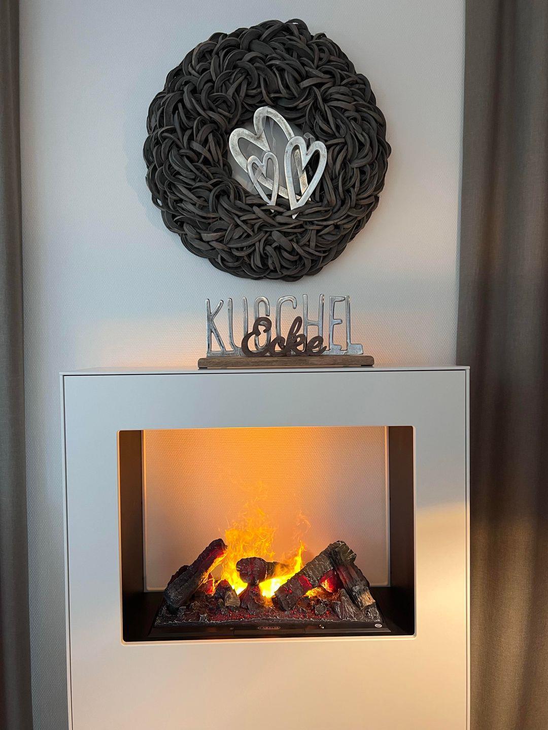 Der großzügige Wohnbereich mit bequemer Wohnlandschaft, Sessel und Elektrokamin lädt zum Verweilen ein. In der offenen Küche mit Essplatz findest du alles, was du zum Kochen brauchst – perfekt für gemütliche Abende mit Familie oder Freunden. Warme Farben, große Fenster und liebevolle Details schaffen ein harmonisches Ambiente. Durch die große Terrassentür erreichst du die Sonnenterrasse mit angrenzendem Garten – ideal zum Entspannen im Freien.