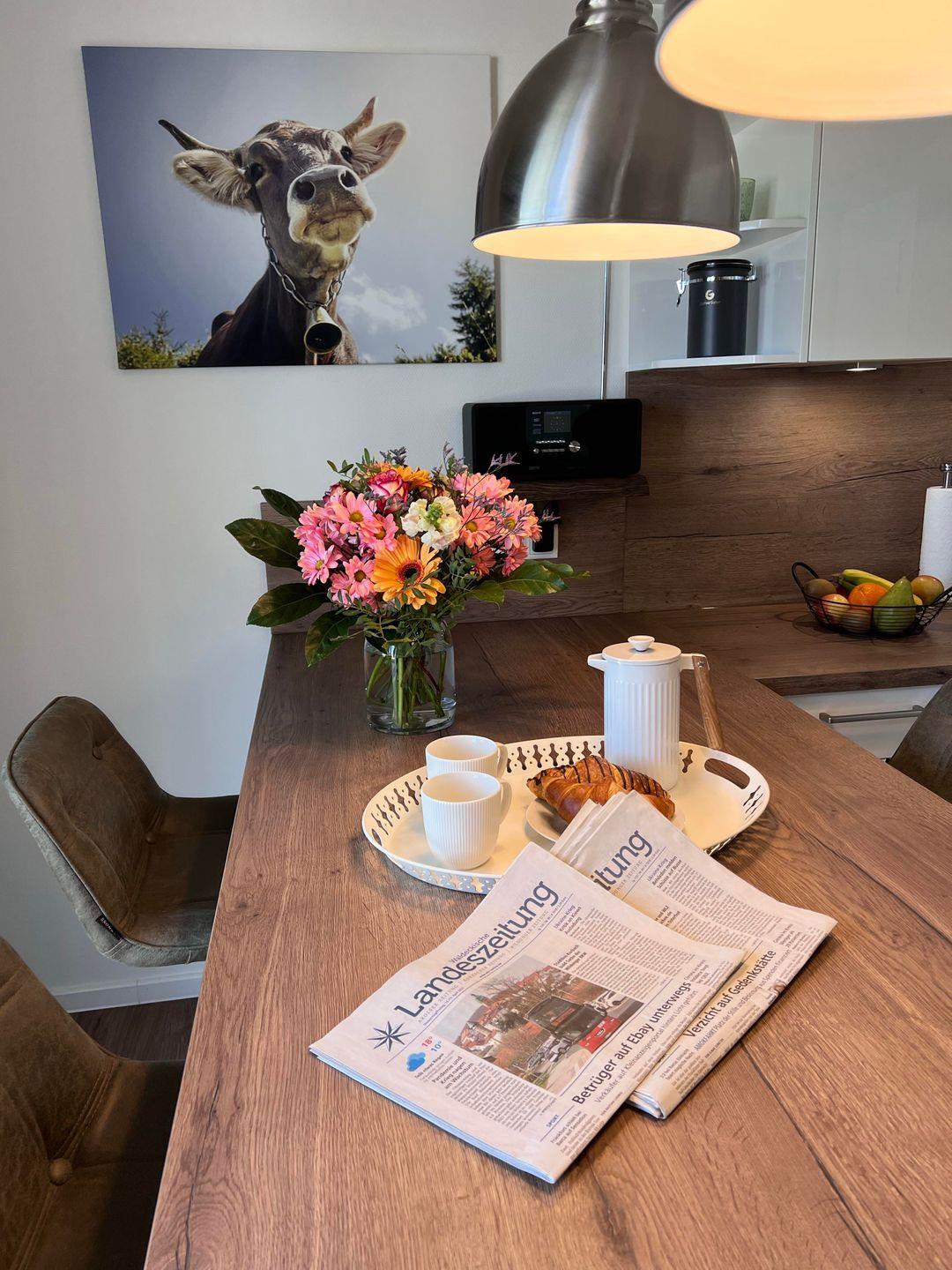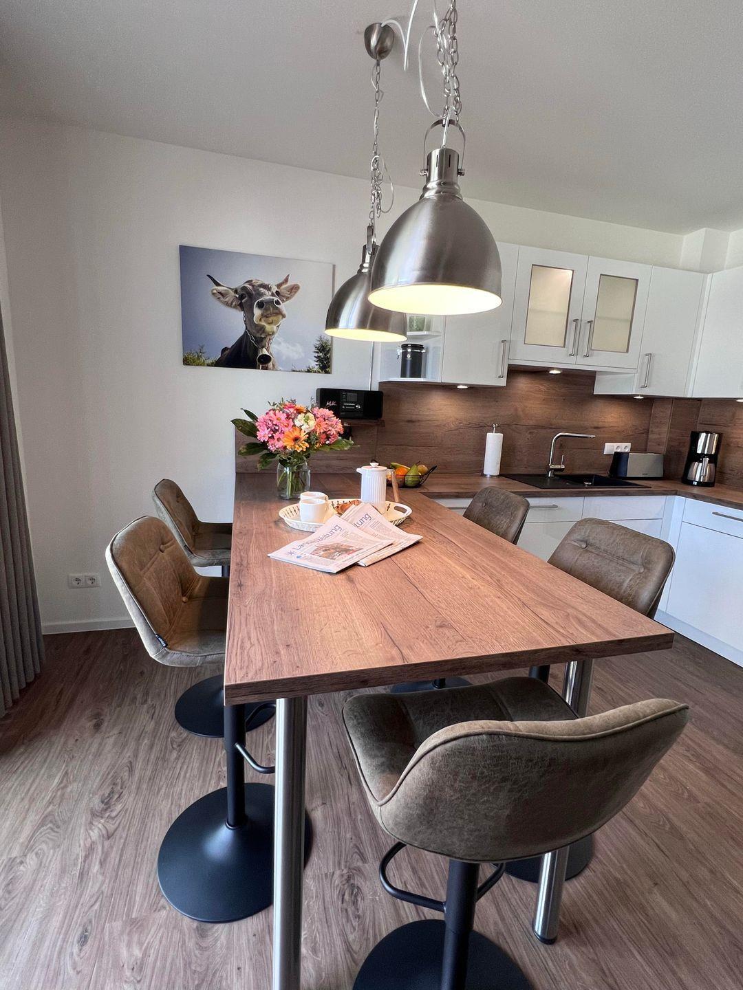 Zwei Pkw-Stellplätze, Fußbodenheizung, Waschmaschine, Trockner und ein Schlüsseltresor für kontaktlosen Check-in gehören zur Ausstattung. Fahrräder können bequem an der Hofauffahrt abgestellt werden.