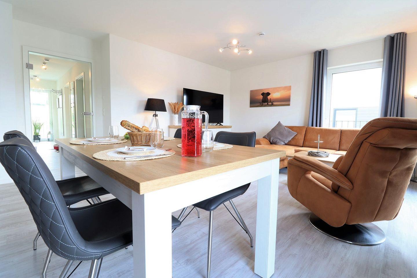 Auch Familien fühlen sich hier wohl: die ruhige Lage, viel Platz und kurze Wege zum Spielplatz oder zum Wasser machen die Wohnung zu einem beliebten Ziel für kleine und große Gäste.