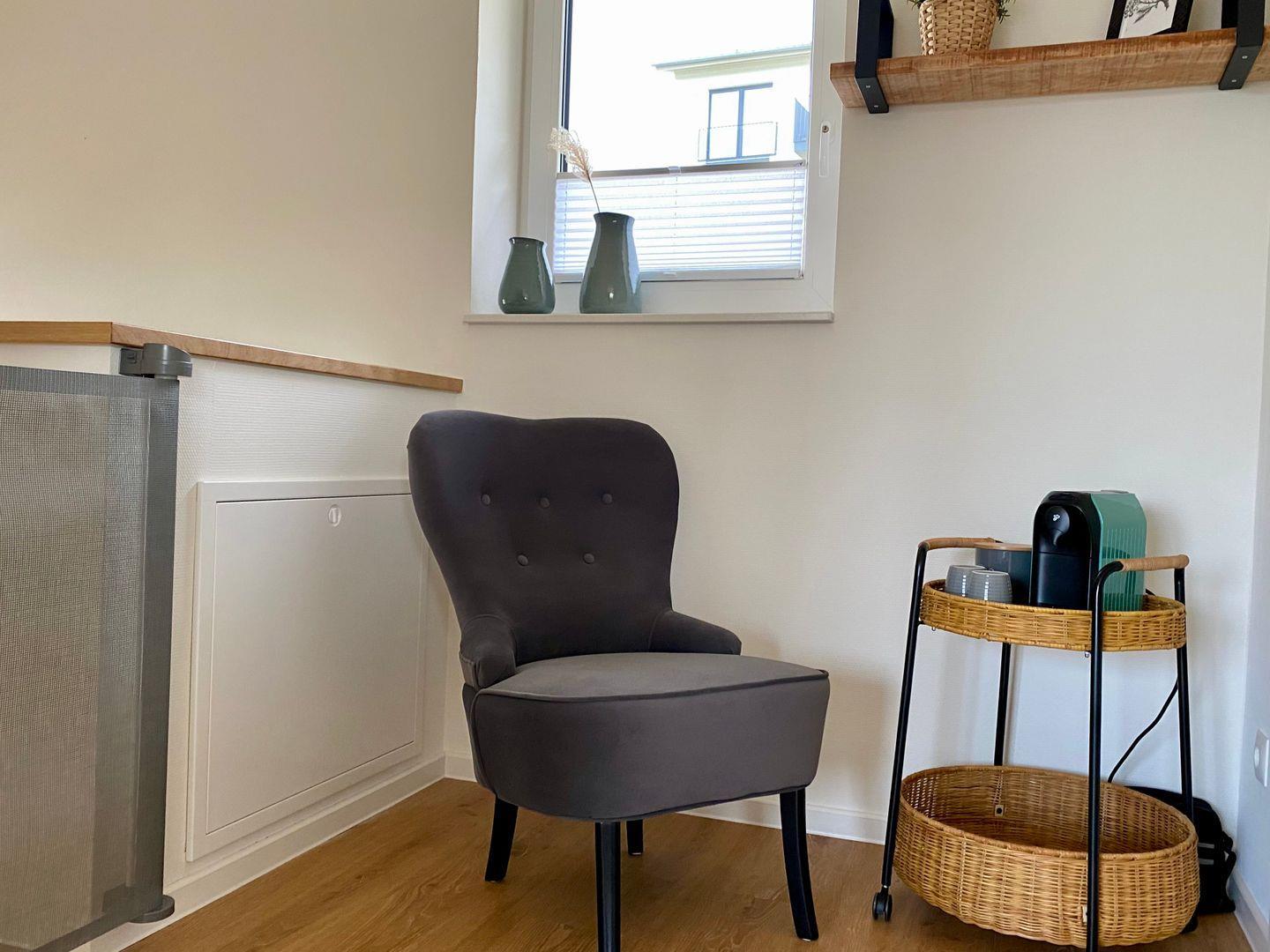 Zwei Schlafzimmer im Erdgeschoss mit hochwertigen Boxspringbetten (180 × 200?cm) und ein weiteres Schlafzimmer im Obergeschoss mit zwei Einzelbetten (je 90 × 200?cm) bieten Platz für bis zu sechs Gäste. Alle Schlafzimmer sind mit einem Smart TV und Magenta TV ausgestattet, lassen sich abdunkeln und verfügen über ausreichend Stauraum. Zusätzlich steht ein Kinderbett (ohne Bettzeug) bereit.
