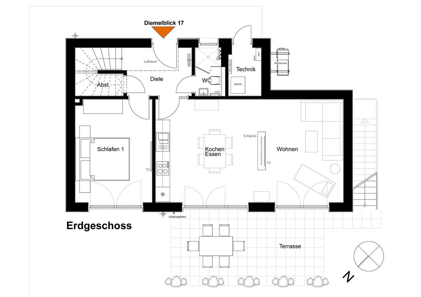 Im Obergeschoss erwartet dich ein großzügiges Wellnessbad mit Badewanne, ebenerdiger Dusche und privater Sauna – für deine Entspannung zu jeder Jahreszeit. Ein zweites Bad mit Dusche und WC im Erdgeschoss sorgt für zusätzlichen Komfort.