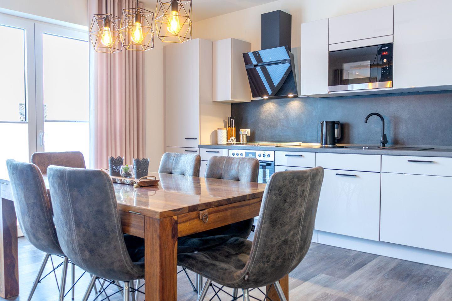 Im Wohnbereich im Erdgeschoss erwartet dich eine warme Atmosphäre mit Elektrokamin, großer Couch und offener Wohnküche. Moderne Geräte wie Spülmaschine, Backofen, Mikrowelle und Kaffeevollautomat lassen keine Wünsche offen. Vom Wohnraum aus geht es direkt auf die möblierte Terrasse mit Gasgrill – ideal für laue Abende am See.
