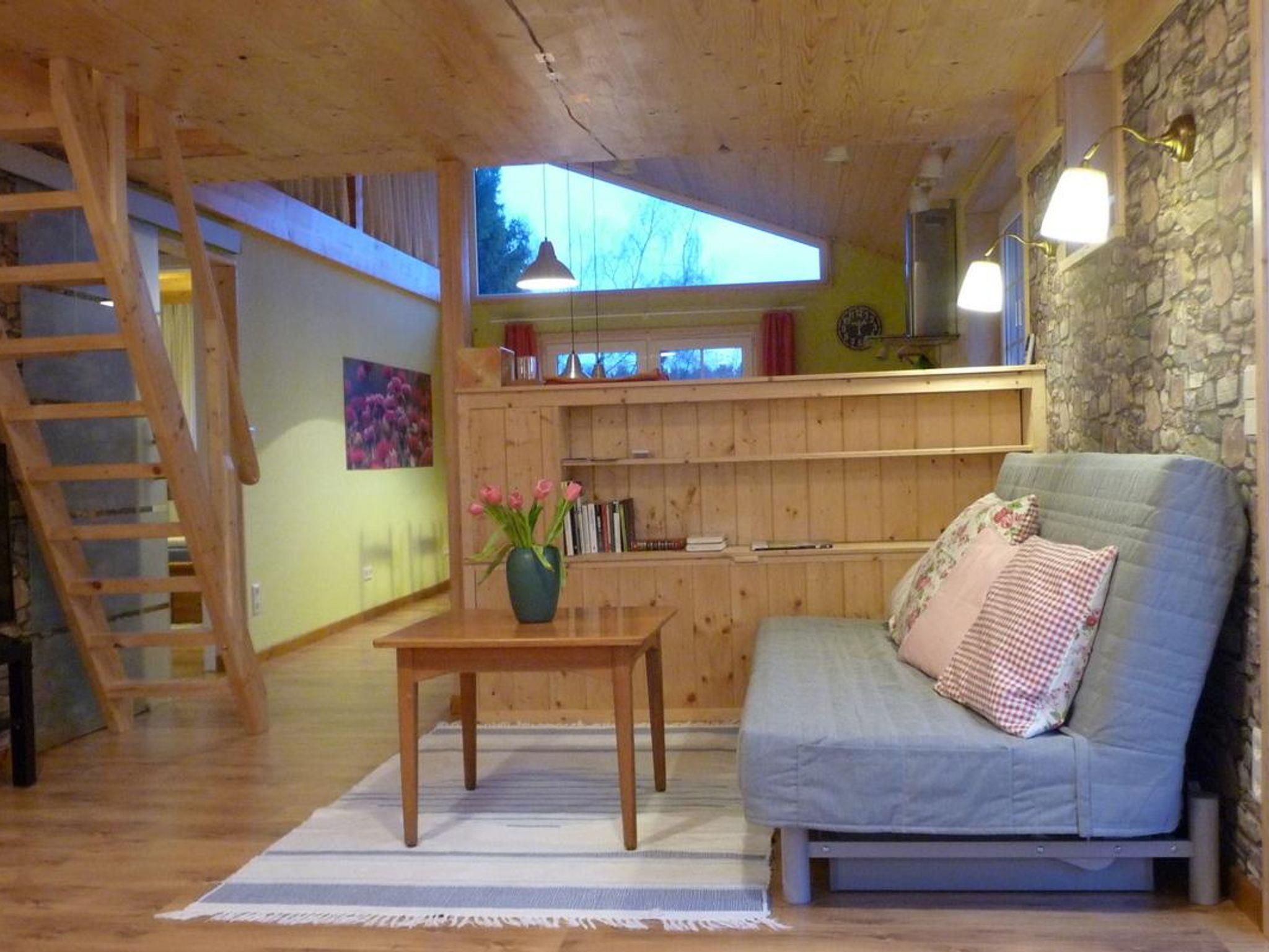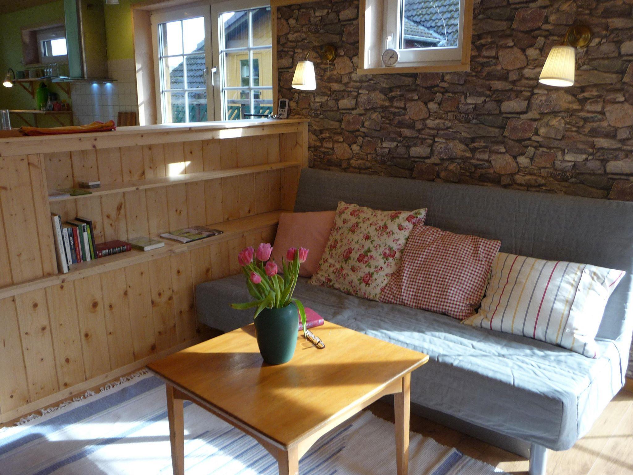 Das moderne, gemütliche Ferienhaus in Holzbauweise liegt im Herzen des Westerwaldes 2km vom Mittelzentrum Dierdorf entfernt und verkehrsgünstig zur 7 km entfernten Autobahn A3. Das 2017 fertiggestellte Ferienhaus auf 90 Quadratmetern thront, auf dicken Holzpfeilern gebaut, hoch über dem Garten. Mit viel Holz außen und innen strahlt das lichtdurchflutete Haus Wärme und Behaglichkeit aus. In der großzügigen und offenen Bauweise kann man sich mit bis zu acht Personen bequem aufhalten, aber dennoch bleiben Rückzugsmöglichkeiten hinter der Wohntheke, auf der Empore oder der Koje überm Wohnzimmer, die man über eine keine Holztreppe erreicht. Das separarte Schlafzimmer bietet ohnehin Entspannungsmöglichkeiten, da es zur Gartenseite und völlig ruhig gelegen ist. In der Wohnküche ist viel Platz zum Kochen. Der große Esstisch lässt sich auf drei Meter Länge ausziehen. Der neun Quadratmeter große Balkon ist nach Süden ausgerichtet und bietet durch die Holzverkleidung der Brüstung entsprechenden Sichtschutz. Dennoch schaut man auf das Grün des Gartens. Im Winter wärmt die Sonne das Haus über die lange Südseite mit den großen Fenstern. Im heißen Sommer spenden die umstehenden Bäume den nötigen Schatten. Kurzum: Im Sommer sind die Räume kühl und durchlüftet, im Winter behaglich warm. Wir betreiben eine kleine Imkerei und Süßmosterei, wovon zwei Bienenstöcke im Garten stehen zur Bestäubung unserer Obstbäume. Den Honig und den Apfelsaft von westerwälder Streuobstwiesen können Sie bei uns immer frisch erwerben.