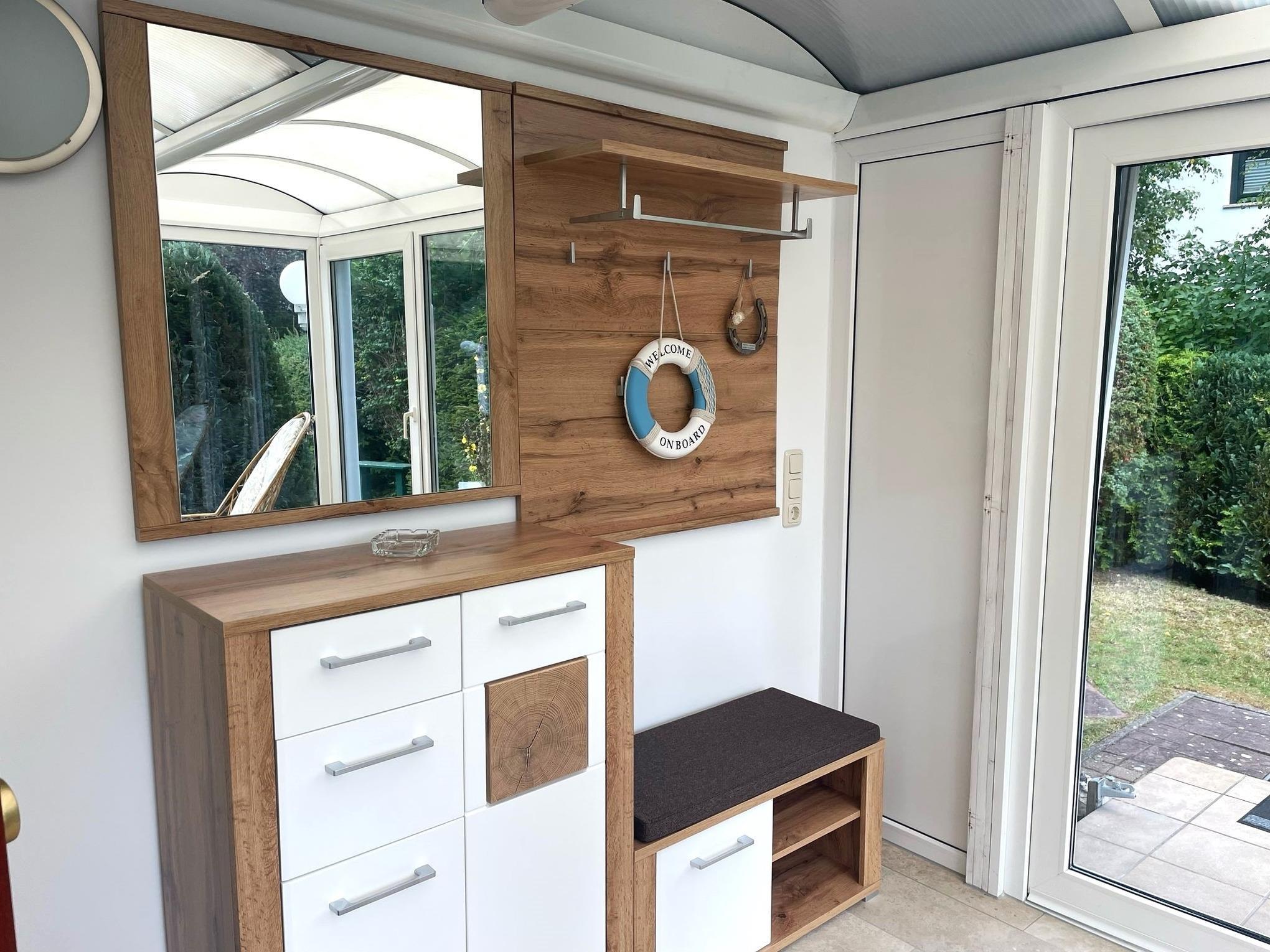 Die offene Küche, eine gemütliche Essecke und der Wintergarten mit Sitzgelegenheiten für bis zu acht Personen machen das Erdgeschoss zum zentralen Treffpunkt für Familie und Freunde. Besonders praktisch: Der gesamte untere Bereich ist barrierefrei und somit auch für Gäste mit eingeschränkter Mobilität bestens geeignet.