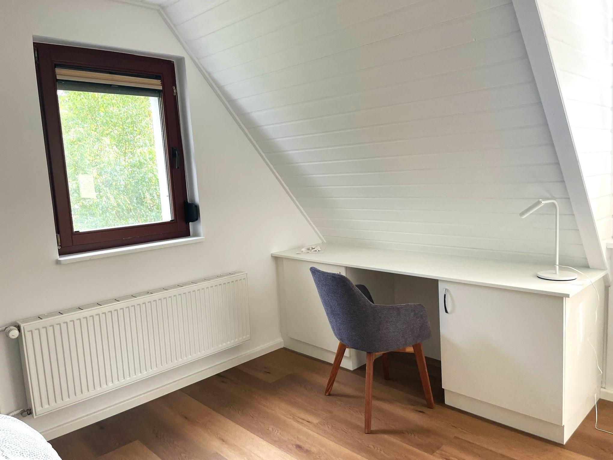 Das Hauptschlafzimmer überzeugt zusätzlich mit einem stilvollen Arbeitsplatz – perfekt für alle, die auch im Urlaub flexibel bleiben.