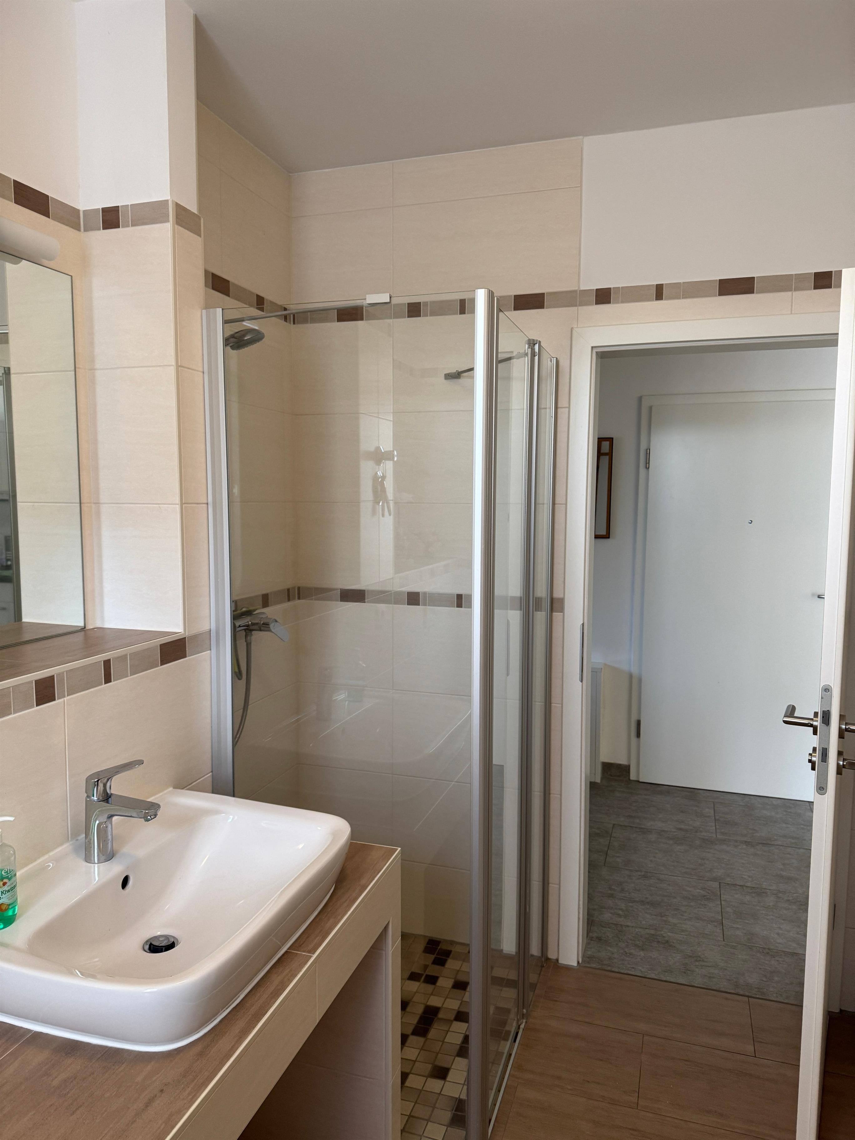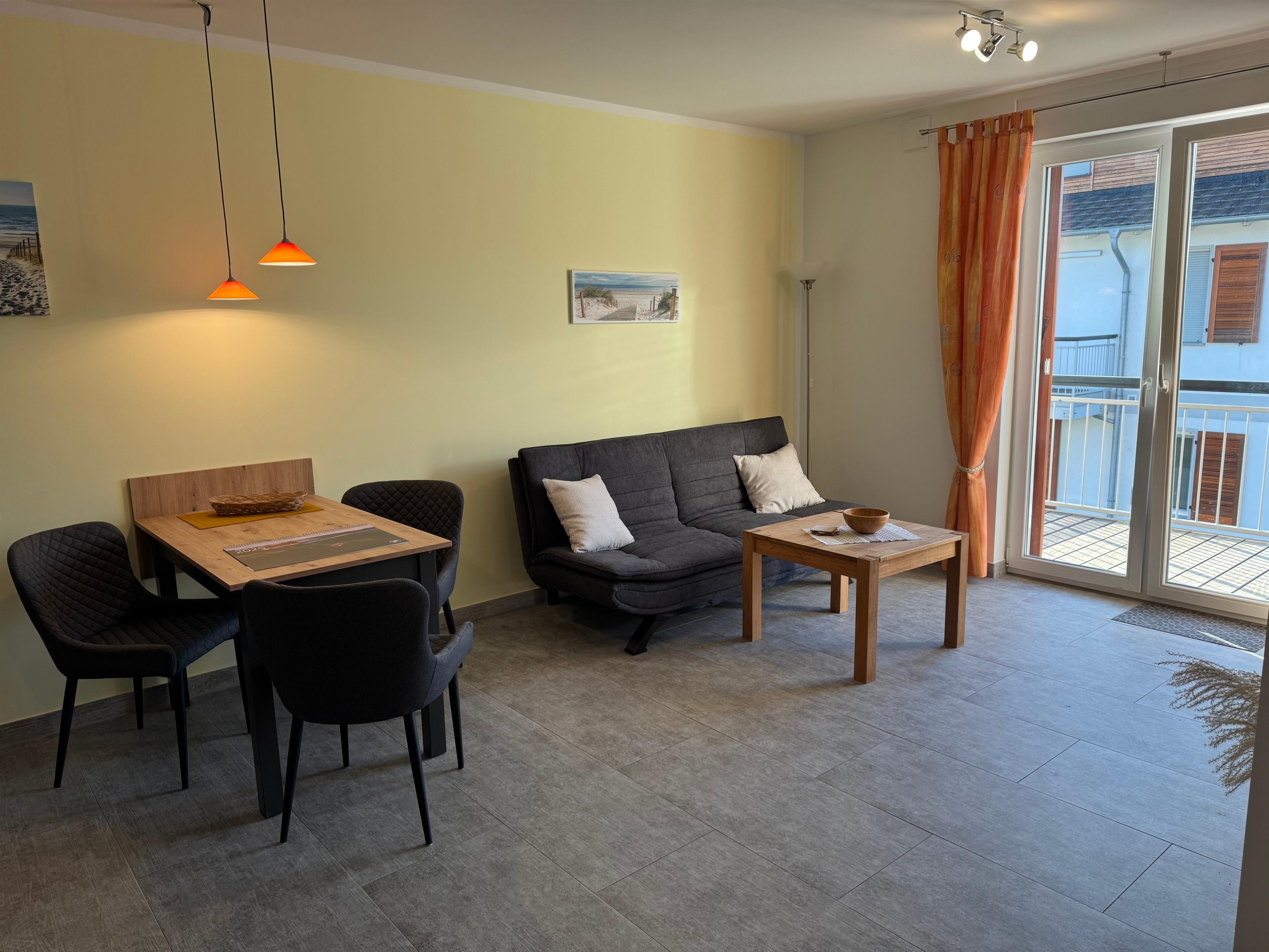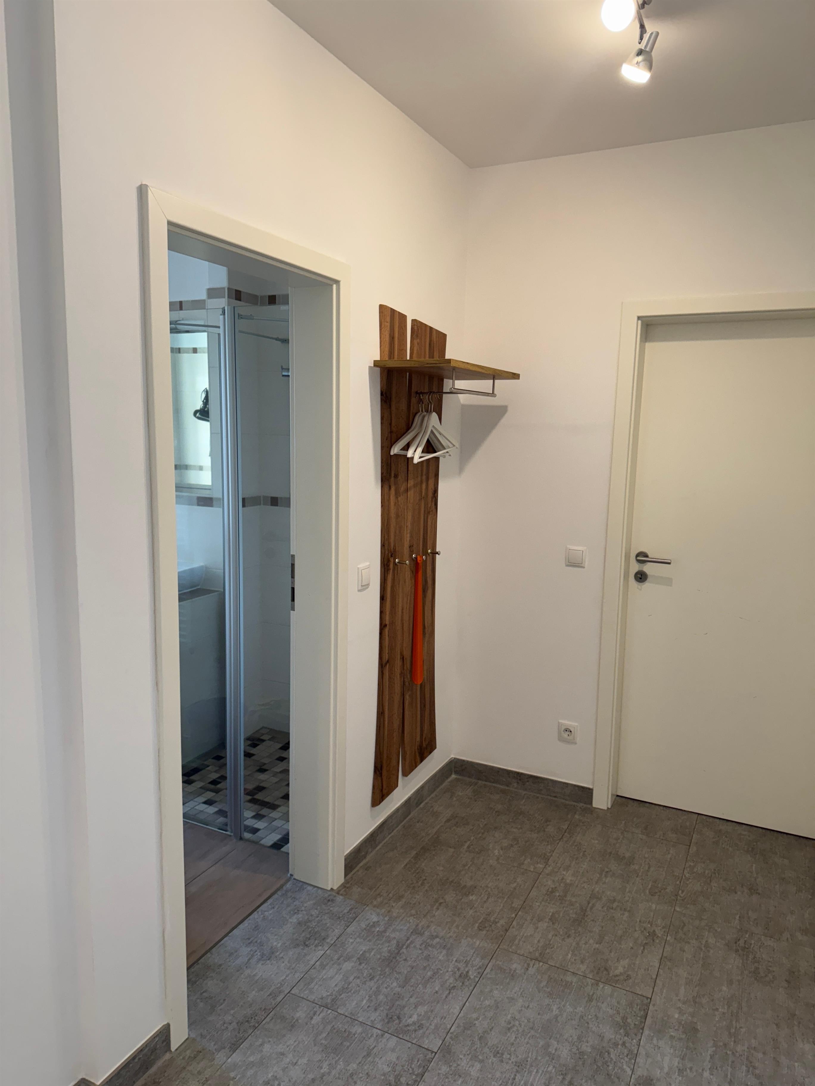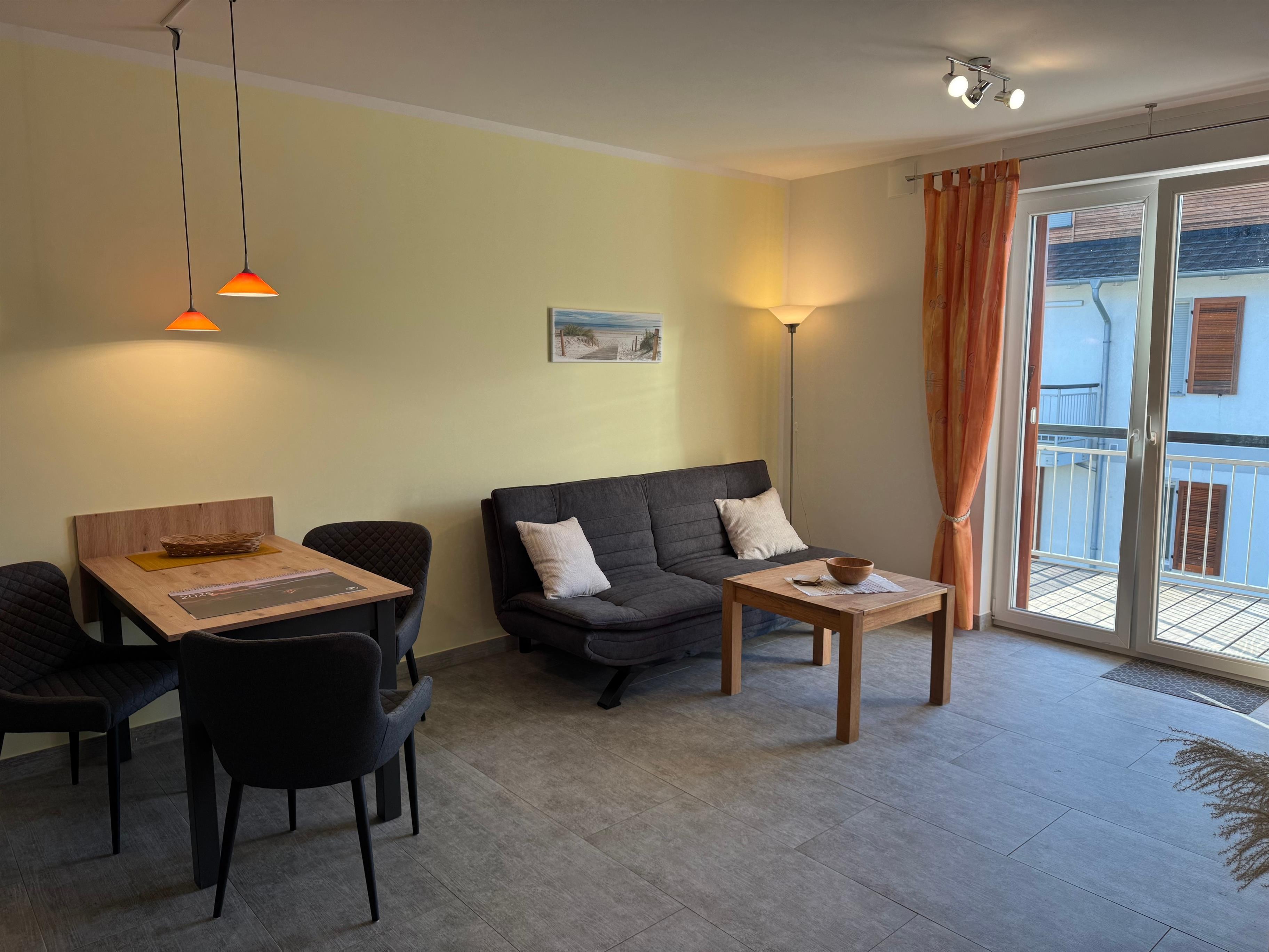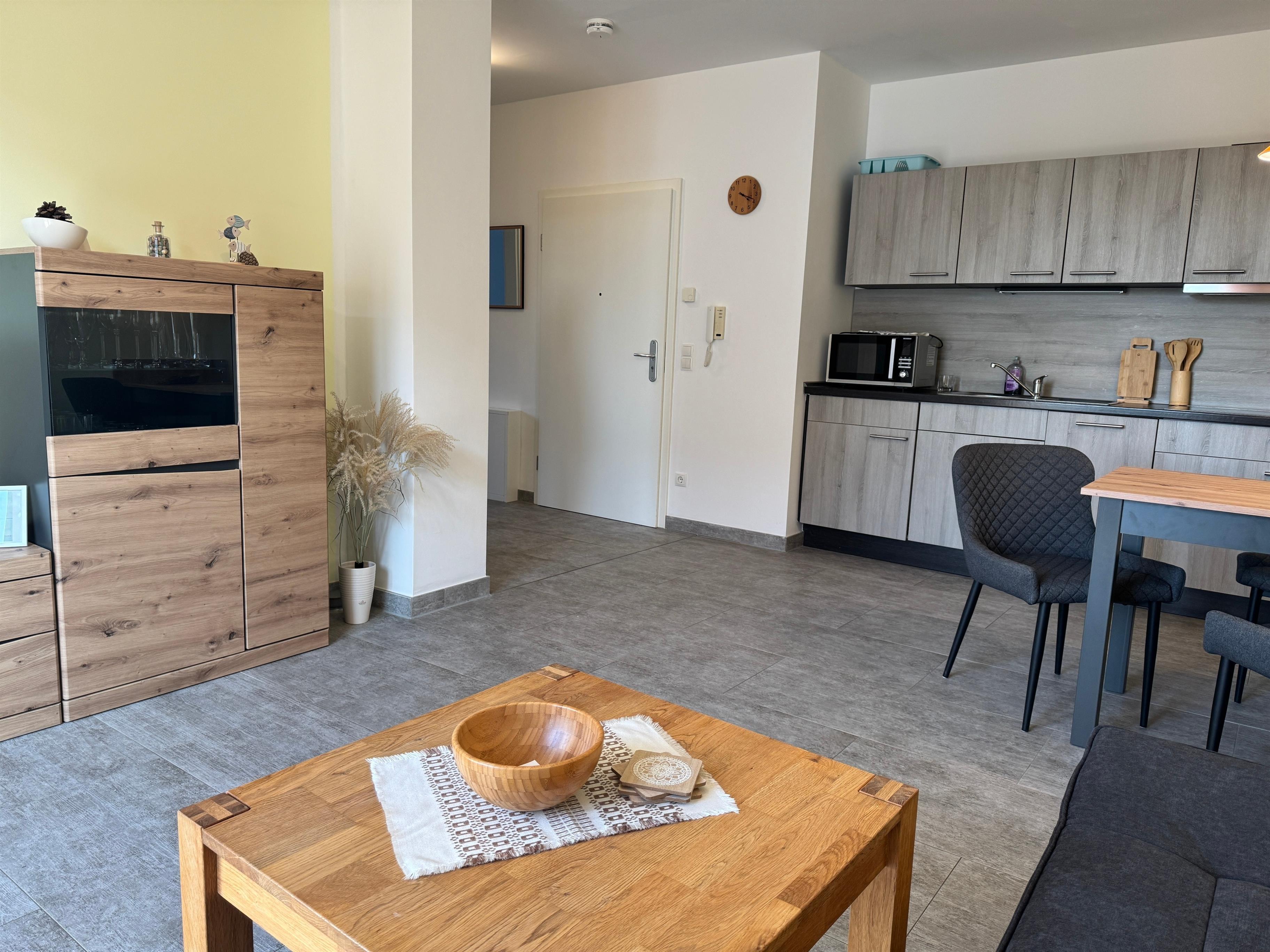 Das Appartement ist durchgängig gefliest mit Fußbodenheizung, einem großen Wohnraum, Schlafzimmer und einem modernen Bad.