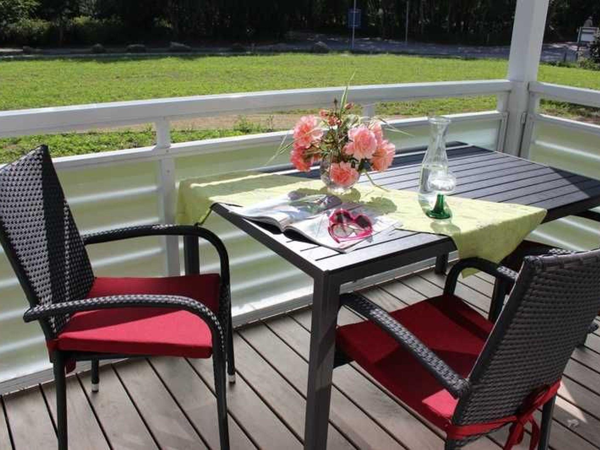 Die Wohnung befindet sich auf der Südseite im Erdgeschoss und ist ebenerdig begehbar. Die Einrichtung in hellen Farben ist freundlich und modern. Die großzügig überdachte Terrasse erstreckt sich über 2 Räume. Sie ist sowohl vom Schlafzimmer als auch vom Wohnzimmer aus zu erreichen. Die bodenhohen Fenster sorgen für lichtdurchflutete Räume. Wenn Ihnen die Sonne doch einmal zu viel wird, können die vorhandenen Außenjalousien die Räume verdunkeln.