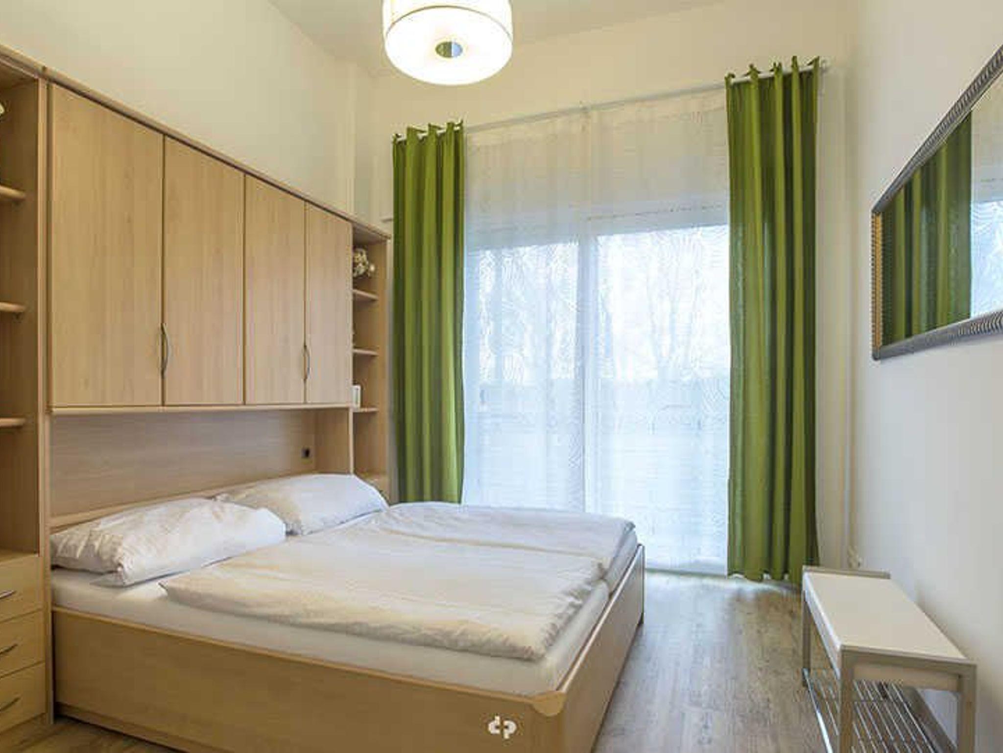 Das helle und freundliche Schlafzimmer ist mit einem Doppelbett und 2 hochwertigen, separaten Matratzen eingerichtet.