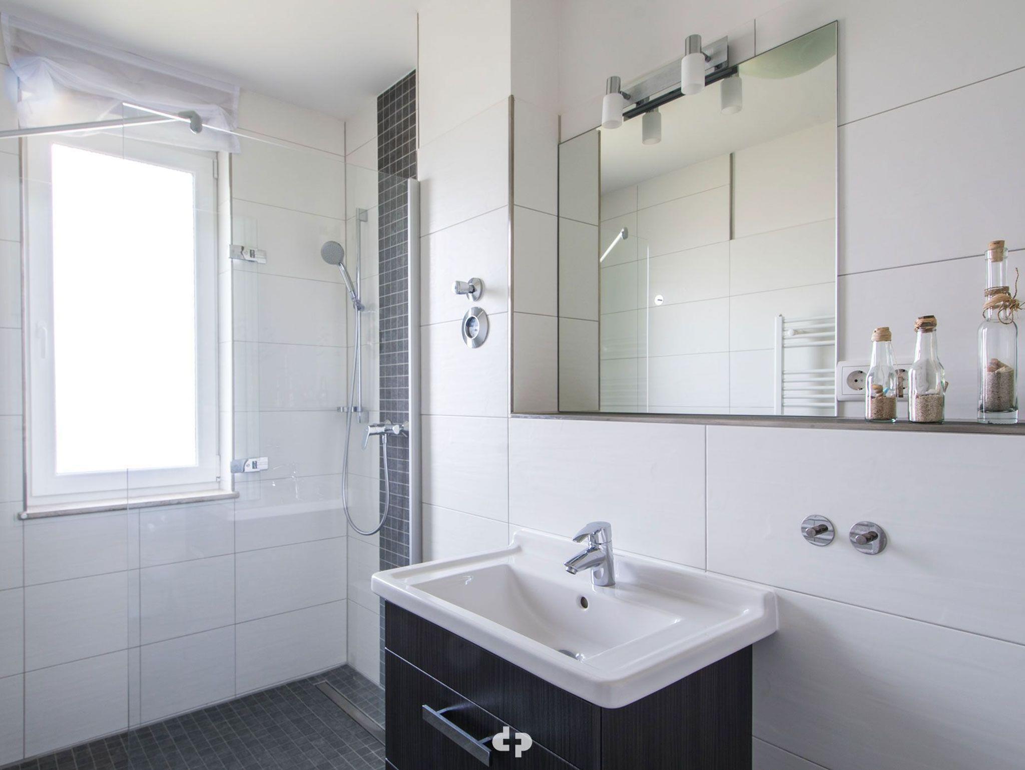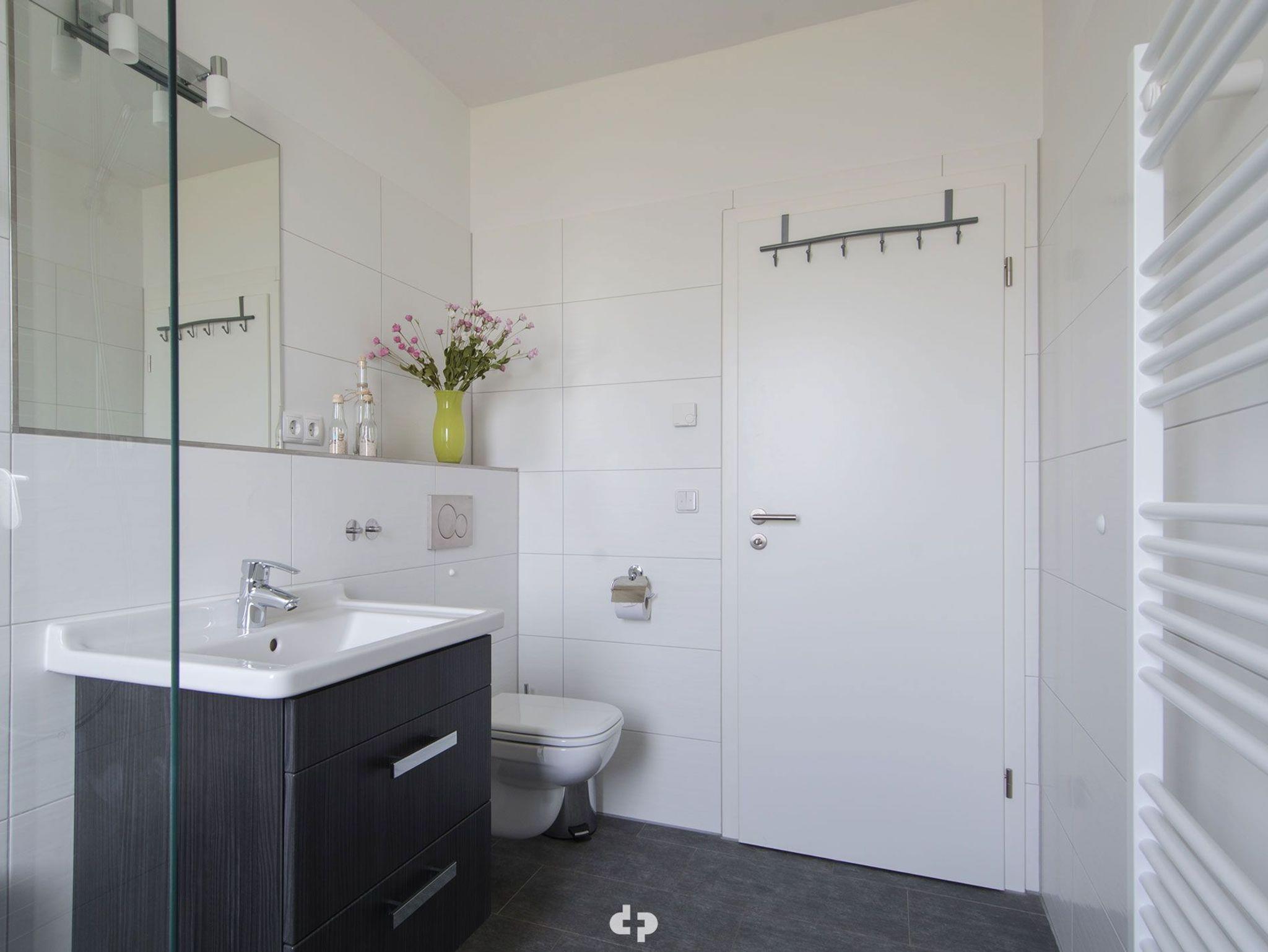 • Das Bad ist mit WC, Waschtisch und Dusche ausgestattet.