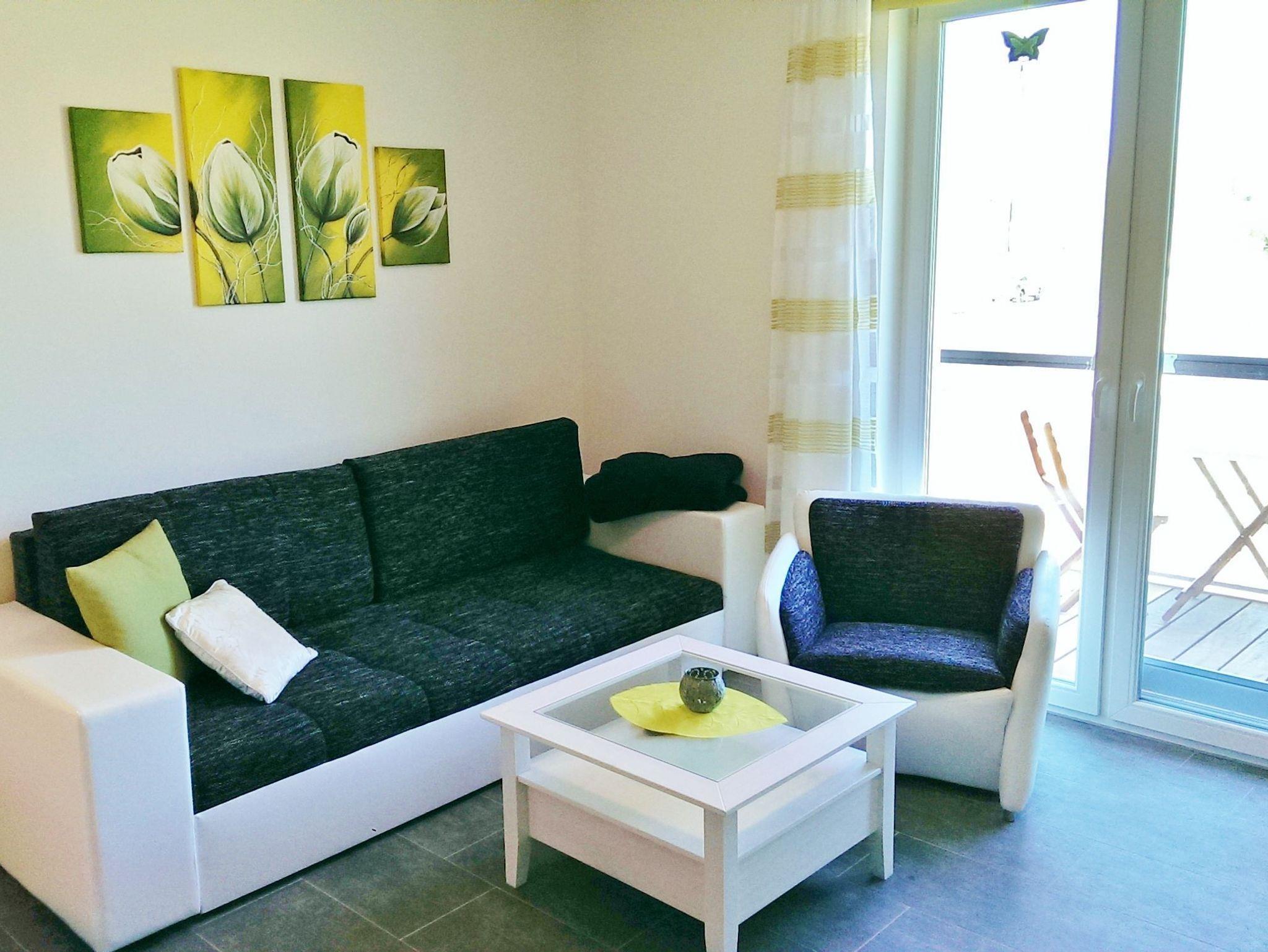 Das im Jahr 2014 fertiggestellte luxuriöse 2-Raum-Appartement Dünenblick im 1.OG mit Balkon in N/W Ausrichtung liegt direkt hinter den Dünen des schönsten Strandes der Ostsee und bietet auf einer Wohnfläche von ca. 50 m² ausreichend Platz für 4 Personen. Von der Wohnung zum feinsandigen Strand sind es 200 m Fußweg.
