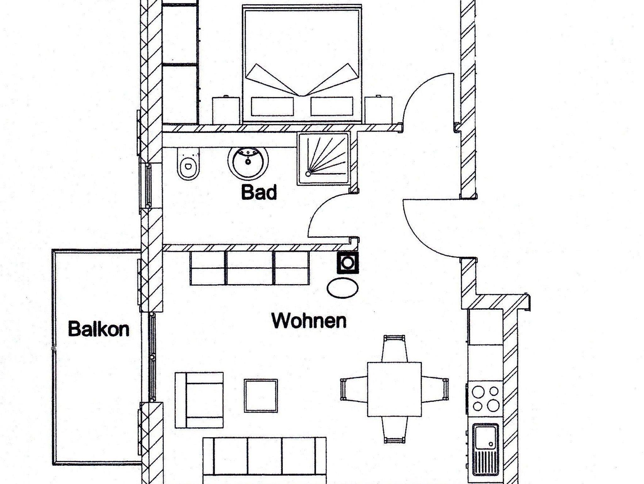 • Das Appartement ist durchgängig gefliest mit Fußbodenheizung, einem großen Wohnraum, Schlafzimmer und einem modernen Bad.