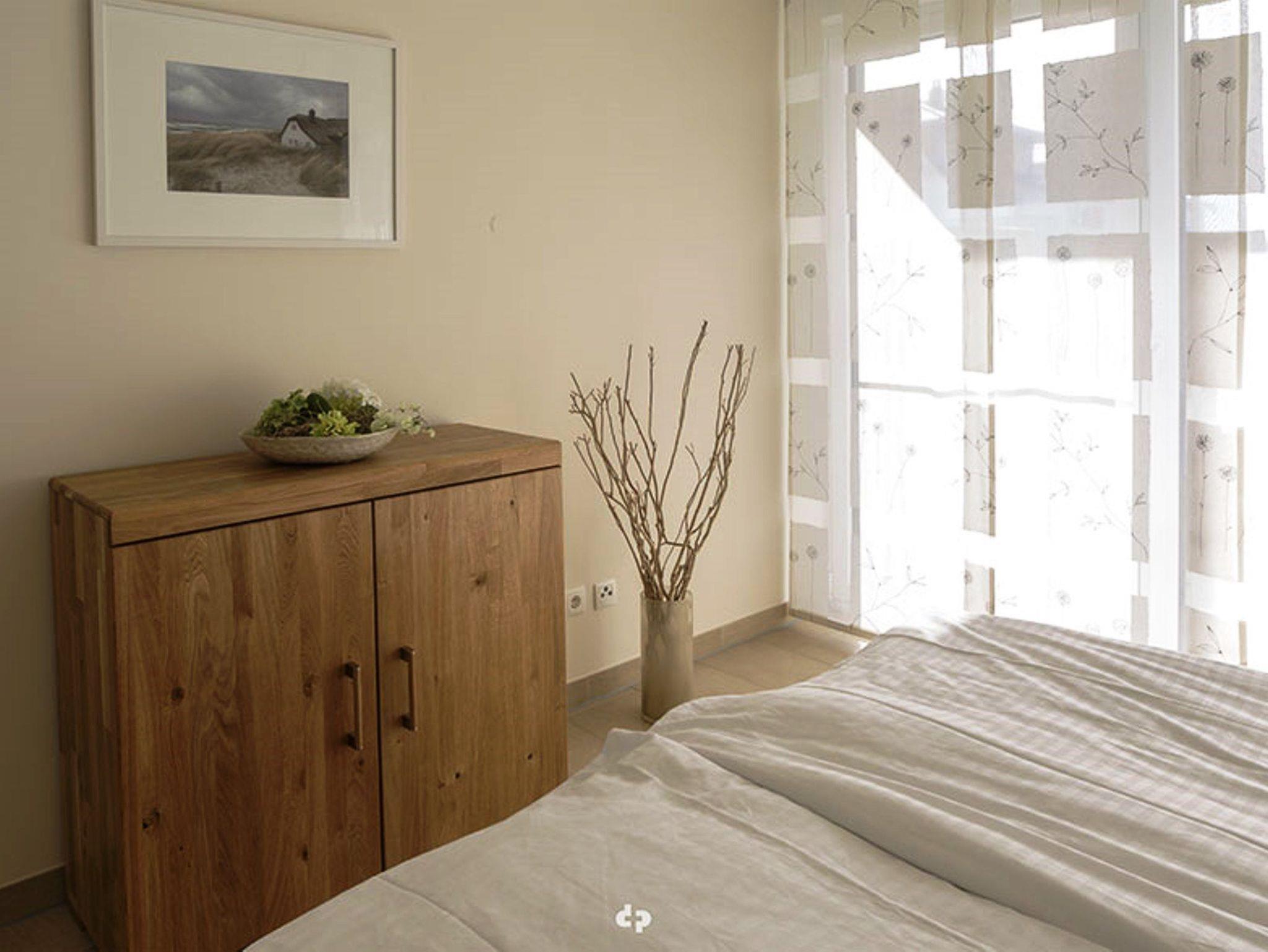 • Das Schlafzimmer ist ausgestattet mit einem Doppelbett nebst hochwertigen Lattenrosten und 2 Matratzen, sowie ausreichend Stauraum.