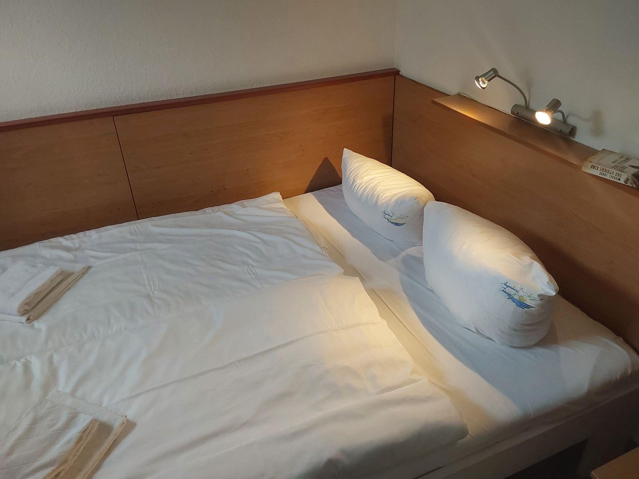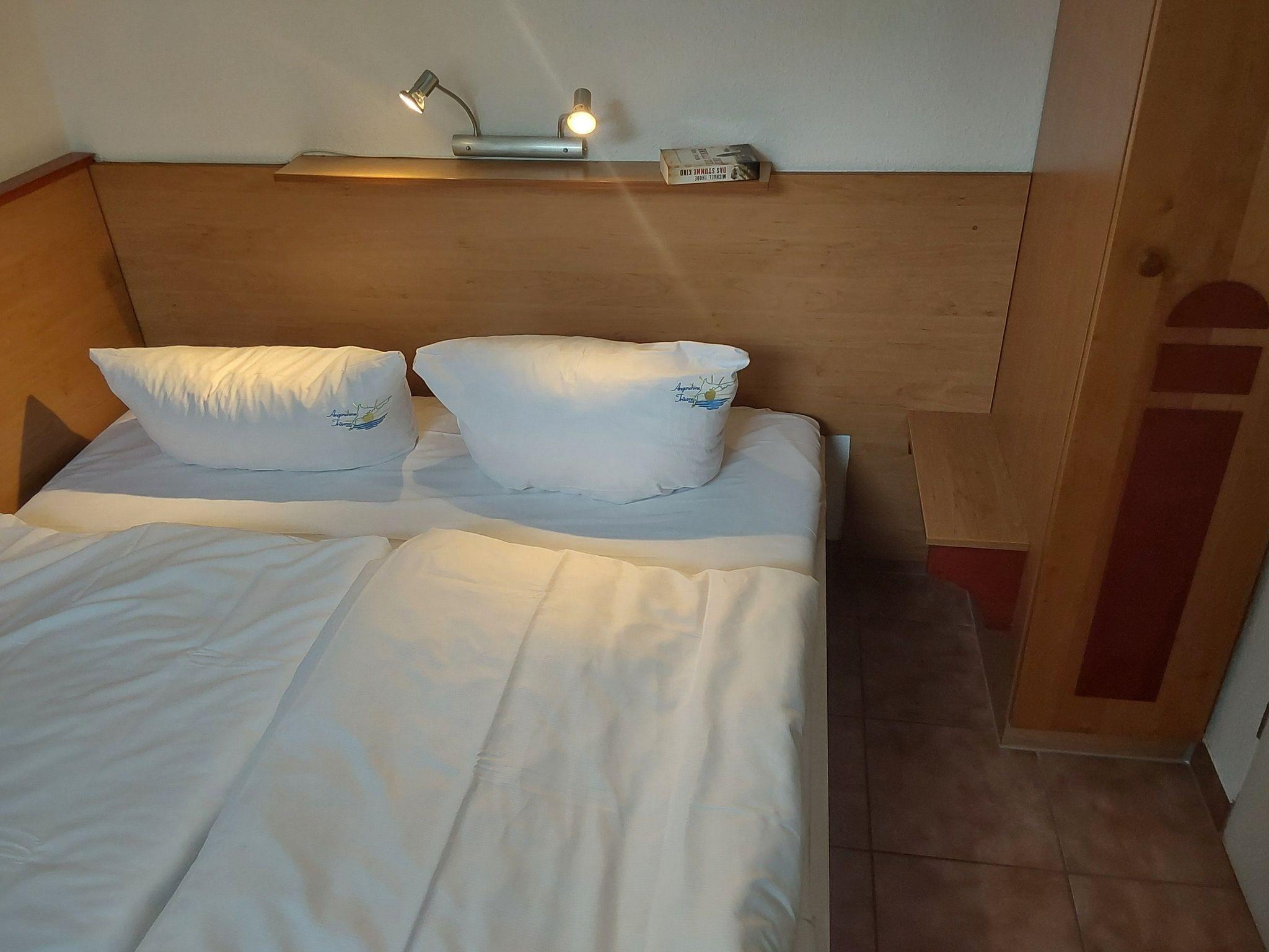 Die Matratze war unbequem, zu hart und ich rutschte immer in eine Richtung. Die Kopfkissen gaben zu stark nach, so dass ich mir nach einer schwierigen Nacht die 2. Bettdecke als Kissen zusammenrollte. Damit klappte es dann.