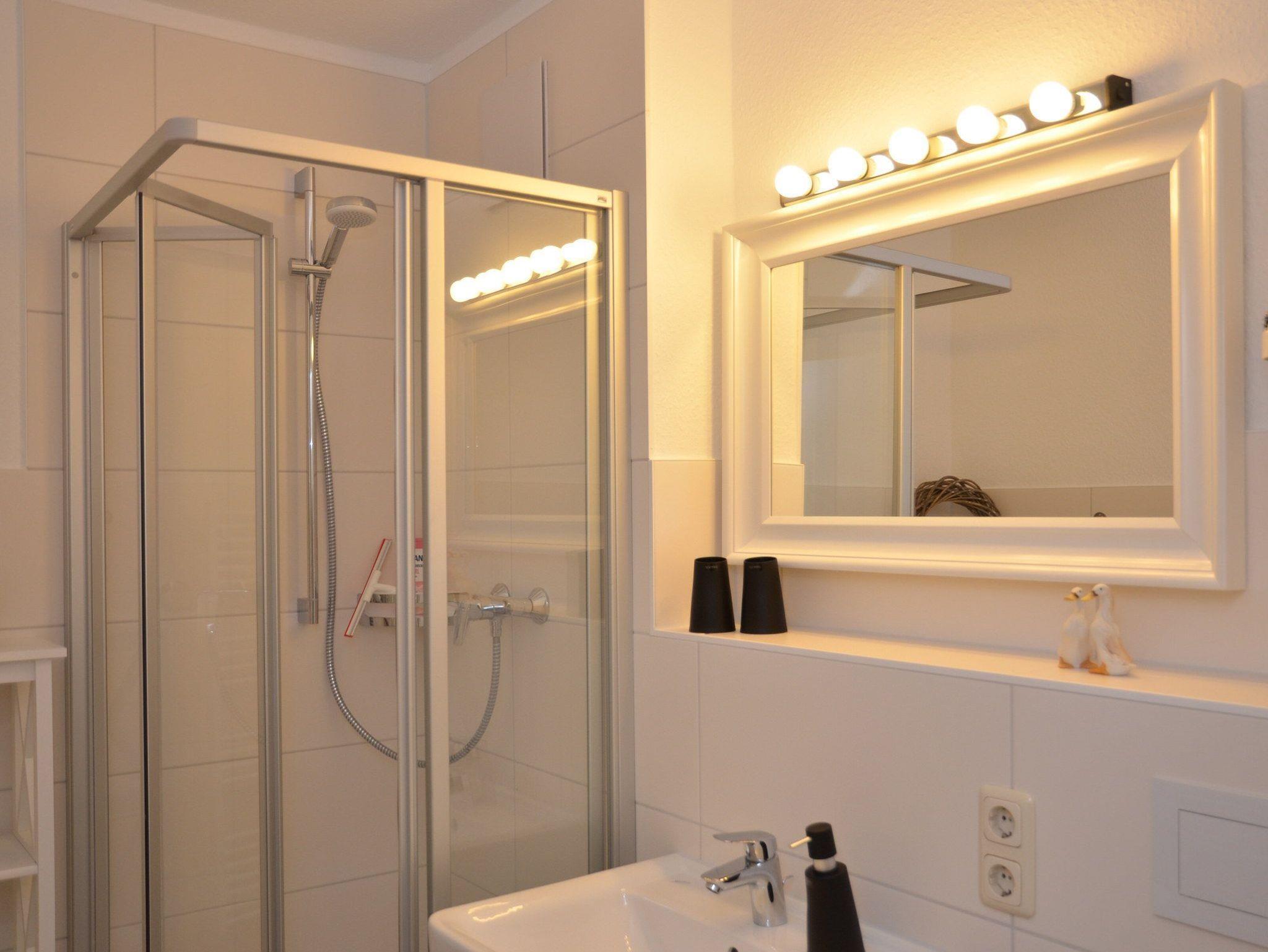 Die FEWO ist für zwei Personen üppig groß und insgesamt gut ausgestattet. Die fehlende Spülmaschine fällt bei zwei Personen kaum ins Gewicht, das fehlende W-Lan ist nicht mehr zeitgemäß. Auch die weißen Plastikstühle auf den Balkonen sollten einmal erneuert werden.