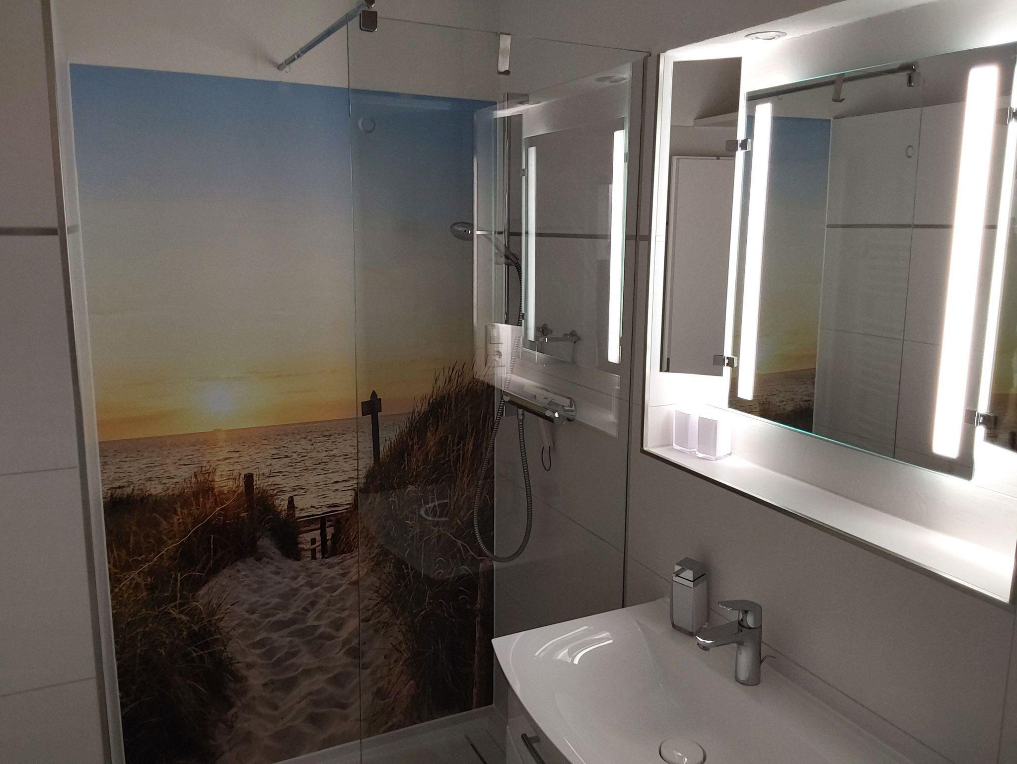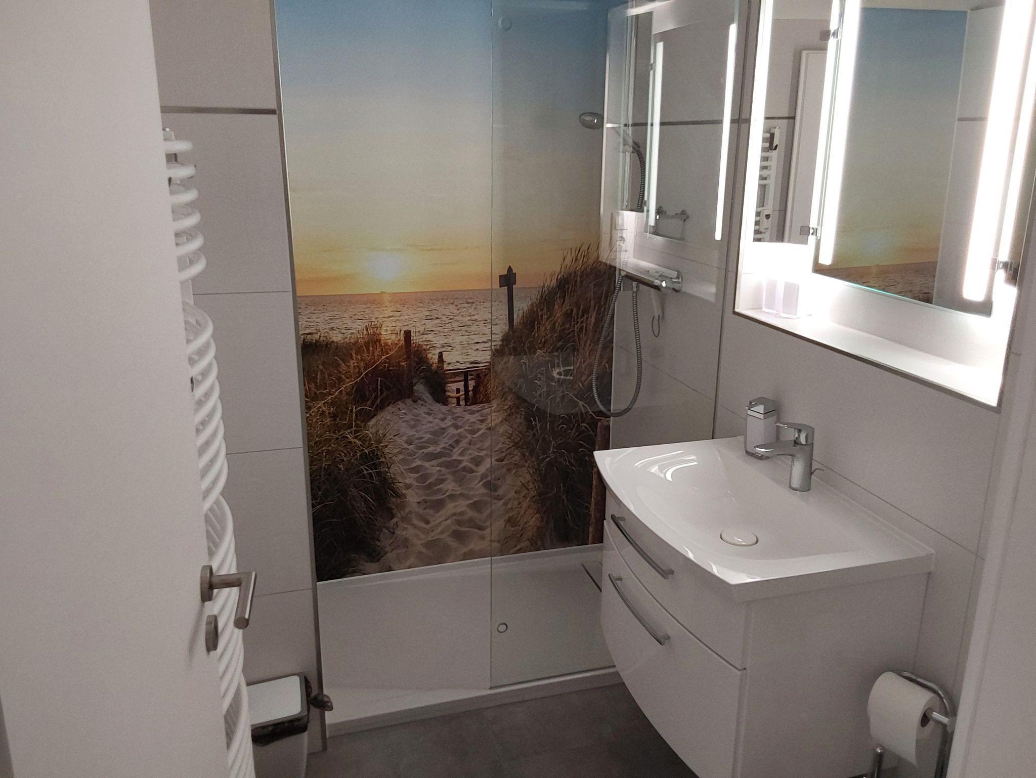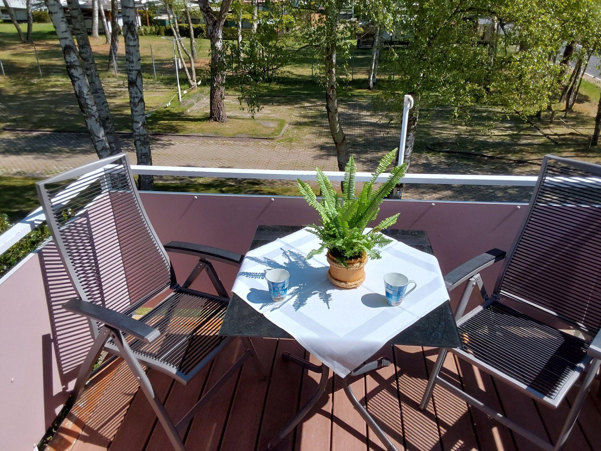 Die FEWO ist für zwei Personen üppig groß und insgesamt gut ausgestattet. Die fehlende Spülmaschine fällt bei zwei Personen kaum ins Gewicht, das fehlende W-Lan ist nicht mehr zeitgemäß. Auch die weißen Plastikstühle auf den Balkonen sollten einmal erneuert werden.