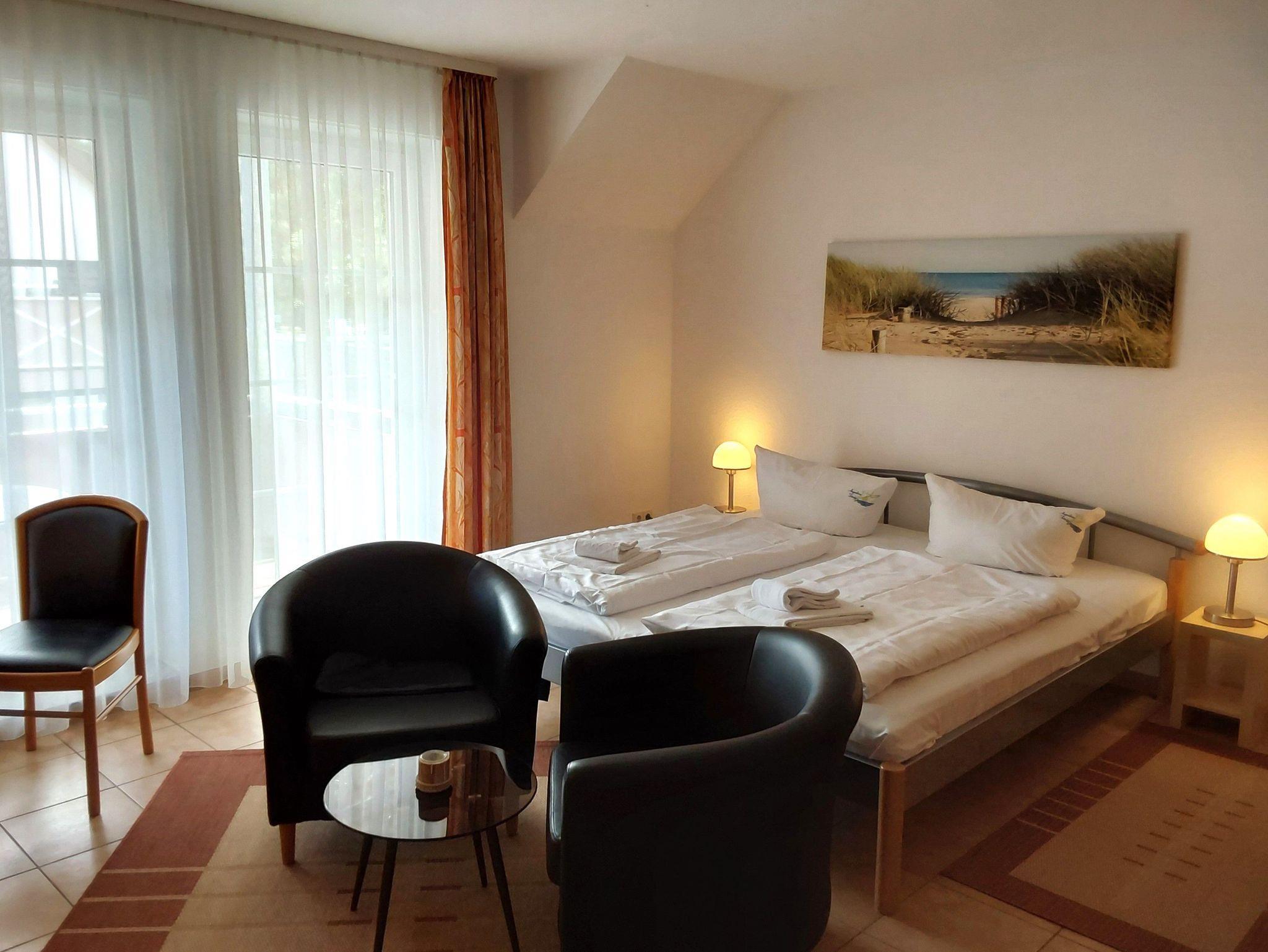 Die modern eingerichteten 1-Raum-Appartements dieser Kategorie sind für 2 Personen geeignet und ca. 30 qm groß. Sie verfügen über einen Wohn-/Schlafraum mit Doppelbett für 2 Personen. Alle unsere Wohnungen sind Nichtraucher-Wohnungen. Bei einigen Appartements können Sie Ihr Haustier mitbringen (s. Zimmerdaten). Ausstattung: Sat-TV, Radio, Küchenzeile, Dusche/WC, möblierte Terrasse oder Balkon. Bettwäsche und Handtücher als Erstausstattung.