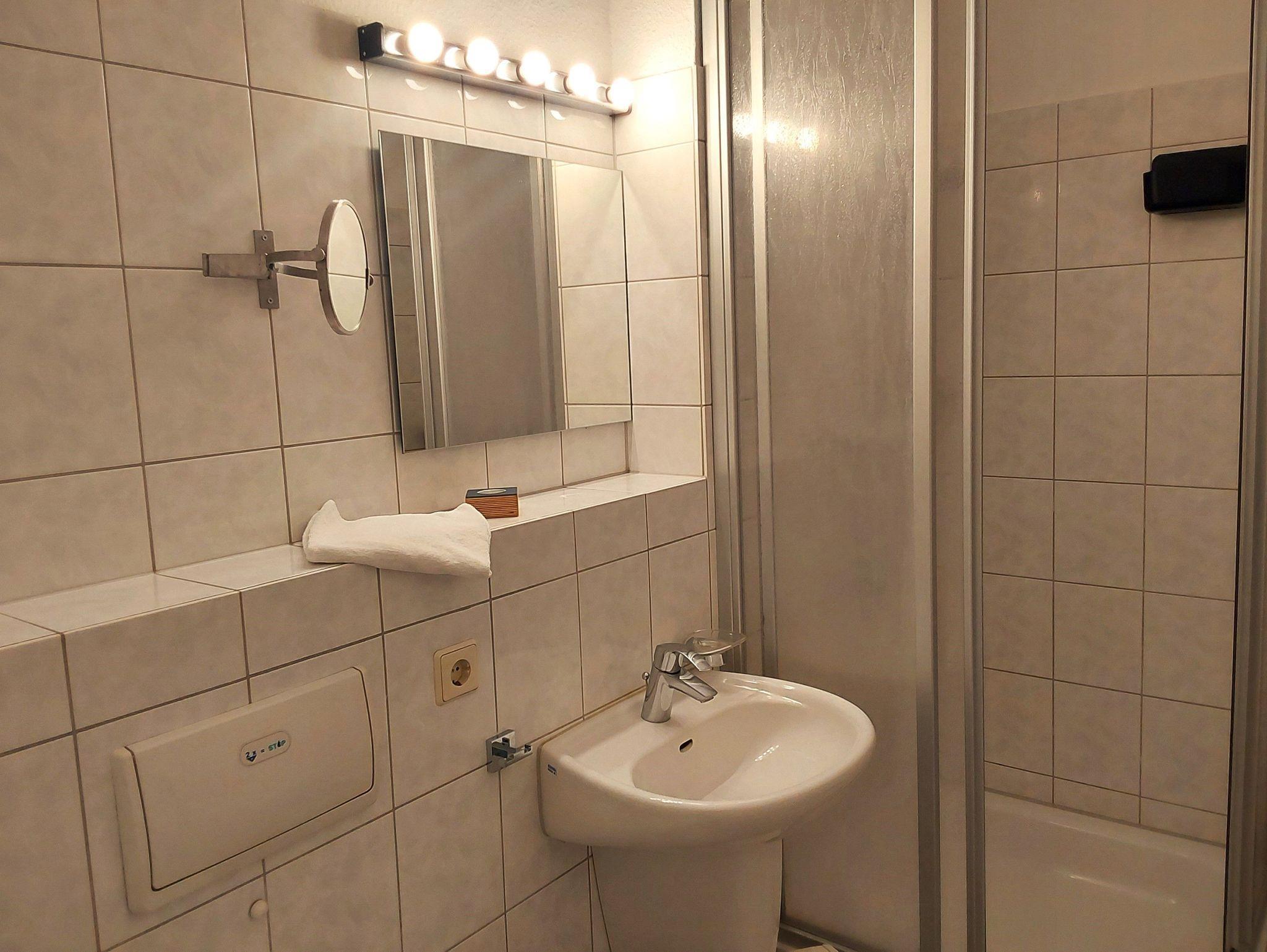 Die FEWO ist für zwei Personen üppig groß und insgesamt gut ausgestattet. Die fehlende Spülmaschine fällt bei zwei Personen kaum ins Gewicht, das fehlende W-Lan ist nicht mehr zeitgemäß. Auch die weißen Plastikstühle auf den Balkonen sollten einmal erneuert werden.