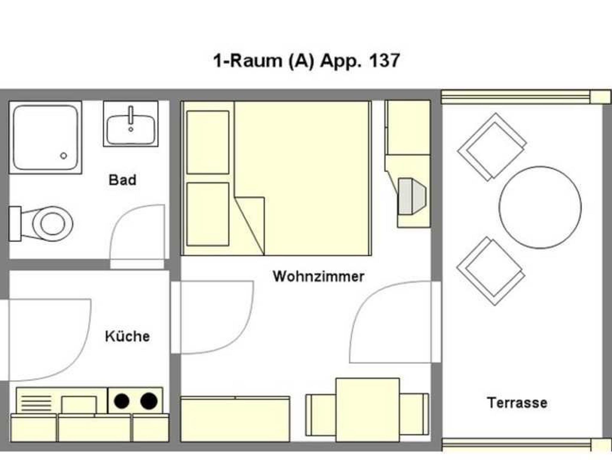 Die modern eingerichteten 1-Raum-Appartements dieser Kategorie sind für maximal 2 Personen geeignet und ca. 21 qm groß. Sie verfügen über einen Wohn-/Schlafraum für 2 Personen. Alle unsere Wohnungen sind Nichtraucher-Wohnungen. Bei einigen Appartements können Sie Ihr Haustier mitbringen (s. Zimmerdaten). Ausstattung: Sat-TV, Radio, Küchenzeile, Dusche/WC, möblierte Terrasse oder Balkon. Bettwäsche und Handtücher als Erstausstattung.