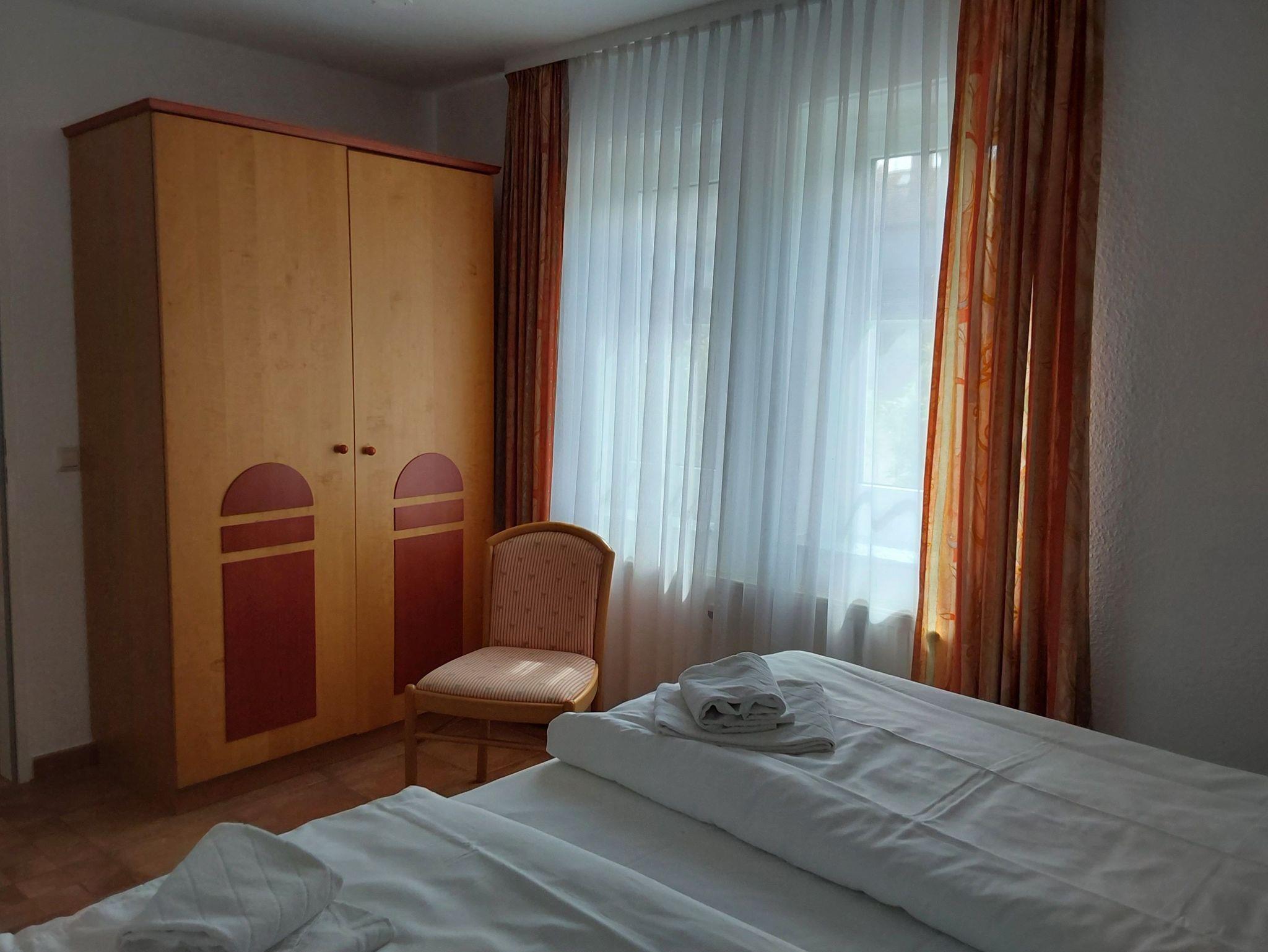 Die modern eingerichteten 2-Raum-Appartements dieser Kategorie sind für 4 Personen geeignet und ca. 46 qm groß. Sie verfügen über einen Wohn-/Schlafraum mit Schlafcouch für 2 Personen und ein separates Schlafzimmer (Doppelbett oder 2 Einzelbetten). Alle unsere Wohnungen sind Nichtraucher-Wohnungen. Bei einigen können Sie Ihr Haustier mitbringen (s. Zimmerdaten). Ausstattung: Sat-TV, Radio und teilweise Telefon, Küchenzeile, Dusche/WC, möblierte Terrasse oder Balkon. Bettwäsche und Handtücher als Erstausstattung.