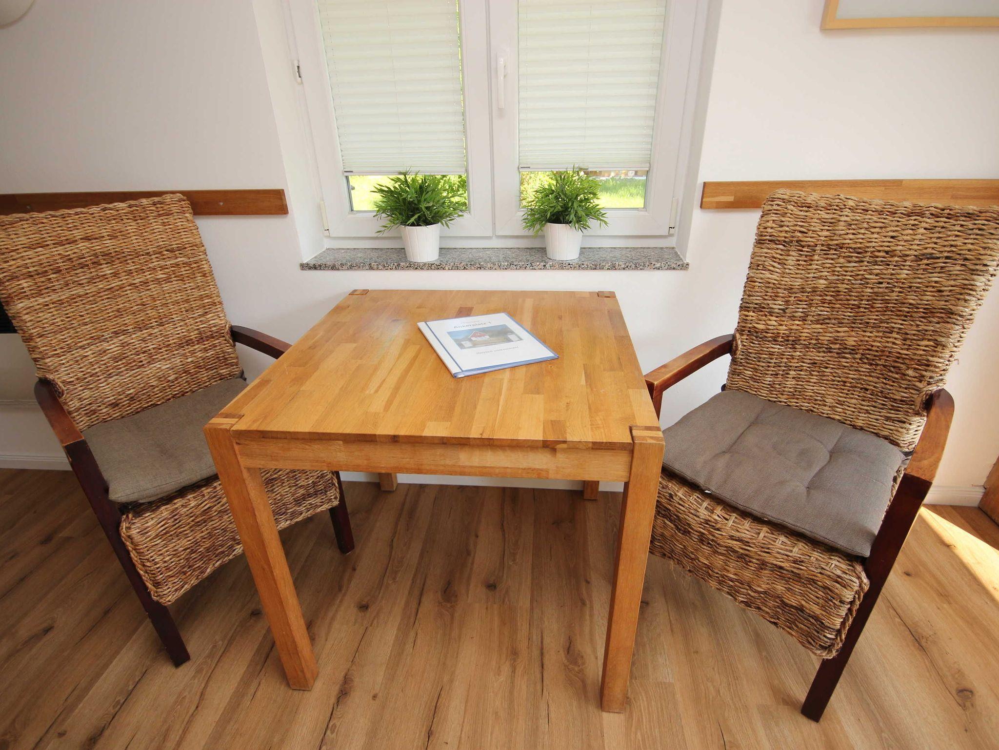 das rügen-typische mit Reet gedeckte kleine Ferienhaus in Dierhagen verfügt über eine gemütliche und romantische Einrichtung und bietet genügend Platz für zwei Personen. Im Wohnbereich des Ferienhauses finden Sie einen TV mit SAT- Anlage sowie einen Esstisch, der Platz für bis zu 2 Personen bietet. Der offene Küchenbereich bietet mit einem E- Herd (zwei Kochplatten und Backofen) und einem Kühlschrank mit Gefrierkombination verschiedene Möglichkeiten, regionale Gerichte auszuprobieren. Das helle und modern designte Badezimmer ist mit einem WC und einer ebenerdigen Dusche ausgestattet. Deckenhöhe im Schlafzimmer ca. 1,80 m und einem Doppelbett 1,80 x 2,00 m (getrennte Matratzen). Unser Haus ist ein Nichtraucherhaus und ist mit WLAN ausgestattet. Die Bettwäsche ist inklusive, Handtücher können in der Zimmervermittlung für 7,00 € pro Person (1 Badetuch, 1 Handtuch) hinzugebucht werden.